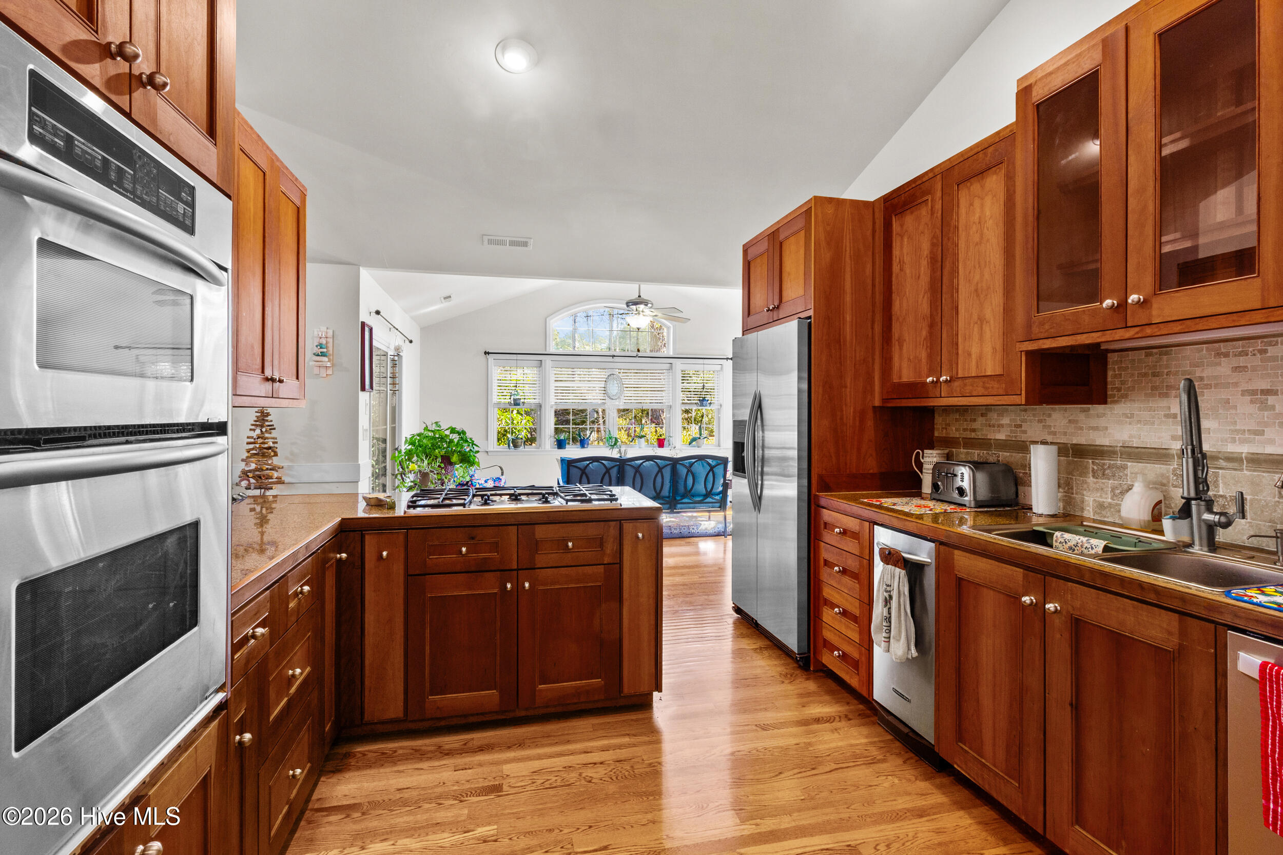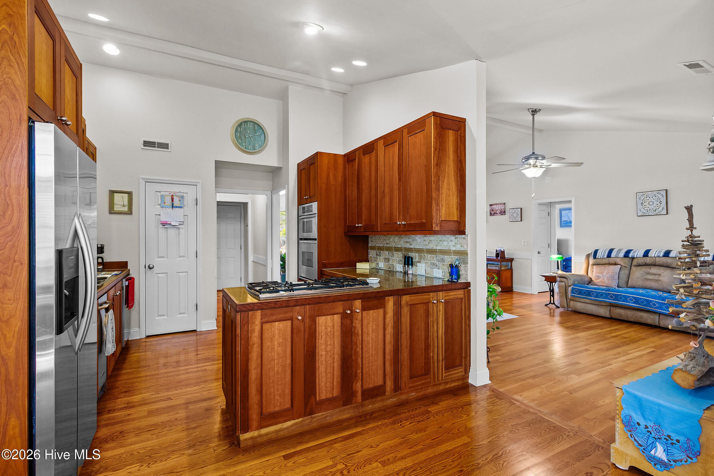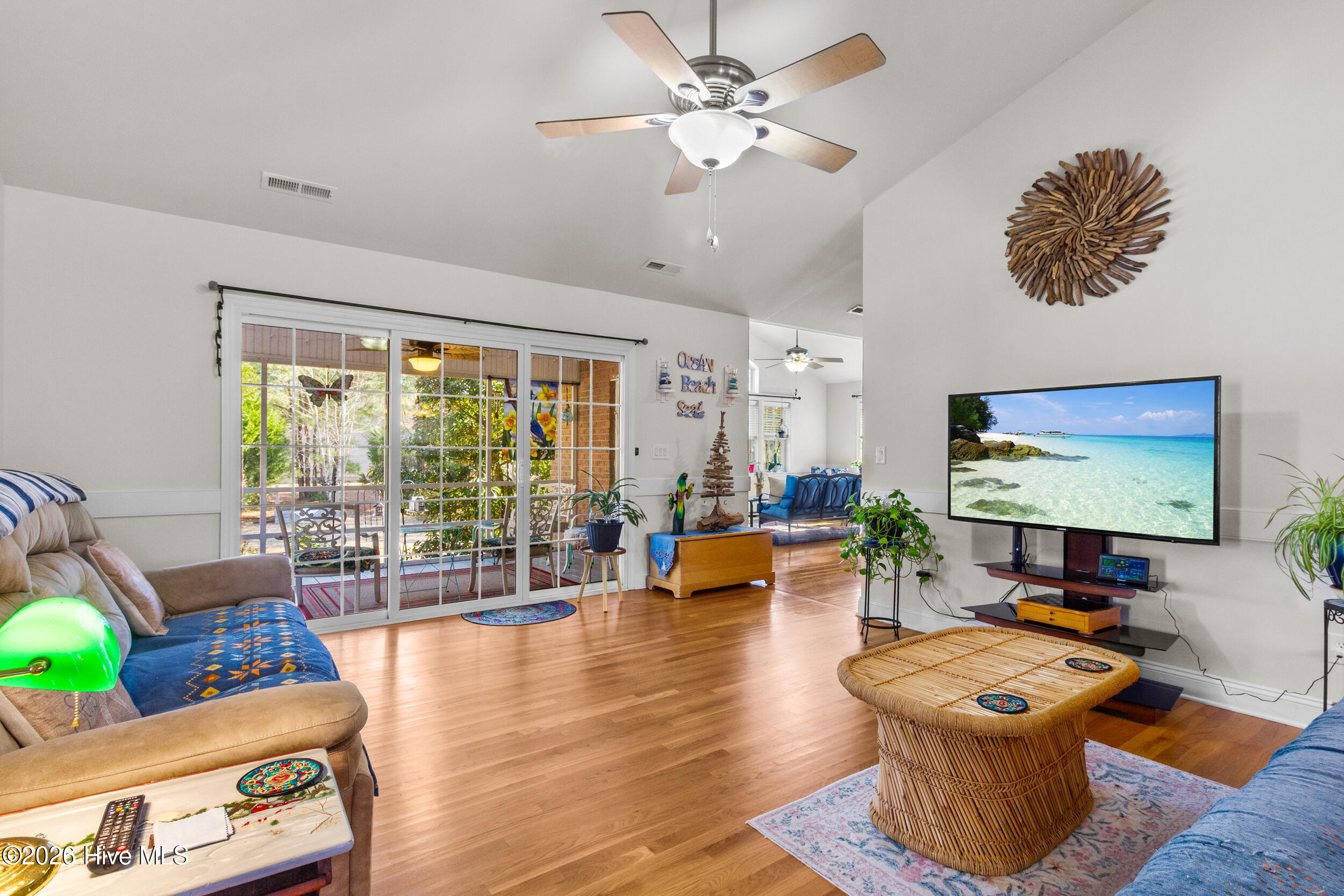 Beautiful brick home located in the desirable Fairfield Harbour community, offering a light and bright interior with a well-designed, open floorplan and minutes from downtown New Bern. Wood flooring highlights the spacious living room with vaulted ceilings, while the dining area flows seamlessly into the living space, creating an inviting setting for everyday living and entertaining. A separate family room provides additional flexibility. The kitchen features cherry wood cabinetry, stainless steel appliances, and a pantry, offering both style and functionality. Bedrooms are generously sized, with the main bedroom offering two walk-in closets and a private ensuite with dual sinks. A finished room over the garage (FROG) adds valuable living space and includes a full bath and walk-in closet, ideal for guests, a home office, or bonus room. Outdoor living is enhanced with a screened porch off the back, an additional grilling deck, and a large backyard with a stone patio—perfect for relaxing or entertaining. The attached two-car garage has been drywalled and includes extra storage space. Additional features include an eight-zone irrigation system and a water softener with reverse osmosis. Fairfield Harbour offers an exceptional lifestyle with waterfront access, fishing, golf, tennis, swimming, walking trails, a dog park, and a vibrant community with year-round social activities.