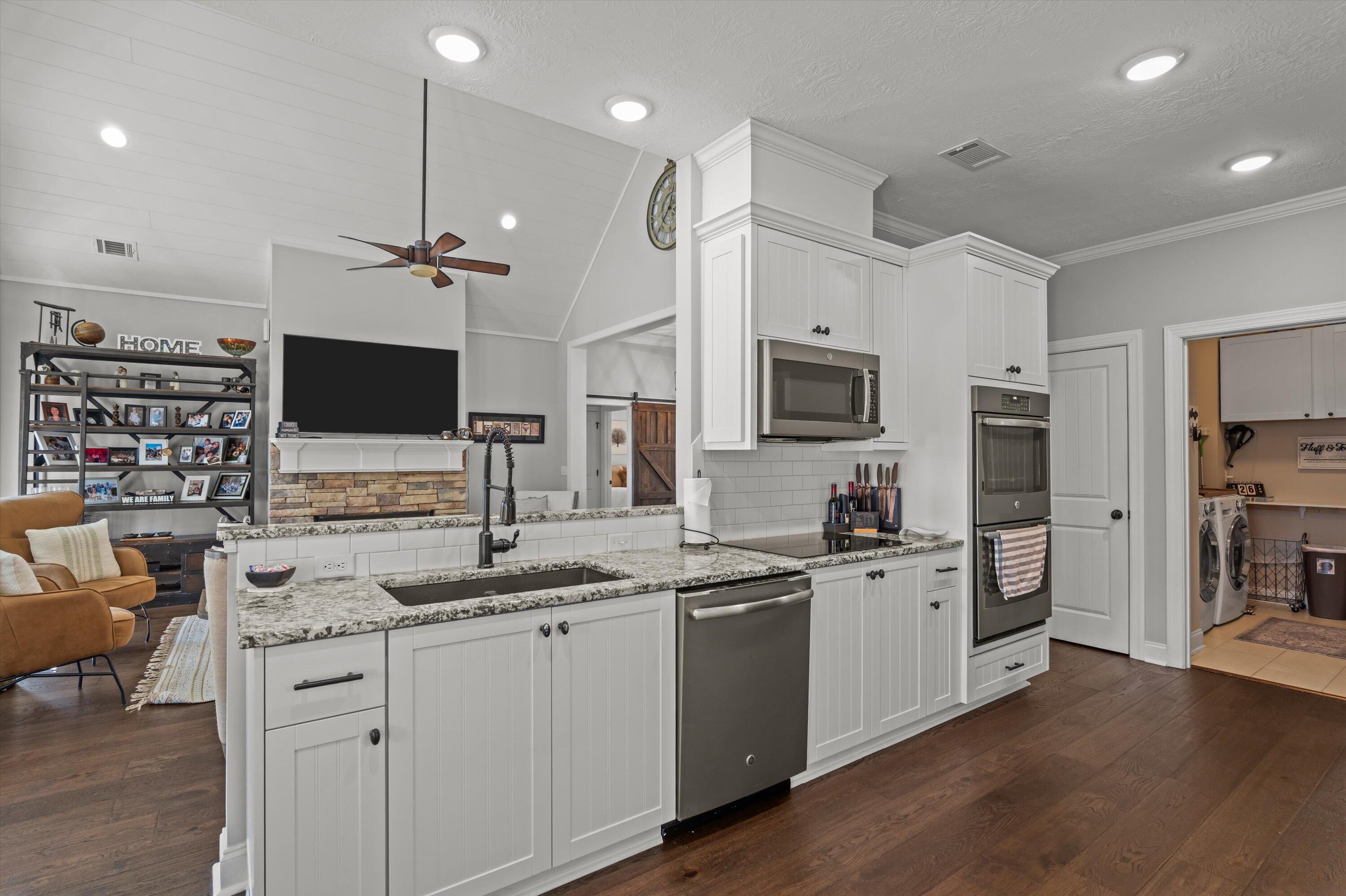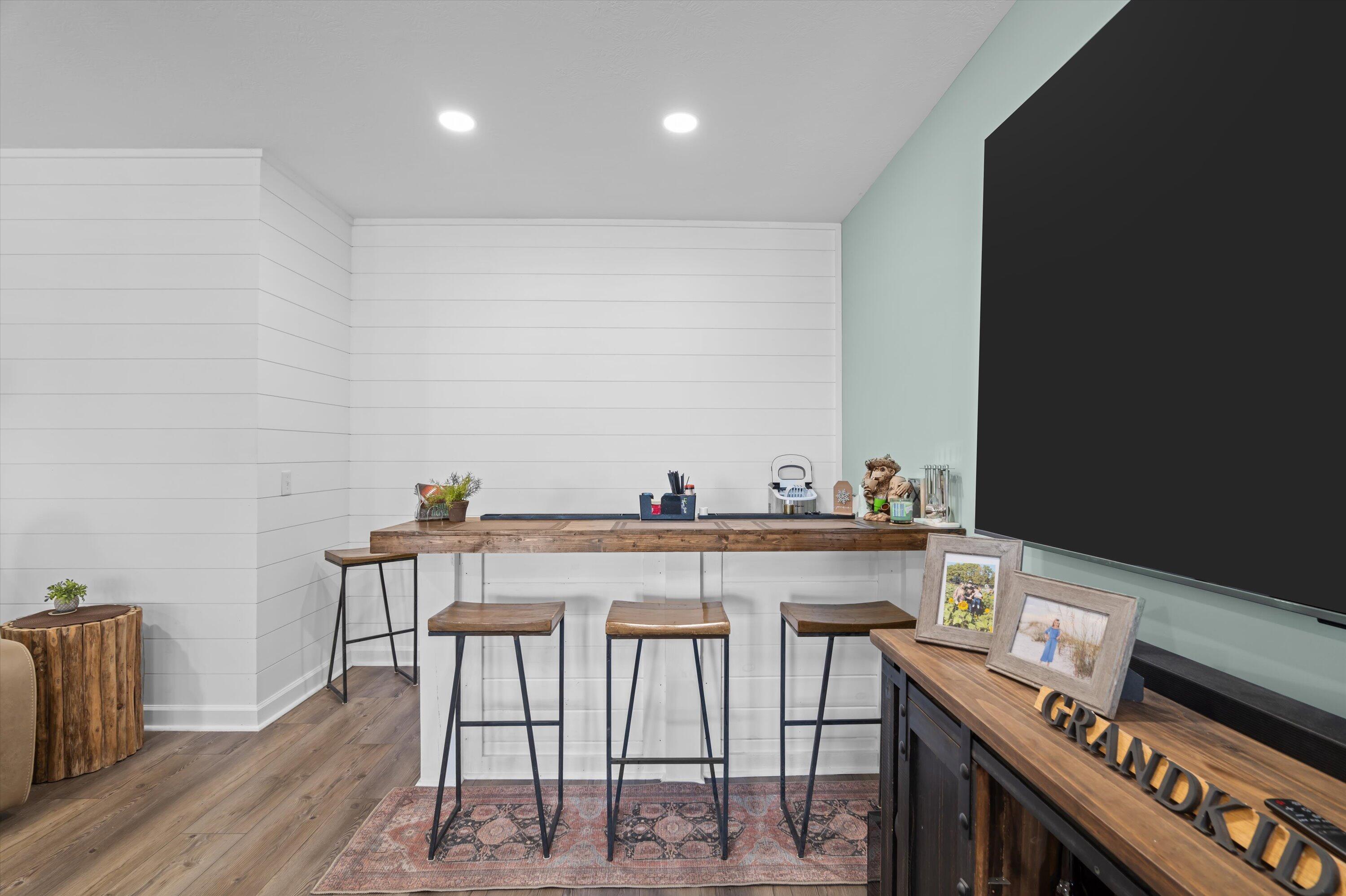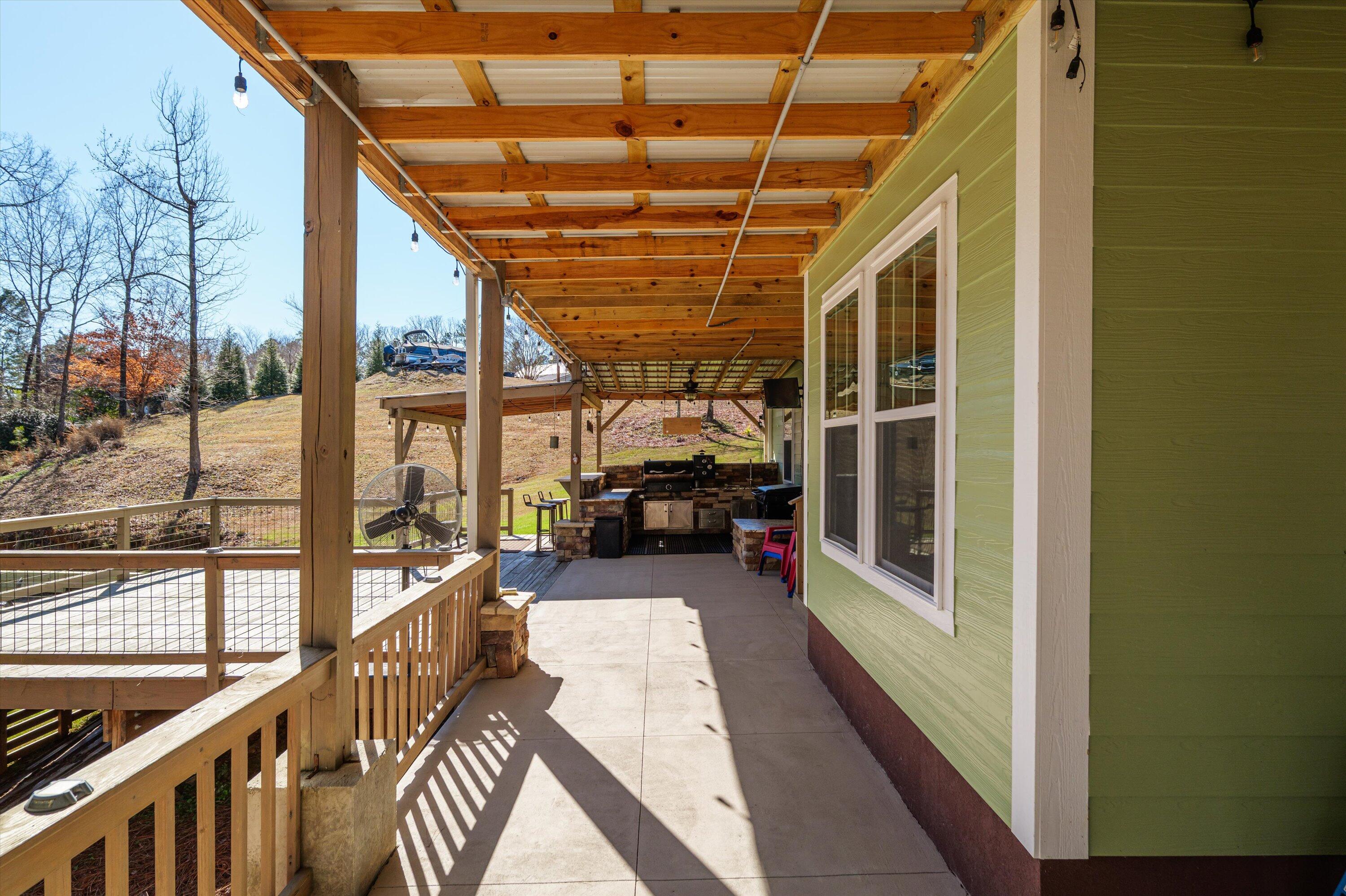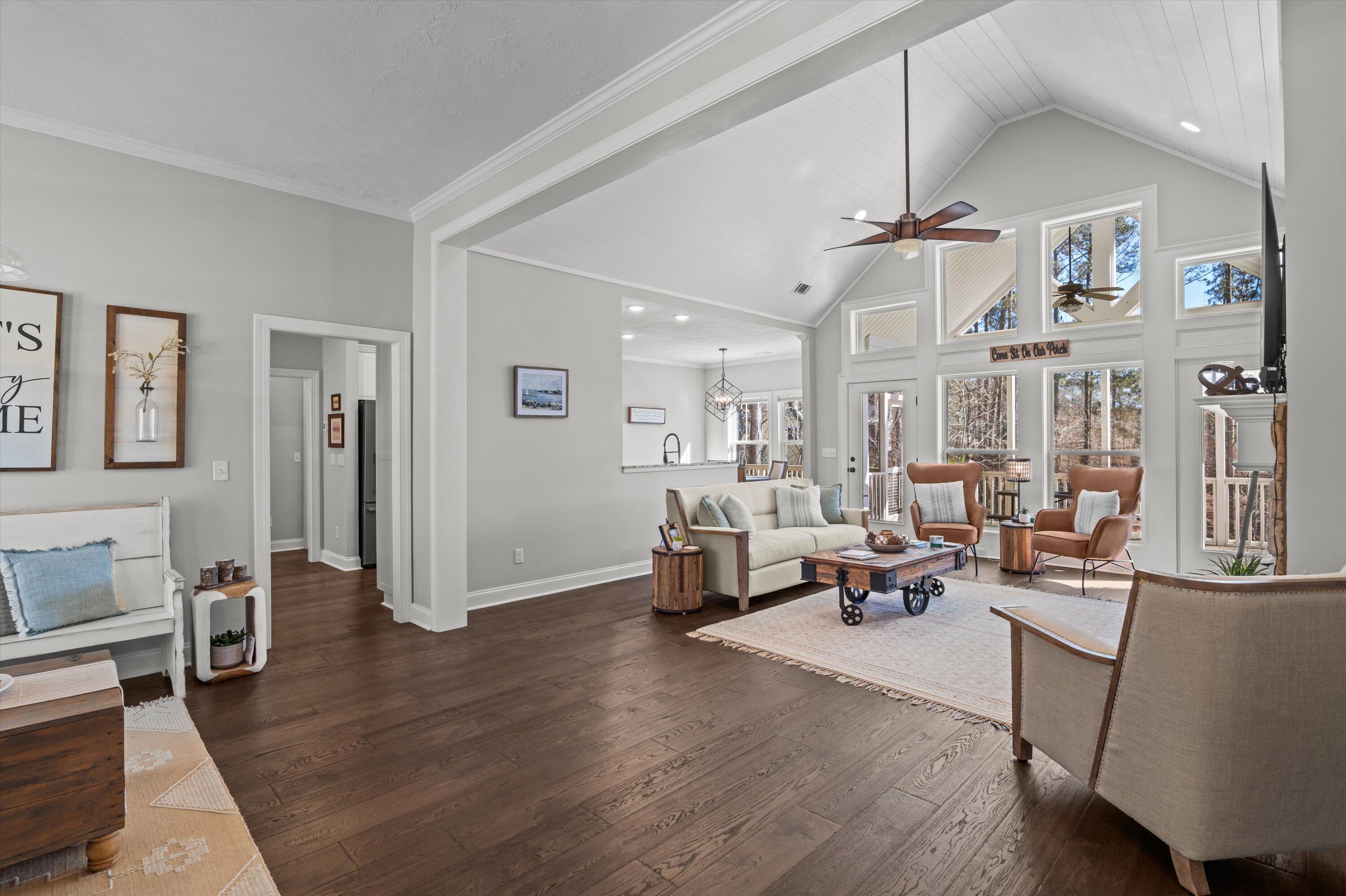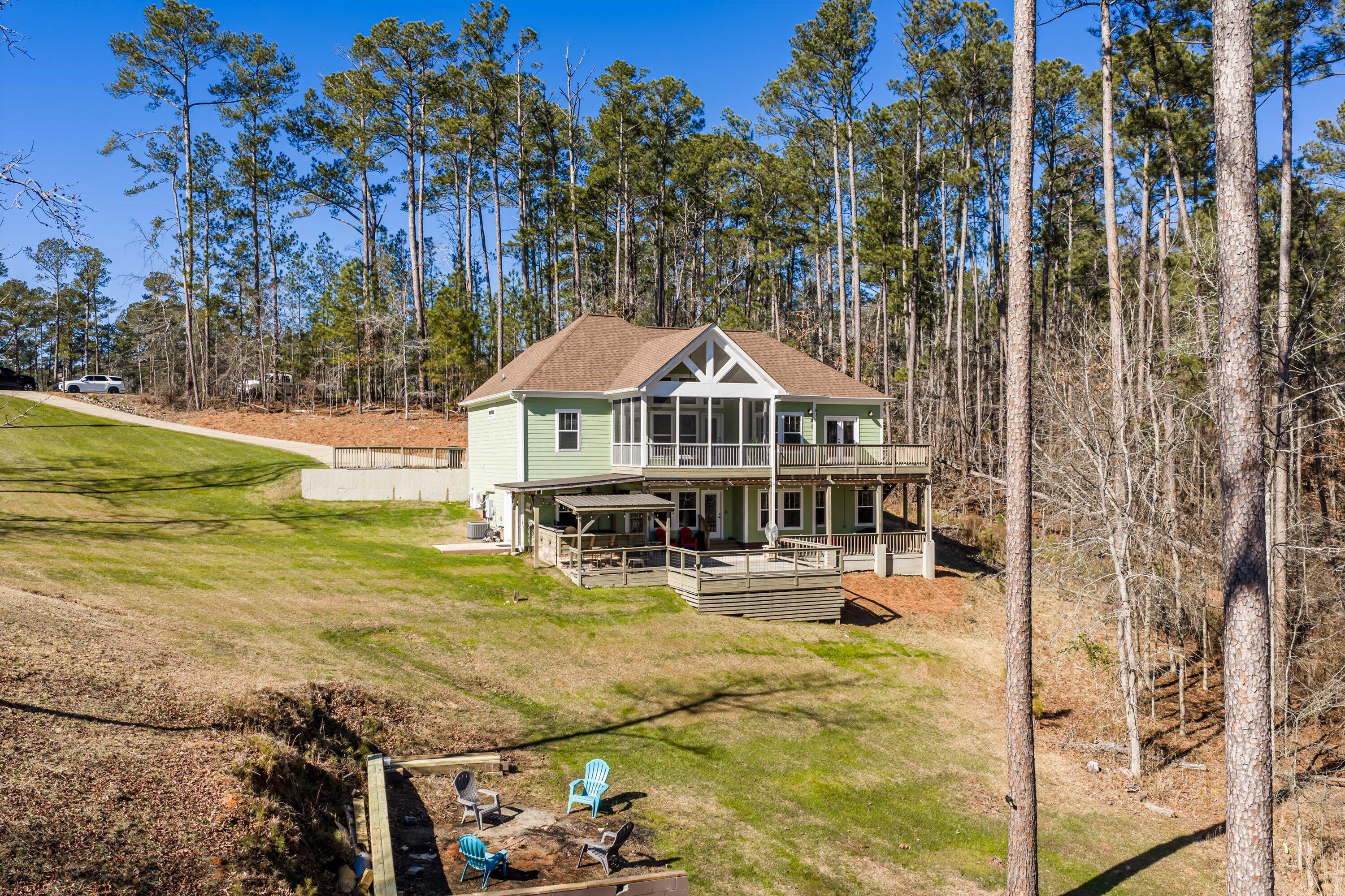 STUNNING LAKE FRONT HOME with PRIVATE DOCK and BOAT PARKING Nestled on a one-acre lot in a hidden cove, this 3,500-square-foot lakefront home offers unparalleled tranquility and breathtaking views of the Savannah River at the mouth of Carolina's Little River. The main level features a spacious open floor plan with engineered hardwood floors, a great room with vaulted ceilings, a cozy fireplace, and expansive windows framing the stunning lake views. The gourmet kitchen is a chef's dream, featuring granite countertops, stainless steel appliances, double ovens, and shaker-style cabinets. It seamlessly connects to a breakfast nook and a dining area, leading out to a large screened porch and a vaulted ceiling rear deck. The owner's suite includes private deck access, a luxurious en-suite bath with double vanities, a large glass shower, a soaking tub, and a walk-in closet filled with natural light. The main level also includes two additional bedrooms and a full bath, along with a convenient laundry room adjacent to the kitchen and pantry. Descend to the lower level, designed for entertainment and extended living. This level features a billiard room, a massive entertainment room with a 98-inch TV, theater seating, and a large wet bar. The fully furnished lower-level kitchen is complete with a stove/range combination, microwave, stainless steel sink, dishwasher, and ample cabinet space, Corian countertops and a massive walk-in pantry with double refrigerators and bakers shelving. A large 4th bedroom and a private office that can serve as a fifth bedroom as well as a full bath with large walk-in shower. Just mere steps away from the home, you'll find a private dock complete with a boat slip, offering easy access to the water for boating and leisurely activities. Step outside to a 500-square-foot covered patio with ceiling fans and a flat-screen TV, leading to a 240-square-foot covered outdoor kitchen and bar area, perfect for al fresco dining. Adjacent to the patio is a 340-square-foot deck, ideal for soaking up the sun or stargazing at night. This exceptional home combines luxury, comfort, and natural beauty, offering the perfect blend of family living and entertainment.