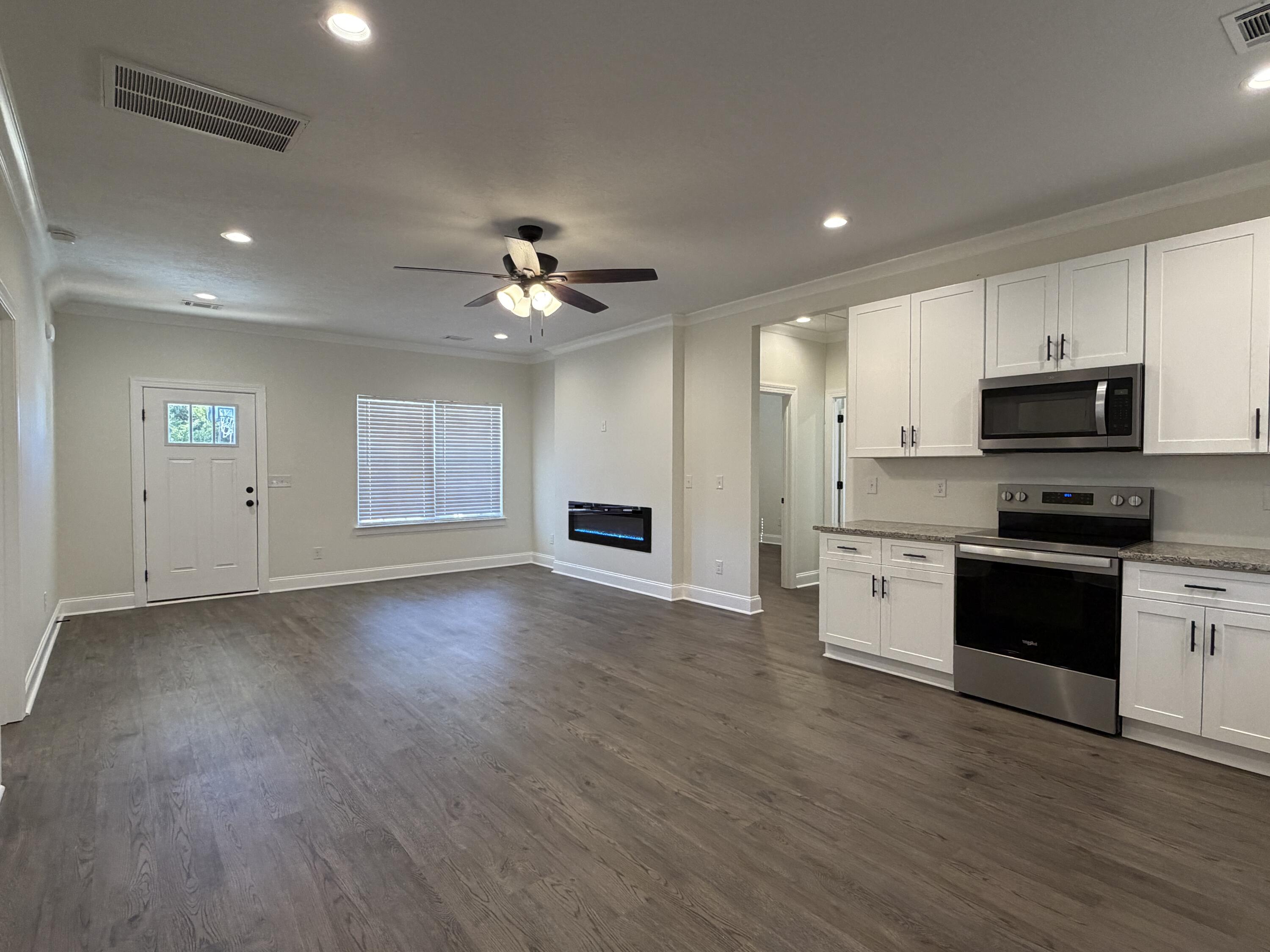QUALIFIES FOR ZERO DOWN PAYMENT ! READY FOR MOVE IN! Welcome to your next chapter in this thoughtfully designed 3-bedroom, 2-bath NEW CONSTRUCTION home, perfectly suited for first-time homeowners or those looking to downsize without compromise. Step inside to discover a spacious open-concept living room and kitchen, where natural light and comfort come together seamlessly. At the heart of the living space is a modern electric fireplace--both a stylish focal point and a cozy addition for quiet evenings or entertaining guests. The kitchen offers generous counter space and connects effortlessly to a walk-in pantry and dedicated laundry room. Your primary suite is tucked away for privacy and features a spacious walk-in closet, a dual-sink ensuite bathroom and mirrors with integrated lighting. Two additional bedrooms and a full bath are located on the opposite side of the home. Fenced in yard for added privacy! Whether you're starting fresh or simplifying your lifestyle, this home offers the comfort, function, and charm you've been looking for. Schedule your tour today and see how effortlessly this home fits your future.