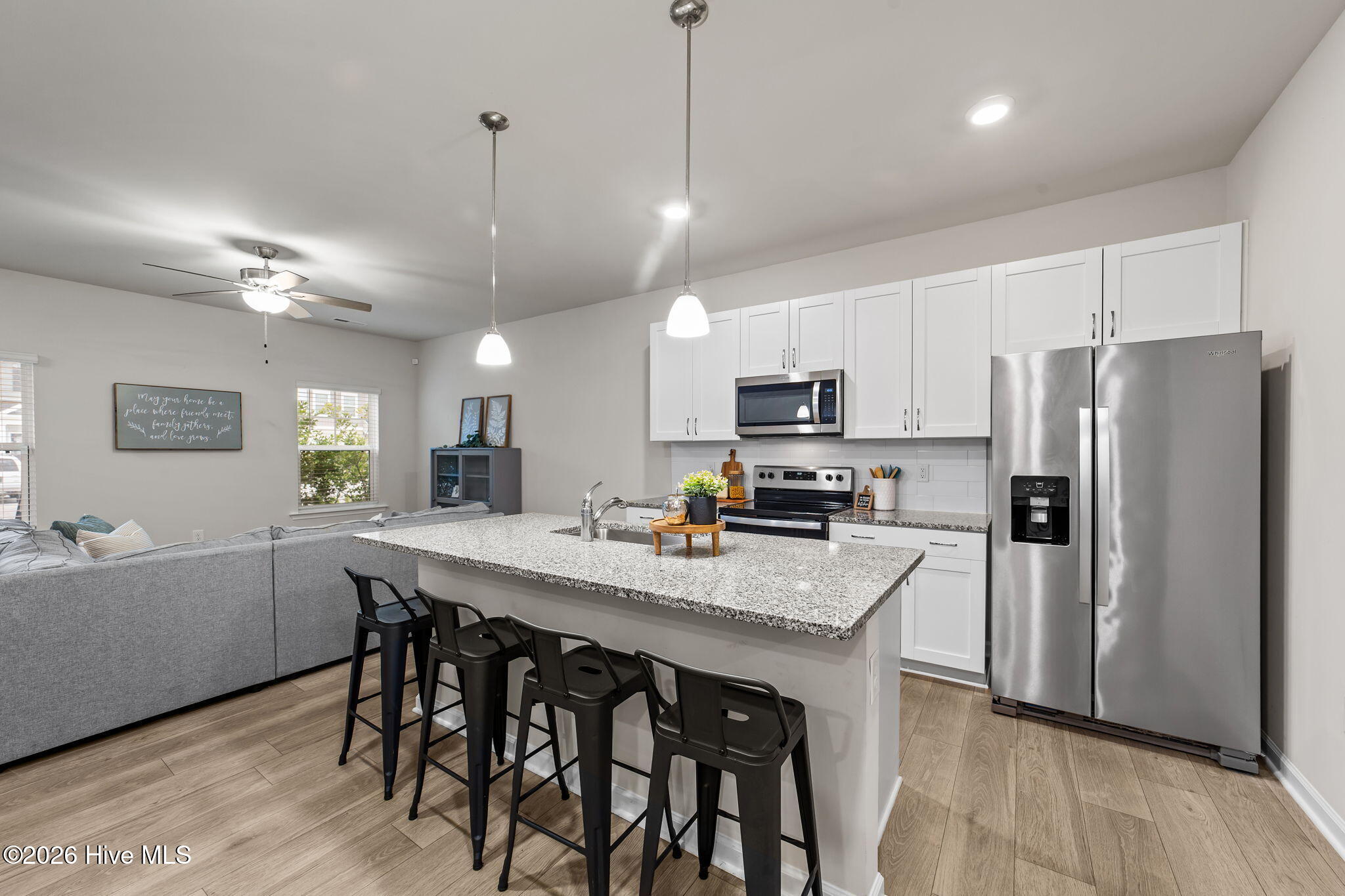 Looking for worry free, low maintenance living? This charming end unit townhome offers a like new feel with a thoughtfully designed layout featuring 4 bedrooms and 3 full baths. The main level includes a first floor bedroom with a full bath, ideal for guests, a home office, or flex space. The open floor plan provides comfortable living and entertaining space, while the kitchen shines with stainless steel appliances, a large center island, and a spacious pantry. Upstairs, you'll find three additional bedrooms, including the primary suite, along with ample storage and generous closet space throughout. Step outside to enjoy a peaceful patio, perfect for relaxing or unwinding after a long day. Conveniently located just minutes from Selma and Smithfield, with easy access to local coffee shops, dining, and shopping. Ask about our AMAZING Lender incentive!!