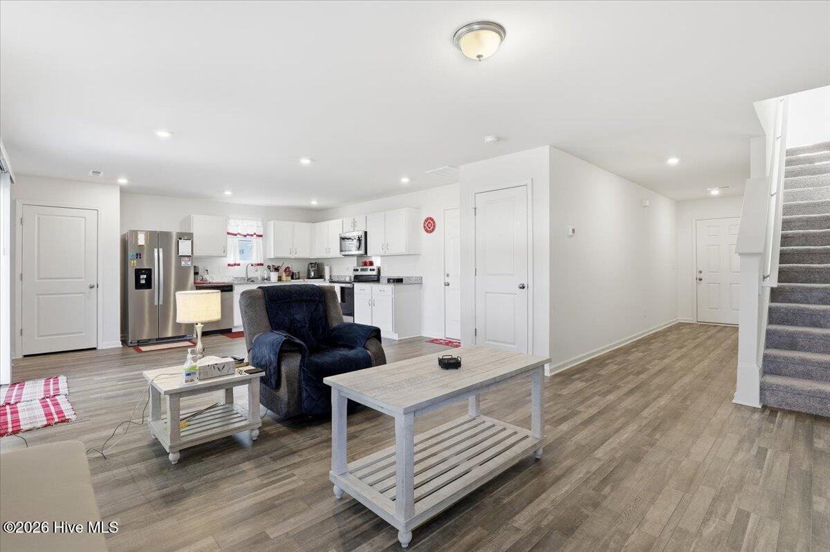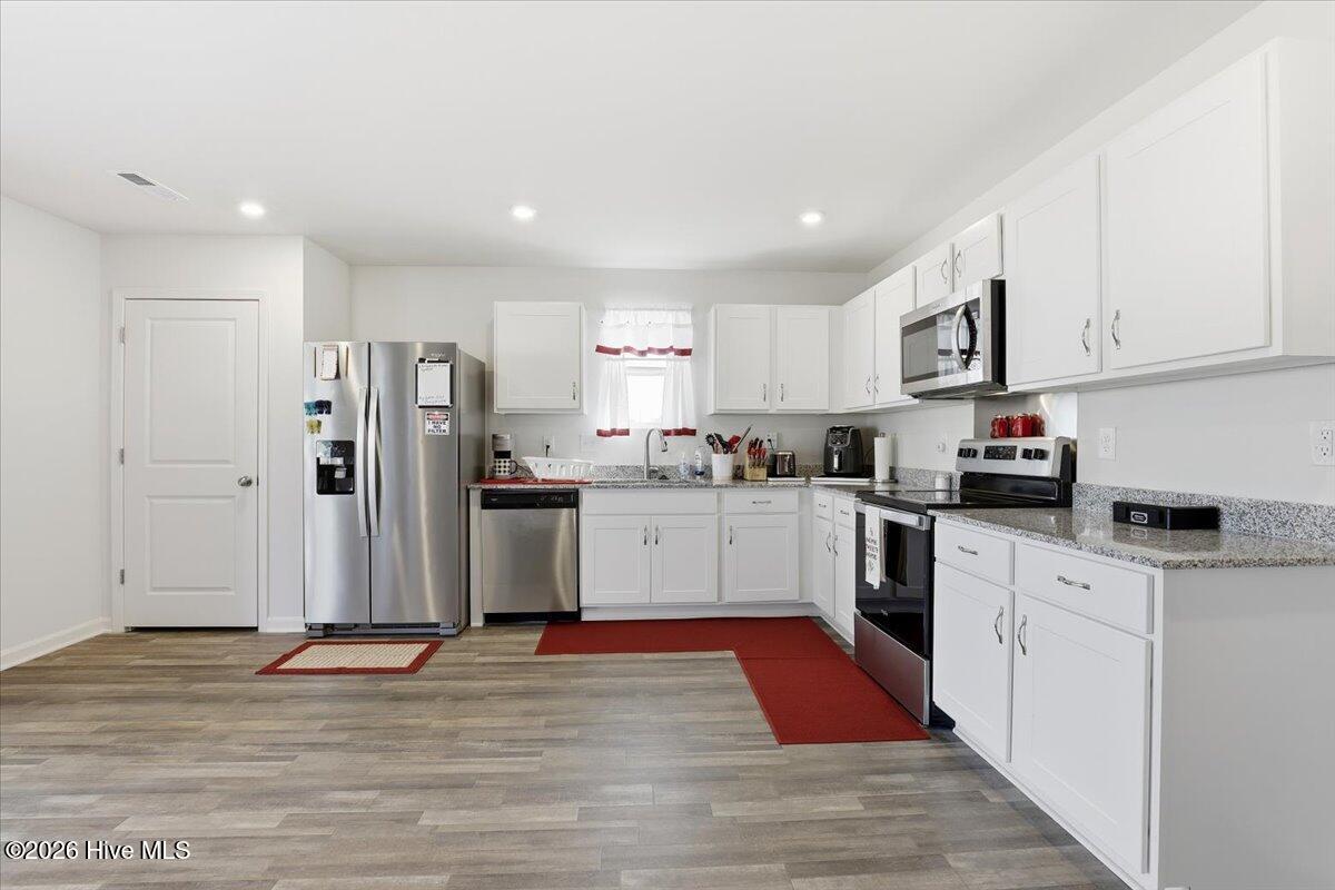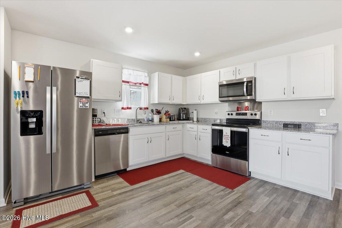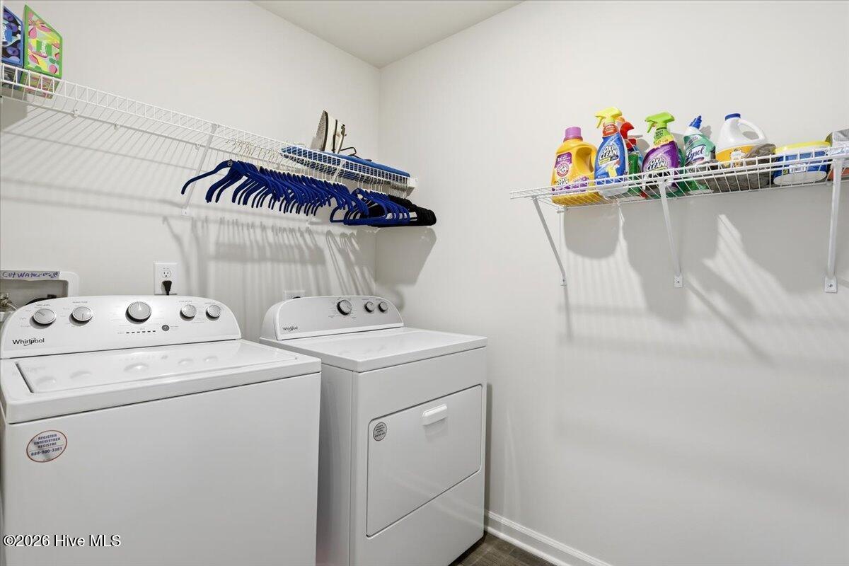 Prepare to be impressed by this like-new home with tons of upgrades! This beautiful two-story home features an open-concept kitchen, dining area and spacious great room with half-bath and entryway on the first floor. The kitchen is equiped with gorgeous cabinets upgraded with slide-out racks, granite countertops, disposal and new stainless steel appliances including the refrigerator. Located upstairs, the spacious master suite features a private bath with dual vanities and a large walk-in closet. There are two other bedrooms, a full bath and a laundry room upstairs all with upgraded racks and vents. The upstairs also features a loft area that can be used as an office or flex space. The home has blinds on all the windows and is equipped with a ring doorbell. The two-car finished garage is a workman's dream with racks and a work bench with stool that are staying as well as the rugs. The garage floor has been painted and baseboards added. Outside, you'll find an extended patio with fenced-in backyard with landscape edging and extra drainage added. The picnic table and large planters are staying making it the perfect outdoor space for entertaining. This meticulously cared for home is a must-see.