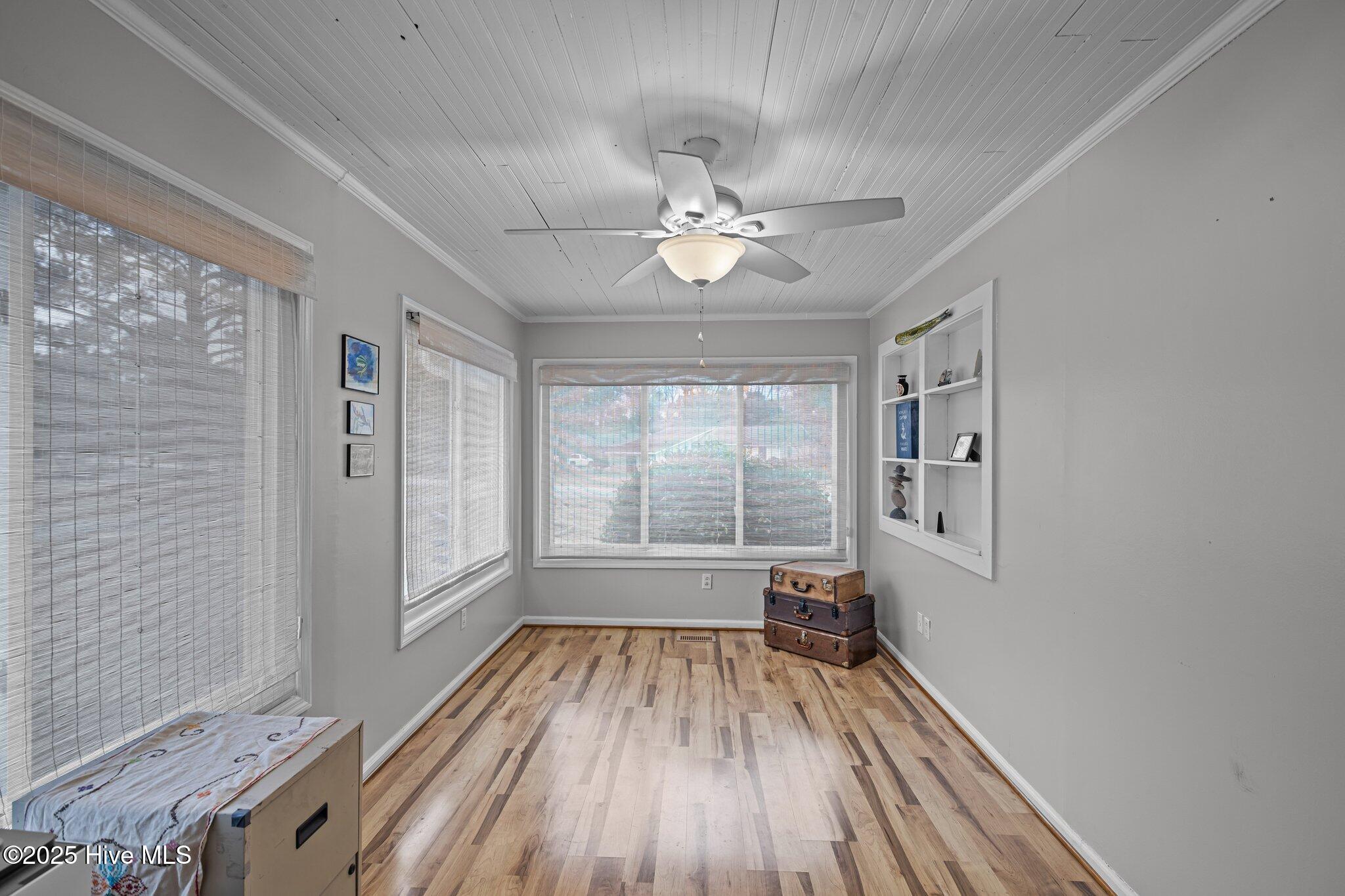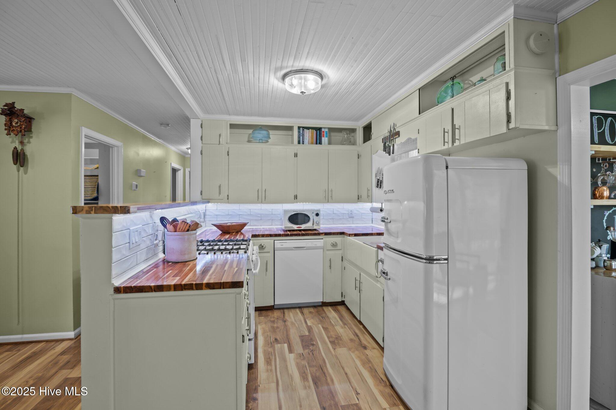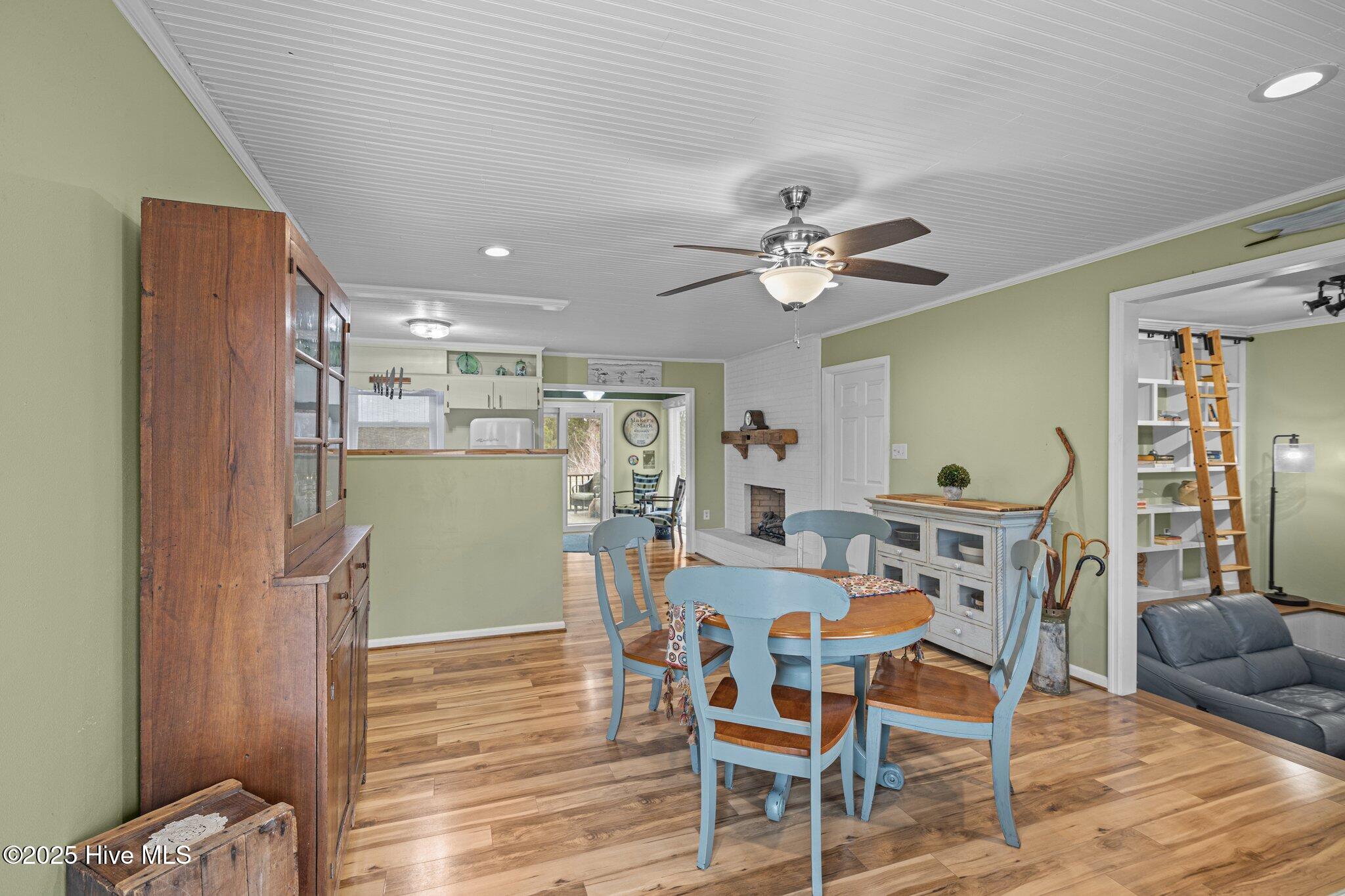 Welcome to this delightful, partially furnished 3-bedroom, 2-bathroom home in the heart of the Village of Oriental! Thoughtfully designed for easy living and character, the open-concept living area features built-in bookshelves and a charming library ladder--an ideal nook for reading or showcasing your favorite books and décor. The spacious primary bedroom offers a peaceful retreat, while the two additional bedrooms provide flexible space to suit your needs--perfect for guests, a home office, or hobbies. The two well-appointed bathrooms include modern finishes, with one featuring a sleek walk-in shower. The updated kitchen includes a stylish farmhouse sink, and a dedicated laundry room adds to the home's comfort and convenience. Step outside to a cozy screened porch perfect for year-round relaxation, and enjoy the generous backyard complete with brand-new raised Vego garden beds--ready for your green thumb! This home also includes deeded waterfront access and use of a private kayak/dinghy pier, ideal for exploring the nearby waters. This home invites you to embrace the best of coastal living--whether you're savoring quiet moments indoors or soaking up the outdoors.