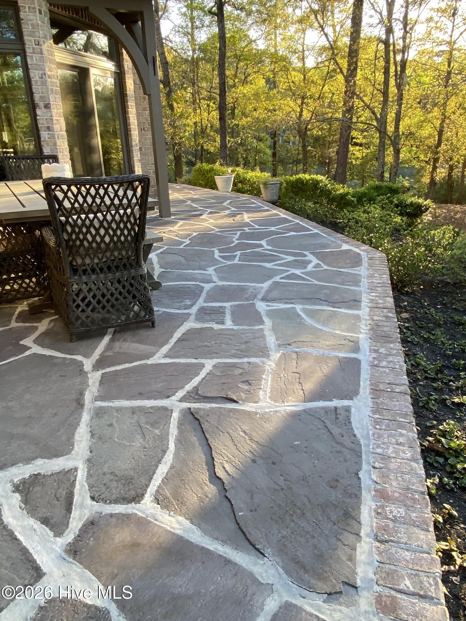 Perched high on a waterfront bluff, this masterpiece on Futch Creek sits arguably in one of the most beautiful areas in all of Wilmington. This custom-built home is set far back from the road on an approximate acre, offering peace and tranquility in a natural setting with water access from your pier and dock with sweeping views of Futch Creek. Outdoor living shines with a wraparound flagstone patio, including a private sitting area off the primary bedroom, plus a newly built, state-of-the-art outdoor kitchen crafted in brick and stone--complete with a fire pit for unforgettable evenings by the water. Enter through the arched mahogany front door and discover high-end features throughout, including vaulted ceilings with exposed wood beams, an arched fireplace, and large, open, airy rooms designed to maximize natural light and water views. Front and rear staircases add both character and function, while banks of stacked Andersen windows frame expansive vistas of Futch Creek. Hardwood and ceramic tile flooring, custom cabinetry, high-end stainless steel GE appliances, and large walk in primary closet complete the home's refined interior. An oversized two-car garage offers an equestrian-inspired feel with abundant space for storage and hobbies. HOA fees include deep-water Intracoastal access and boat storage, and championship golf, tennis, and social memberships are available at nearby Porters Neck Country Club. Patio has been recently re-grouted