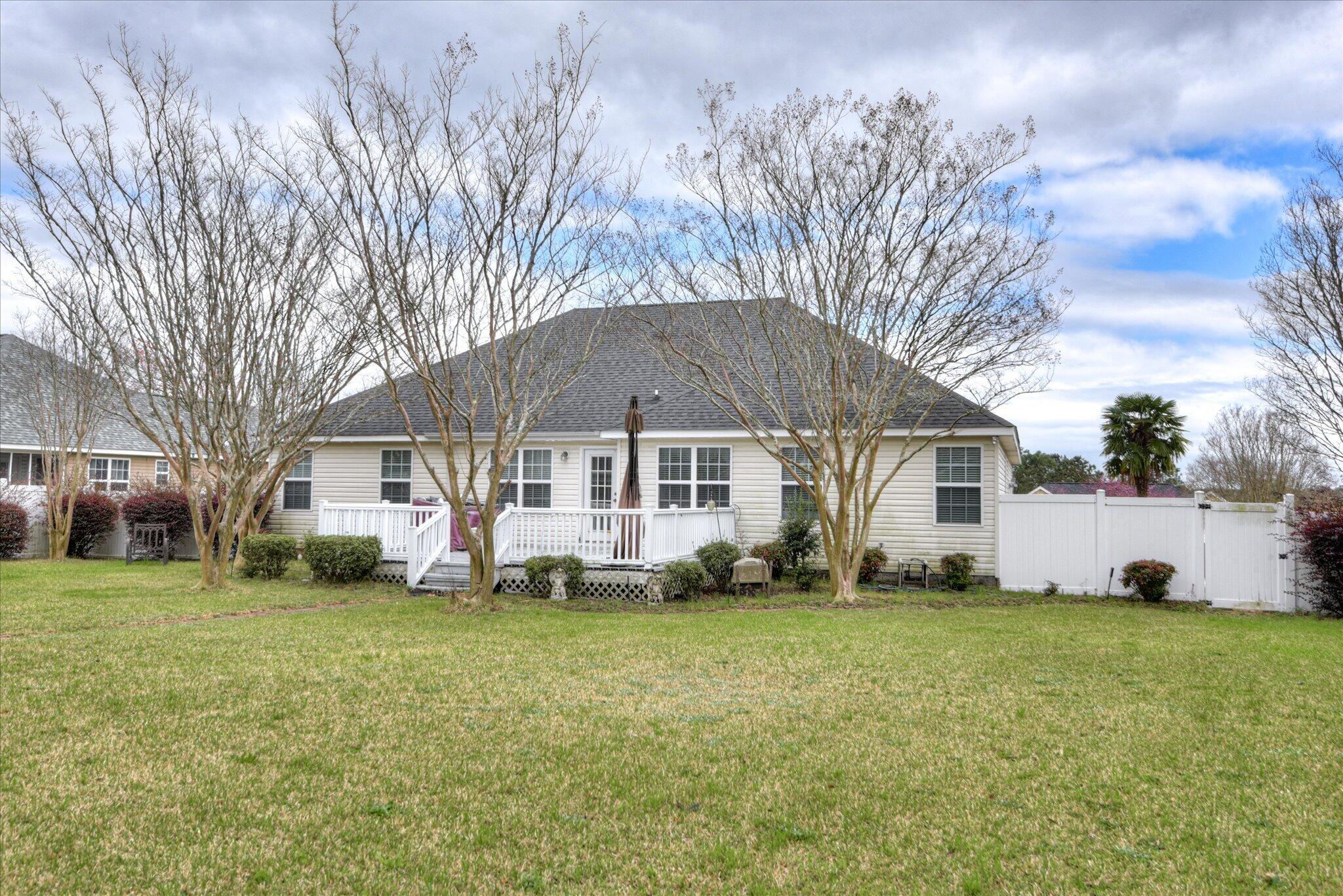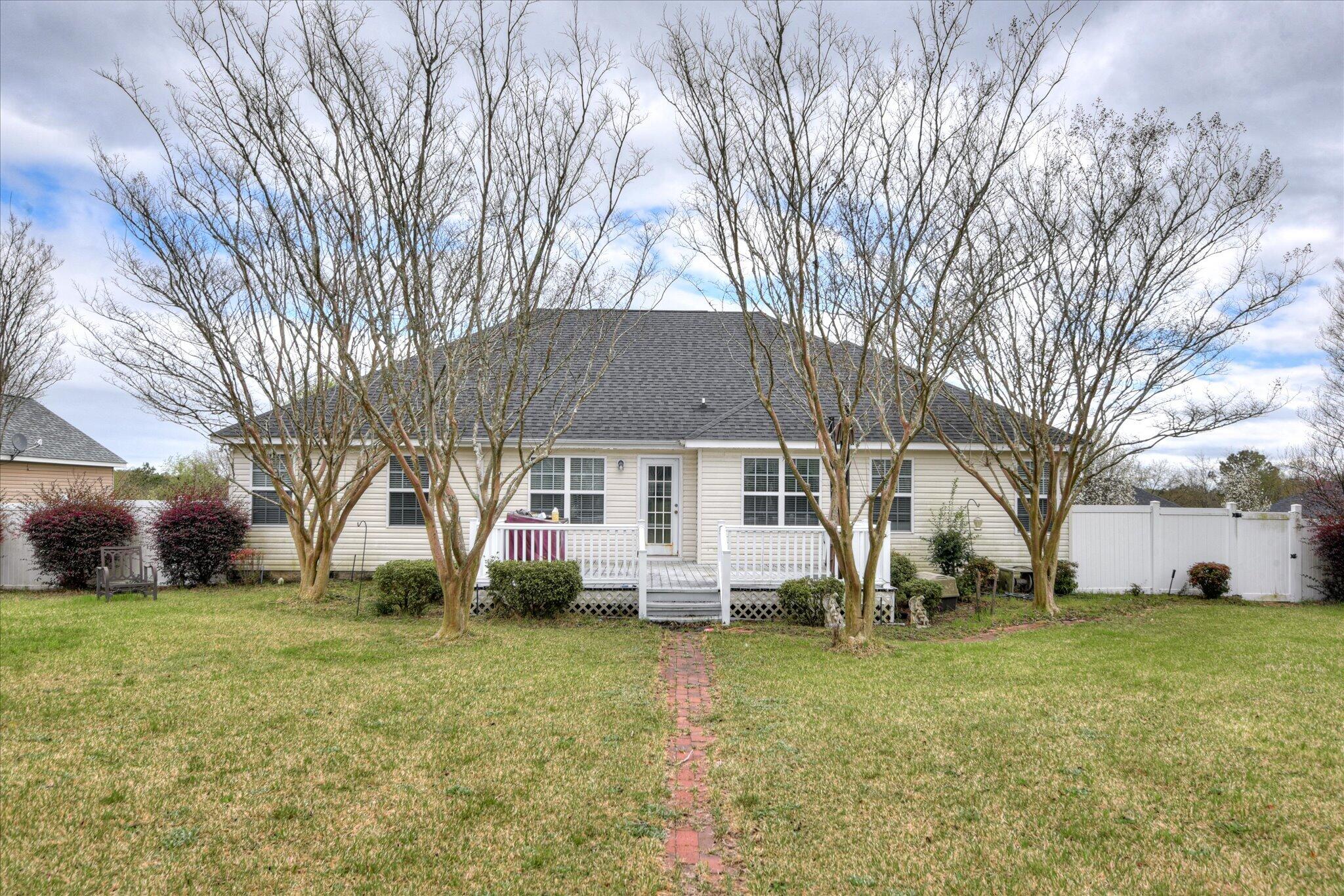 This 4 bed 2 bath single story home is located in Oxford Place Subdivision. Well maintained and spacious, with vaulted ceilings in the main living area. Tiled backsplash in the eat-in kitchen and all appliances convey. Separate laundry room. Plenty of storage, solid surface counters with an undermount sink. Featuring engineered hardwoods in the main living space with a gas log fireplace in the living room. The primary suite has walk-in closets and a large bathroom with walk in shower and separate soaking tub, as well as a large walk in closet. Three additional bedrooms and another bathroom complete the opposite side of the house. Sizable deck overlooks a large private fenced backyard with mature landscaping. Corner lot. Large shed with power. Two car garage with automatic garage door opener.