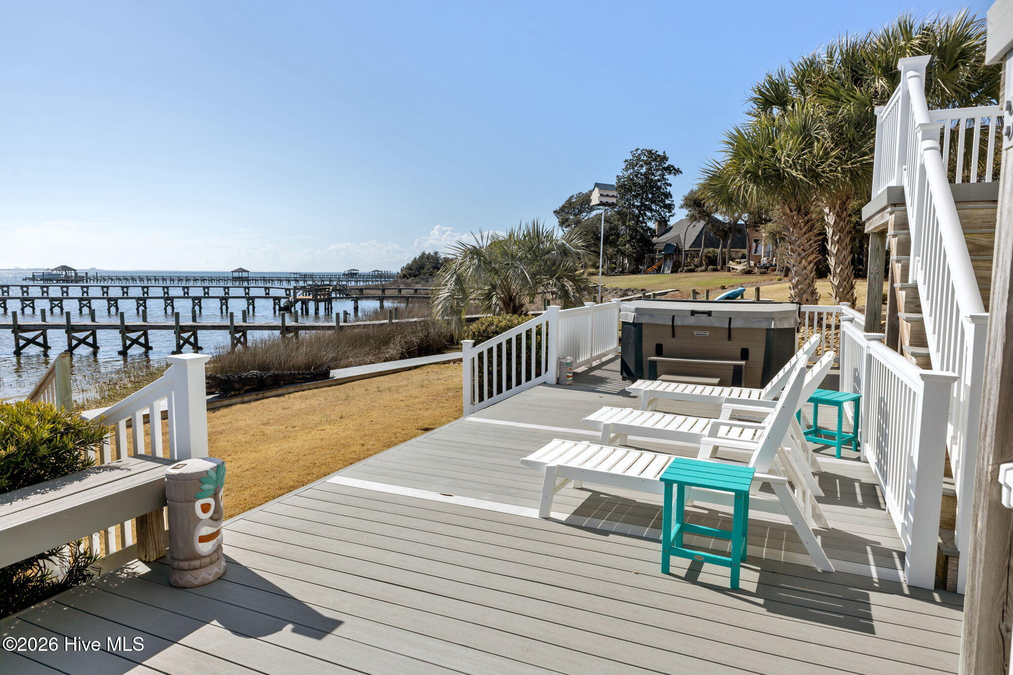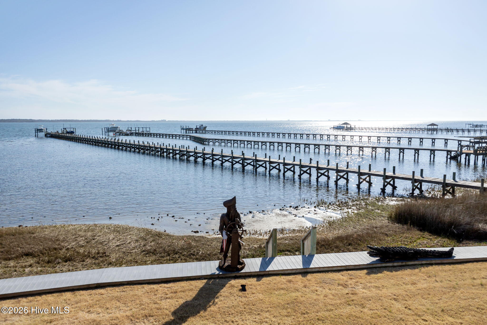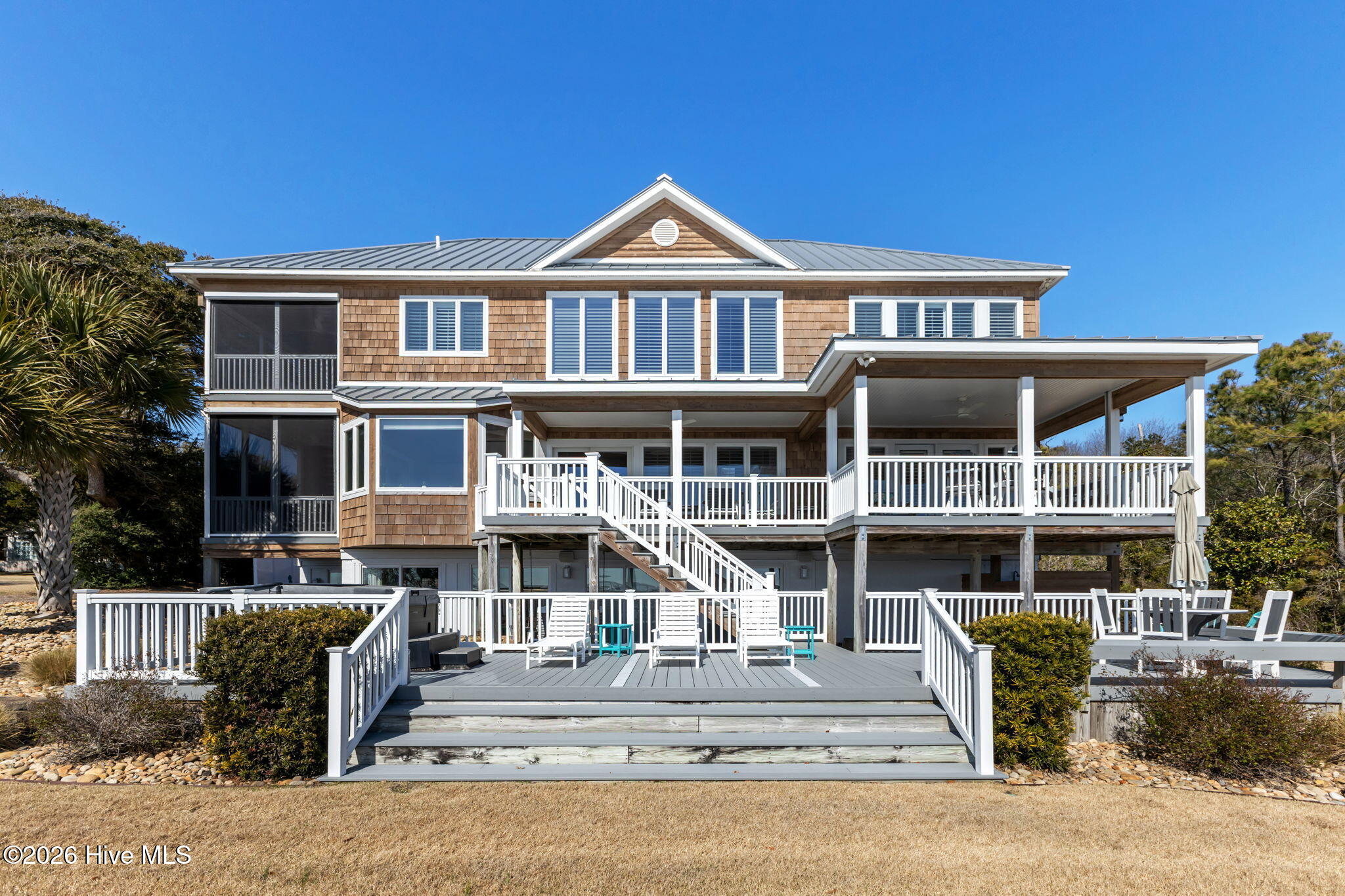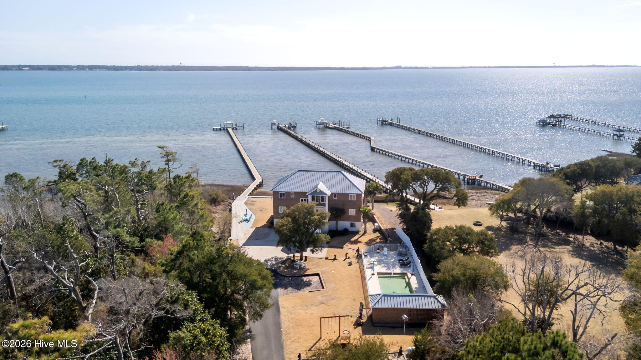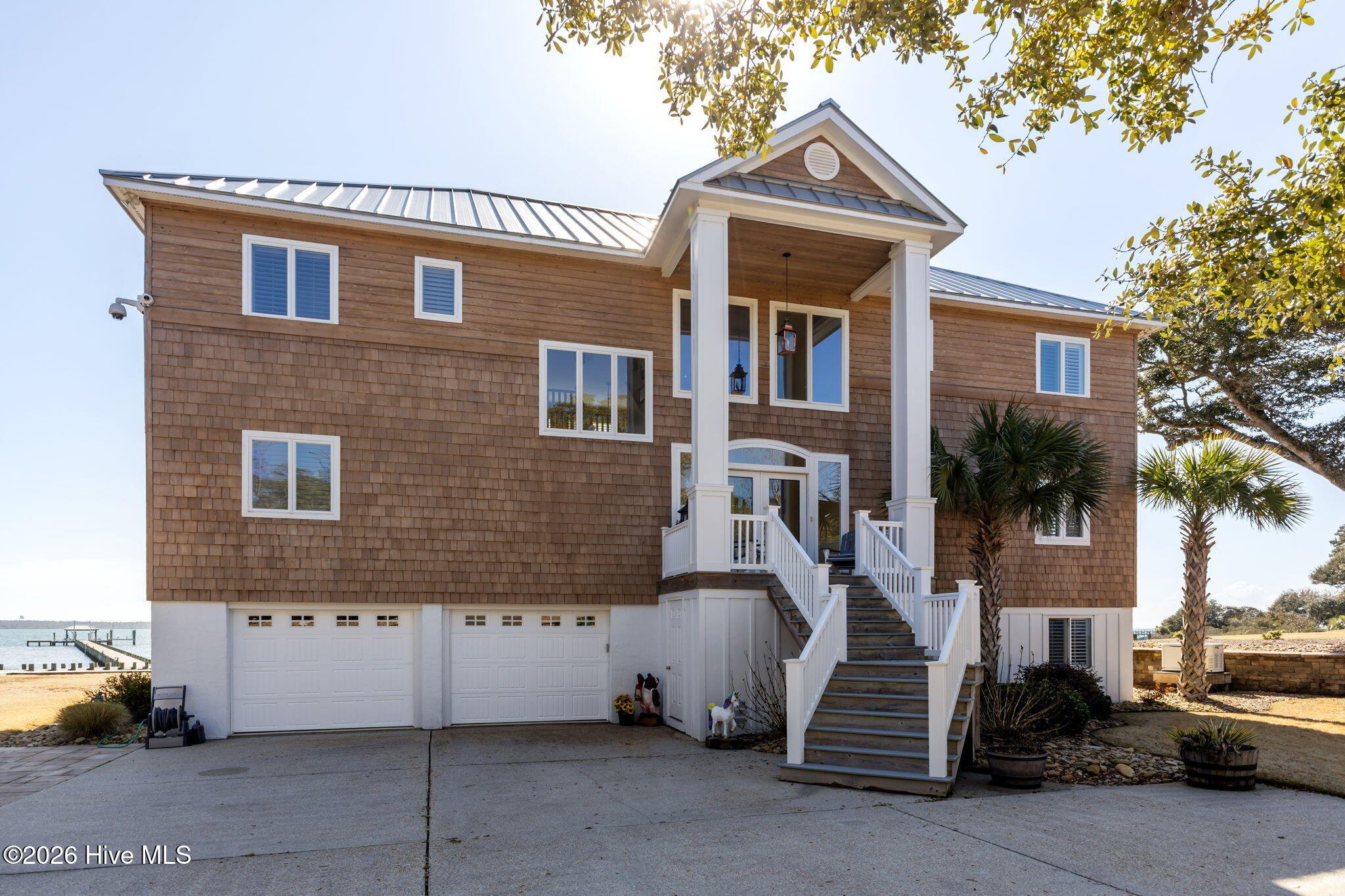 The Dragon House!! This expansive waterfront residence is where luxury, privacy, and coastal beauty converge. Situated on approximately 4 acres along Bogue Sound and the Intracoastal Waterway in Morehead City, NC, this exceptional 5-bedroom, 5-bath residence showcases panoramic views of the ICW in a one-of-a-kind setting behind a private gated entrance. The property's distinctive character is immediately evident, with hand-carved wooden statues thoughtfully placed throughout the grounds. This home showcases open concept living-dining-kitchen and water views from almost every window. Dual Principal suites provide peaceful retreats with plantation shutters and refined finishes. The ground level offers a spacious great room designed for entertaining, complete with a billiard table, wet bar, large screen tv, and sectional couch with queen pull out bed, perfect for hosting guests or creating a relaxed gathering space. Additional features include an elevator, whole-house generator, Kinetico water system, and a security system. The waterfront amenities are exceptional, offering a private dock, boat lift, jet ski lift, hot tub, and private beach access. The outdoor living experience continues with a heated pool, private half bath, playground, and beautifully maintained grounds. Two levels of decks, a patio, and double-decker screened porches with storm shutters create an impressive setting for relaxation or entertainment. A detached double garage with dual carports provides excellent storage for vehicles and water toys. This is a rare opportunity to own a truly one-of-a-kind waterfront retreat that captures the very best of coastal living. Just Add Water to Your Lifestyle!