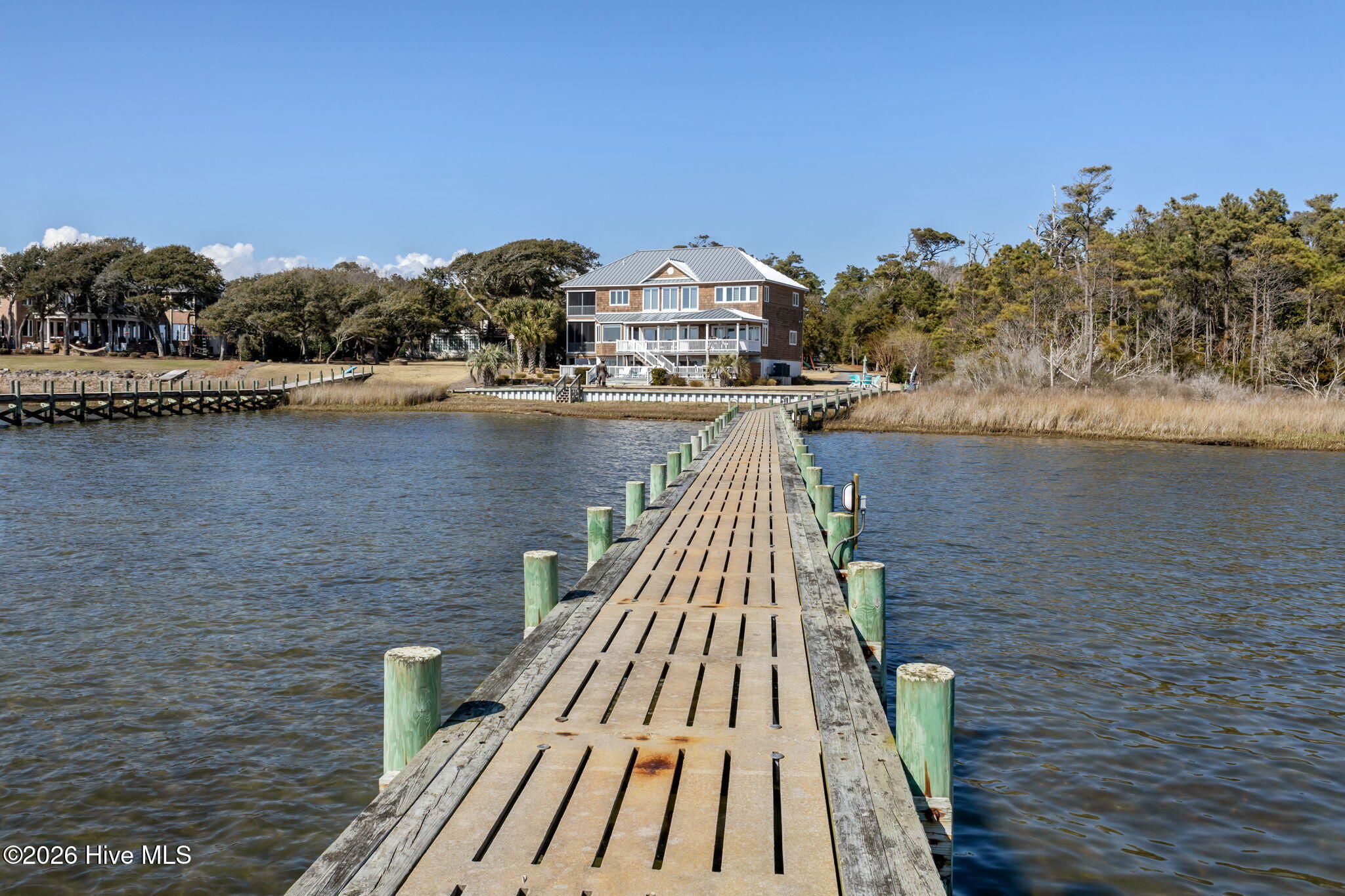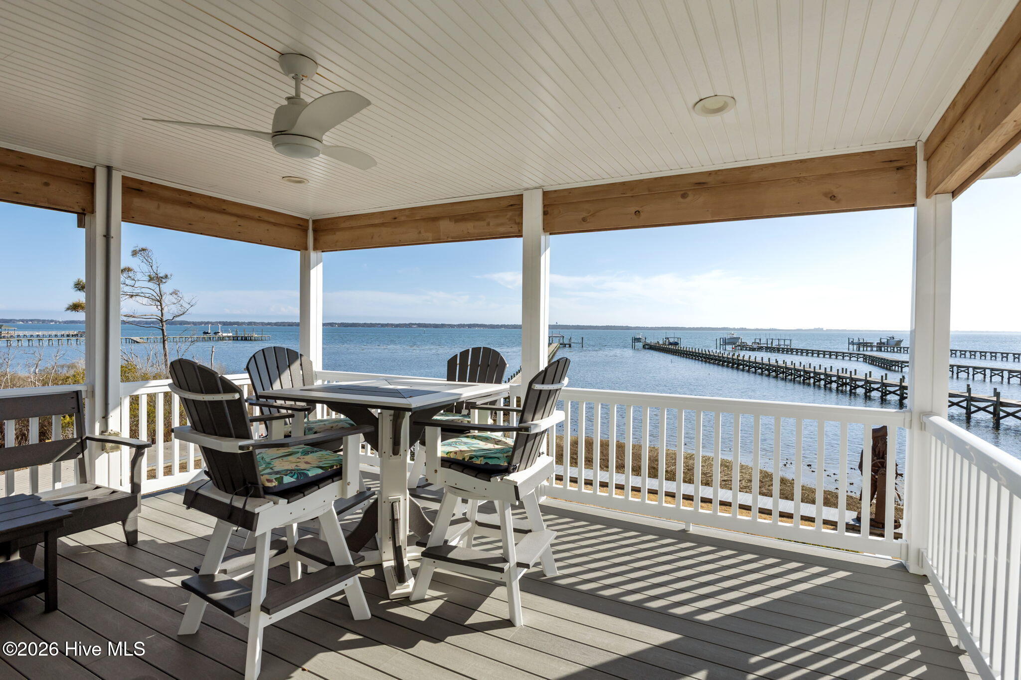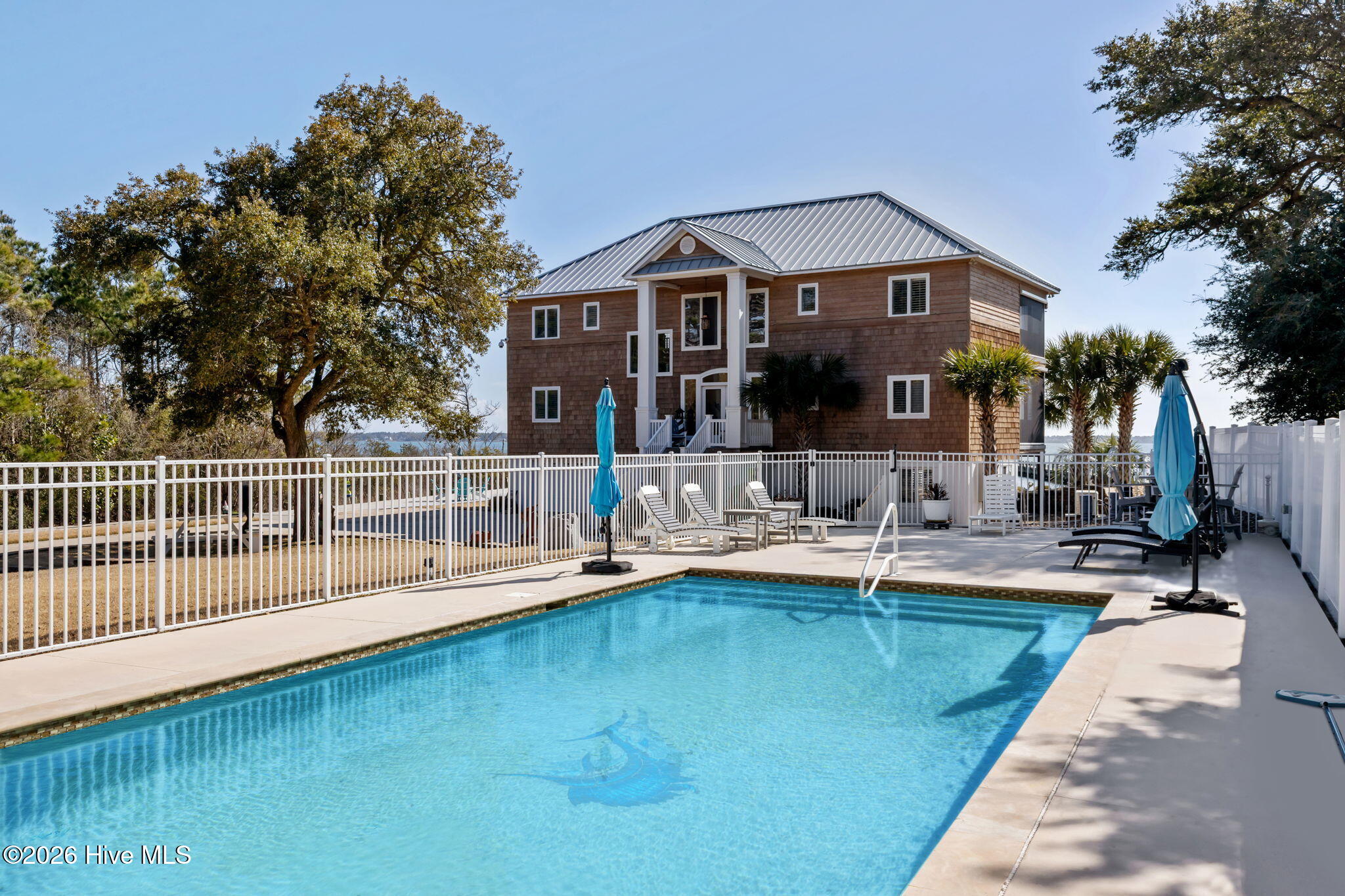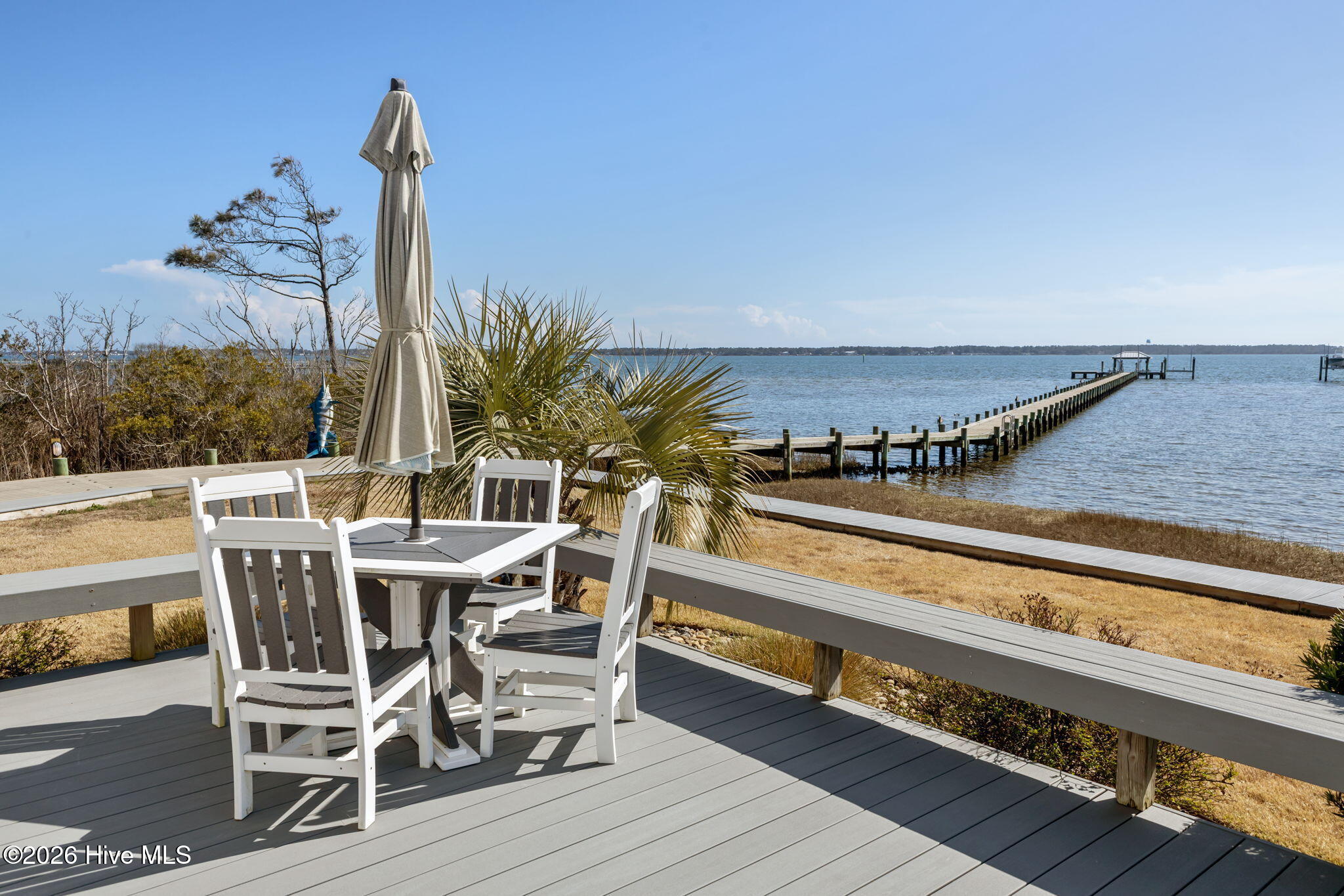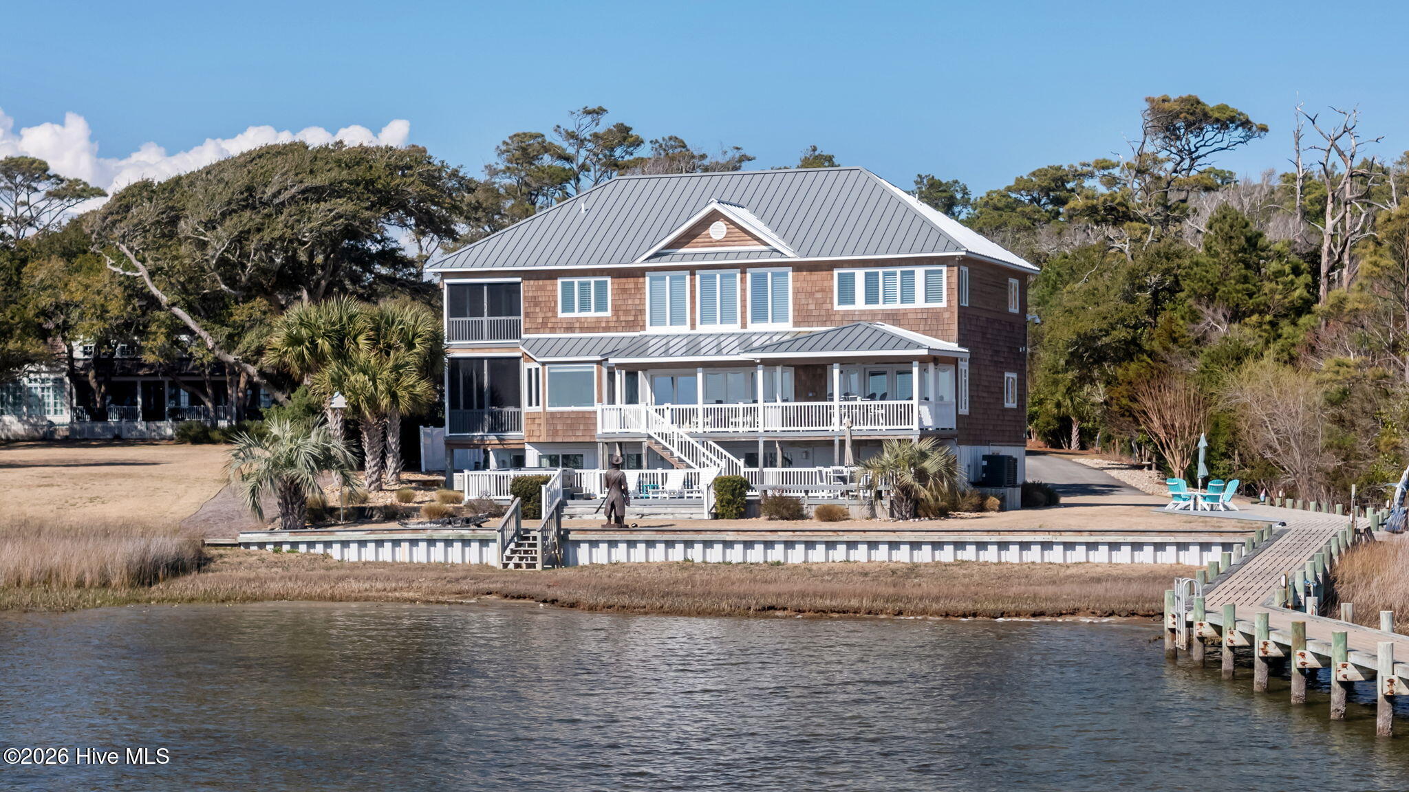 The Dragon House!! This expansive waterfront residence is where luxury, privacy, and coastal beauty converge. Situated on approximately 4 acres along Bogue Sound and the Intracoastal Waterway in Morehead City, NC, this exceptional 5-bedroom, 5-bath residence showcases panoramic views of the ICW in a one-of-a-kind setting behind a private gated entrance. The property's distinctive character is immediately evident, with hand-carved wooden statues thoughtfully placed throughout the grounds. This home showcases open concept living-dining-kitchen and water views from almost every window. Dual Principal suites provide peaceful retreats with plantation shutters and refined finishes. The ground level offers a spacious great room designed for entertaining, complete with a billiard table, wet bar, large screen tv, and sectional couch with queen pull out bed, perfect for hosting guests or creating a relaxed gathering space. Additional features include an elevator, whole-house generator, Kinetico water system, and a security system. The waterfront amenities are exceptional, offering a private dock, boat lift, jet ski lift, hot tub, and private beach access. The outdoor living experience continues with a heated pool, private half bath, playground, and beautifully maintained grounds. Two levels of decks, a patio, and double-decker screened porches with storm shutters create an impressive setting for relaxation or entertainment. A detached double garage with dual carports provides excellent storage for vehicles and water toys. This is a rare opportunity to own a truly one-of-a-kind waterfront retreat that captures the very best of coastal living. Just Add Water to Your Lifestyle!