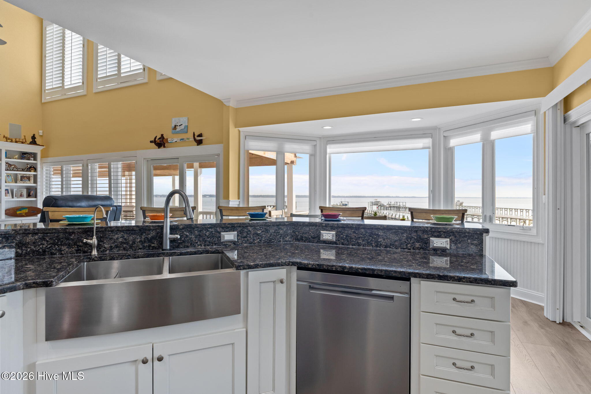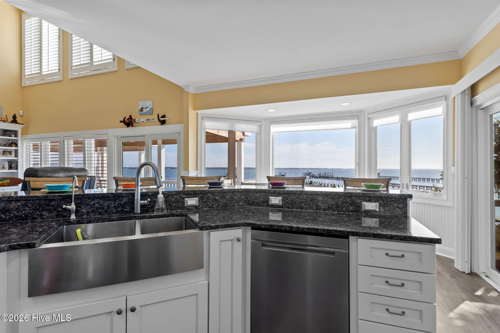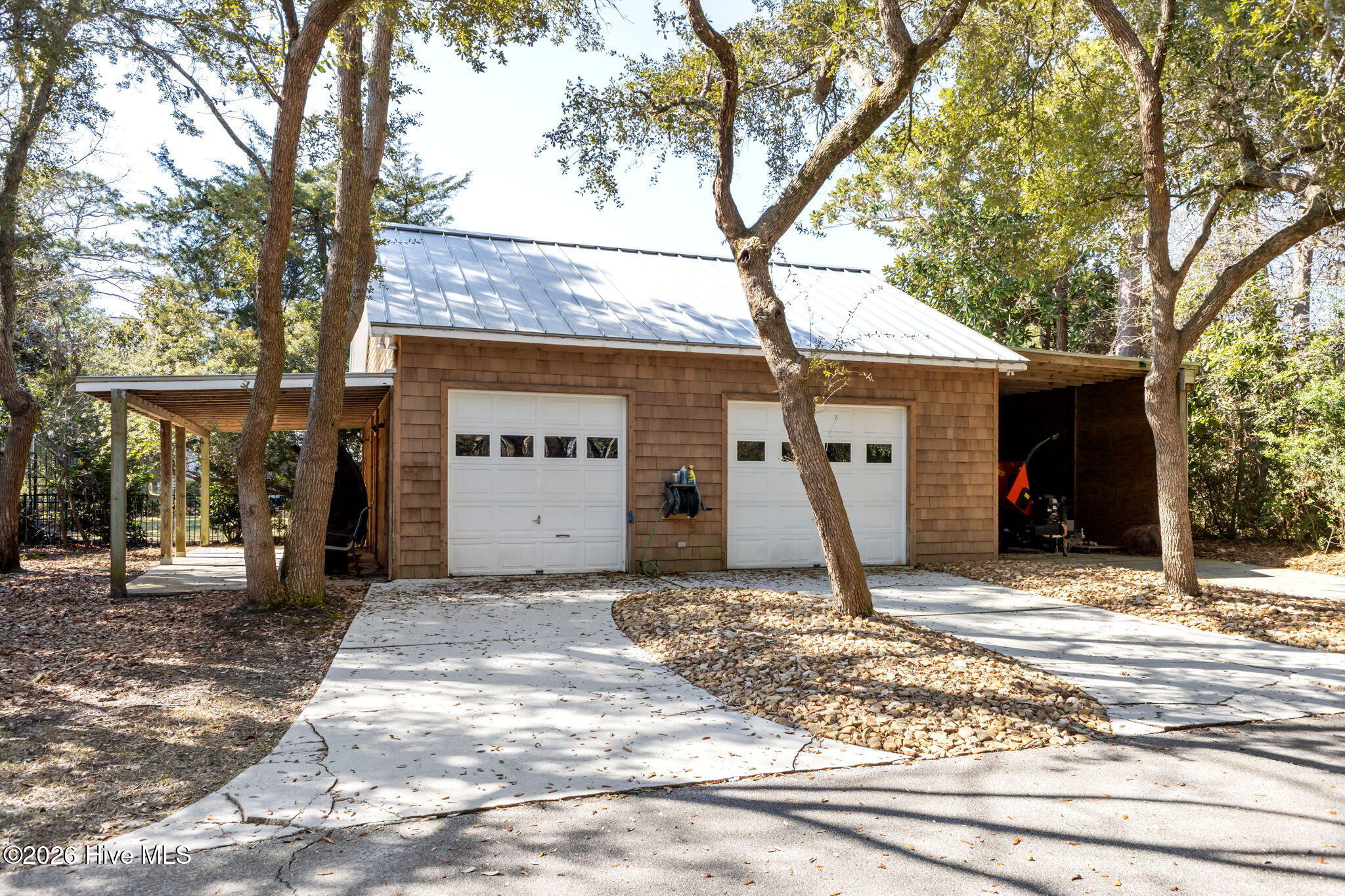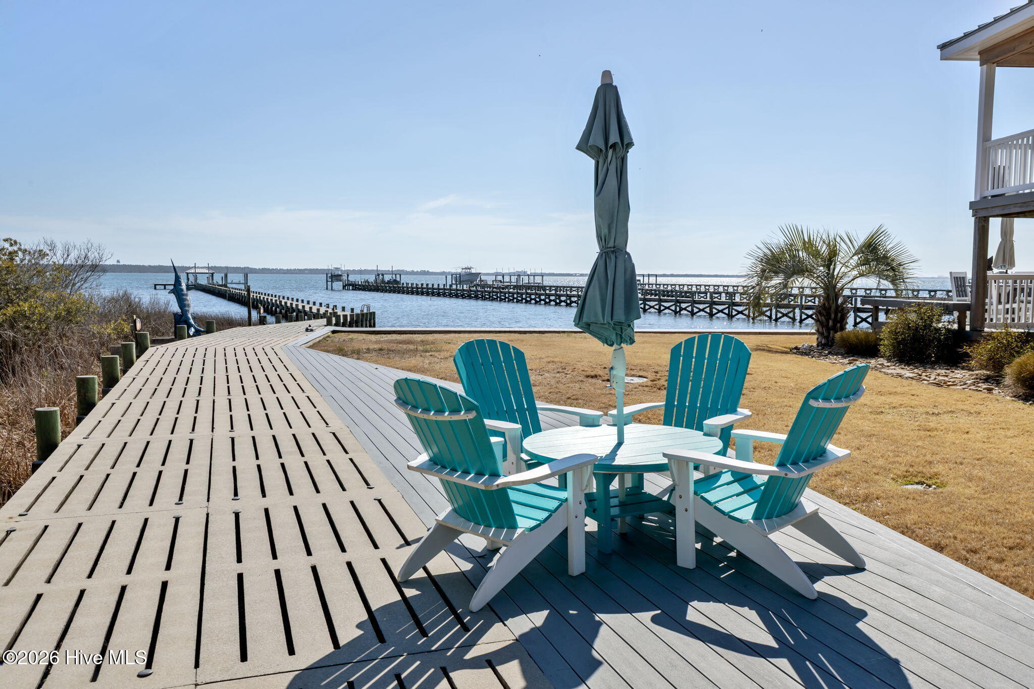 The Dragon House!! This expansive waterfront residence is where luxury, privacy, and coastal beauty converge. Situated on approximately 4 acres along Bogue Sound and the Intracoastal Waterway in Morehead City, NC, this exceptional 5-bedroom, 5-bath residence showcases panoramic views of the ICW in a one-of-a-kind setting behind a private gated entrance. The property's distinctive character is immediately evident, with hand-carved wooden statues thoughtfully placed throughout the grounds. This home showcases open concept living-dining-kitchen and water views from almost every window. Dual Principal suites provide peaceful retreats with plantation shutters and refined finishes. The ground level offers a spacious great room designed for entertaining, complete with a billiard table, wet bar, large screen tv, and sectional couch with queen pull out bed, perfect for hosting guests or creating a relaxed gathering space. Additional features include an elevator, whole-house generator, Kinetico water system, and a security system. The waterfront amenities are exceptional, offering a private dock, boat lift, jet ski lift, hot tub, and private beach access. The outdoor living experience continues with a heated pool, private half bath, playground, and beautifully maintained grounds. Two levels of decks, a patio, and double-decker screened porches with storm shutters create an impressive setting for relaxation or entertainment. A detached double garage with dual carports provides excellent storage for vehicles and water toys. This is a rare opportunity to own a truly one-of-a-kind waterfront retreat that captures the very best of coastal living. Just Add Water to Your Lifestyle!