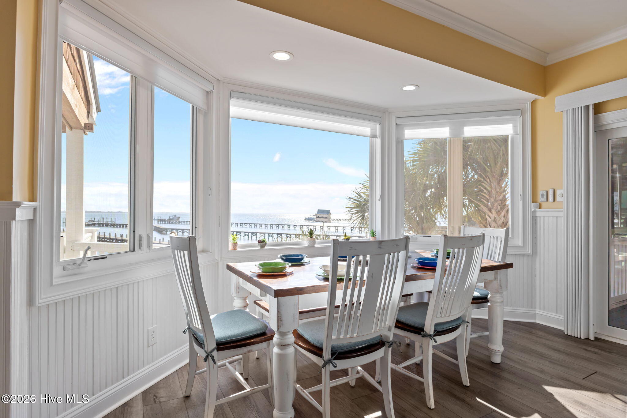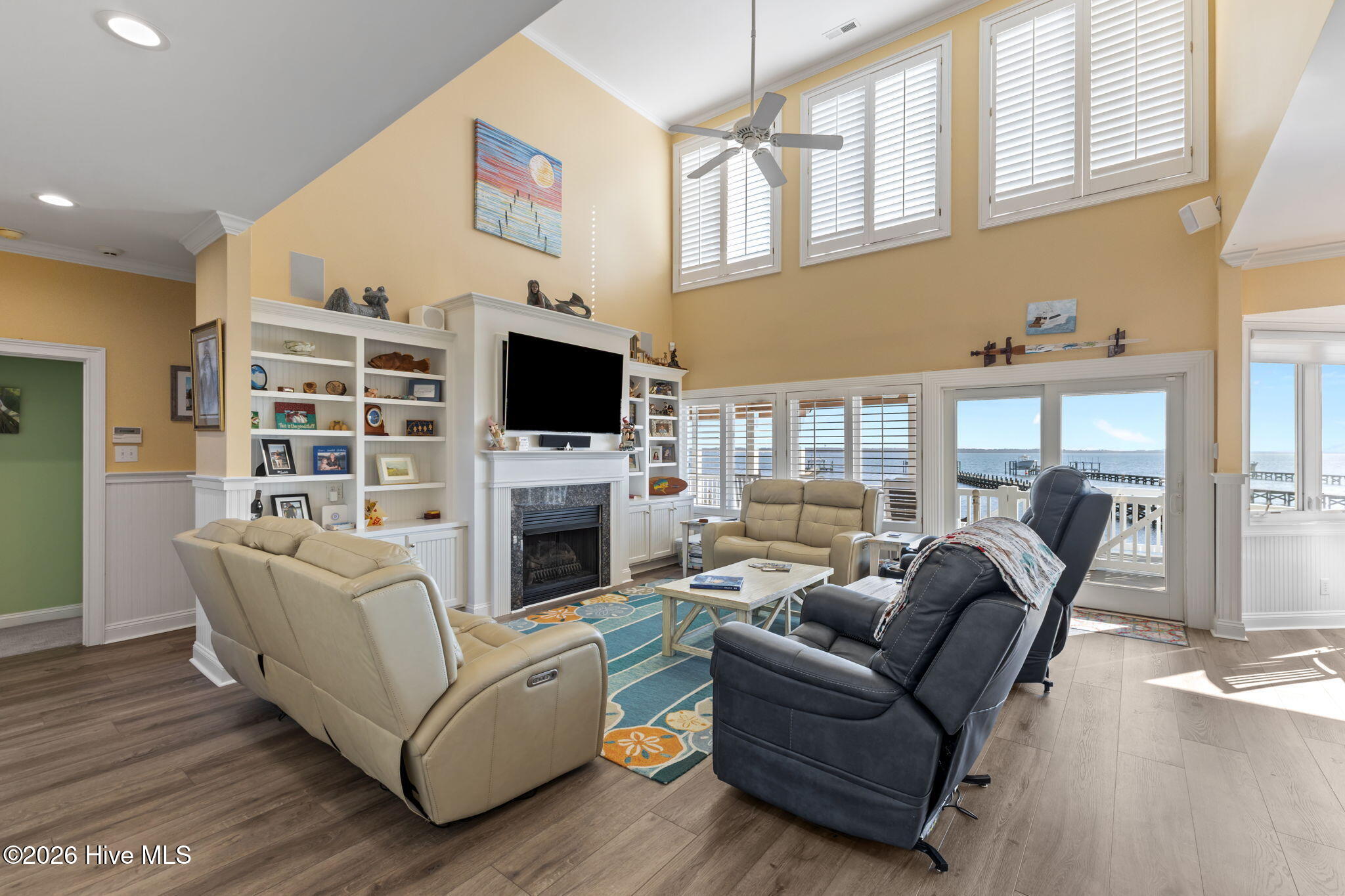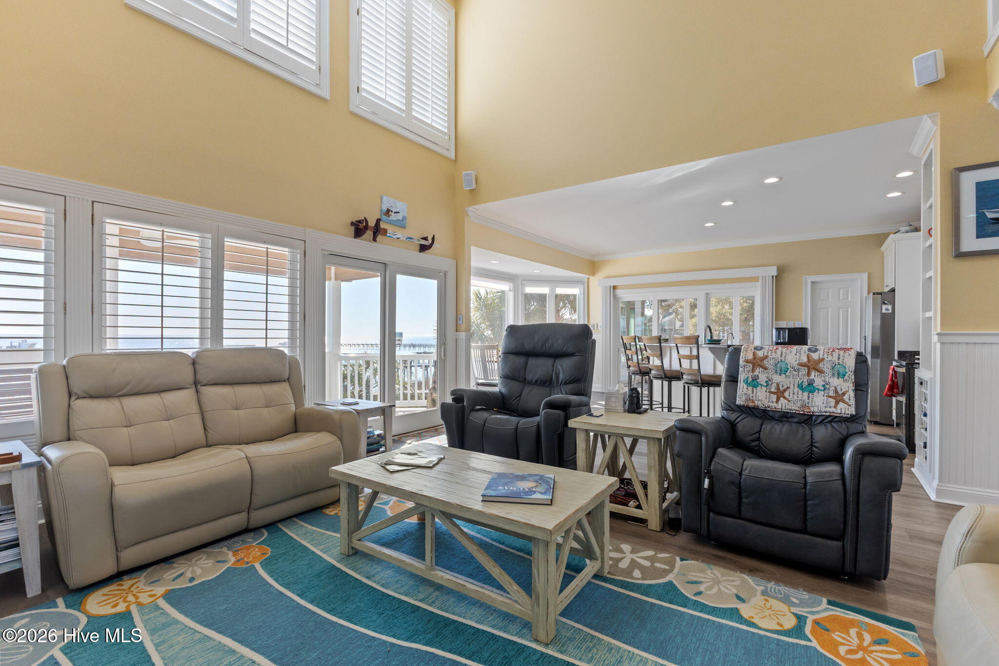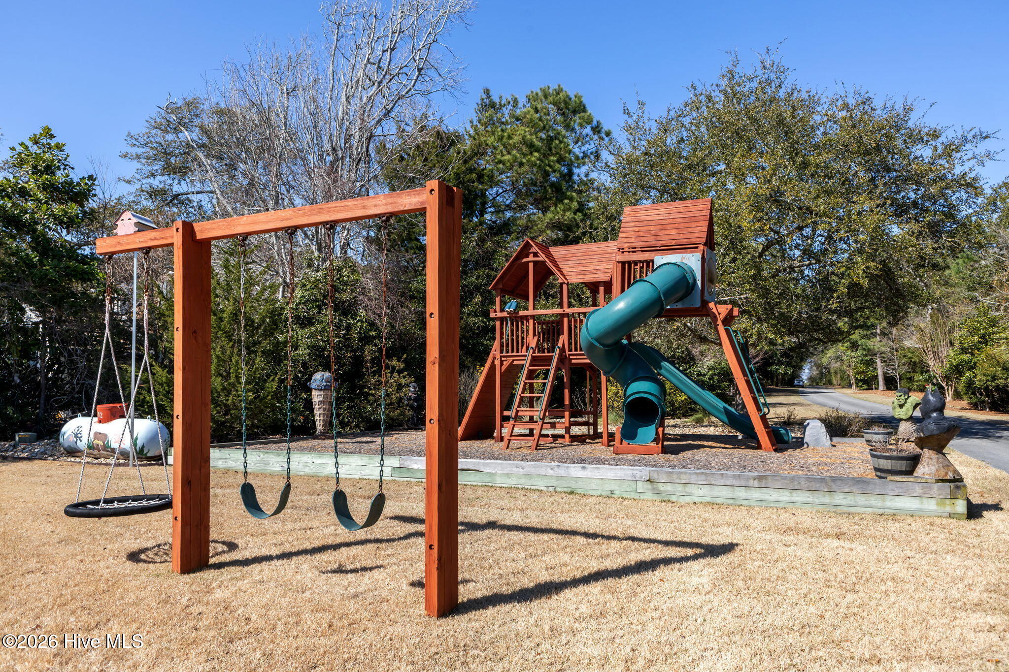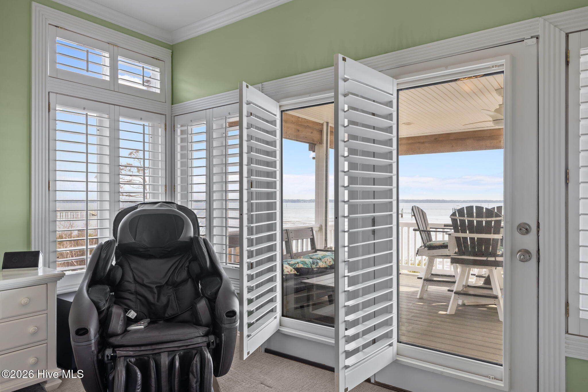 The Dragon House!! This expansive waterfront residence is where luxury, privacy, and coastal beauty converge. Situated on approximately 4 acres along Bogue Sound and the Intracoastal Waterway in Morehead City, NC, this exceptional 5-bedroom, 5-bath residence showcases panoramic views of the ICW in a one-of-a-kind setting behind a private gated entrance. The property's distinctive character is immediately evident, with hand-carved wooden statues thoughtfully placed throughout the grounds. This home showcases open concept living-dining-kitchen and water views from almost every window. Dual Principal suites provide peaceful retreats with plantation shutters and refined finishes. The ground level offers a spacious great room designed for entertaining, complete with a billiard table, wet bar, large screen tv, and sectional couch with queen pull out bed, perfect for hosting guests or creating a relaxed gathering space. Additional features include an elevator, whole-house generator, Kinetico water system, and a security system. The waterfront amenities are exceptional, offering a private dock, boat lift, jet ski lift, hot tub, and private beach access. The outdoor living experience continues with a heated pool, private half bath, playground, and beautifully maintained grounds. Two levels of decks, a patio, and double-decker screened porches with storm shutters create an impressive setting for relaxation or entertainment. A detached double garage with dual carports provides excellent storage for vehicles and water toys. This is a rare opportunity to own a truly one-of-a-kind waterfront retreat that captures the very best of coastal living. Just Add Water to Your Lifestyle!