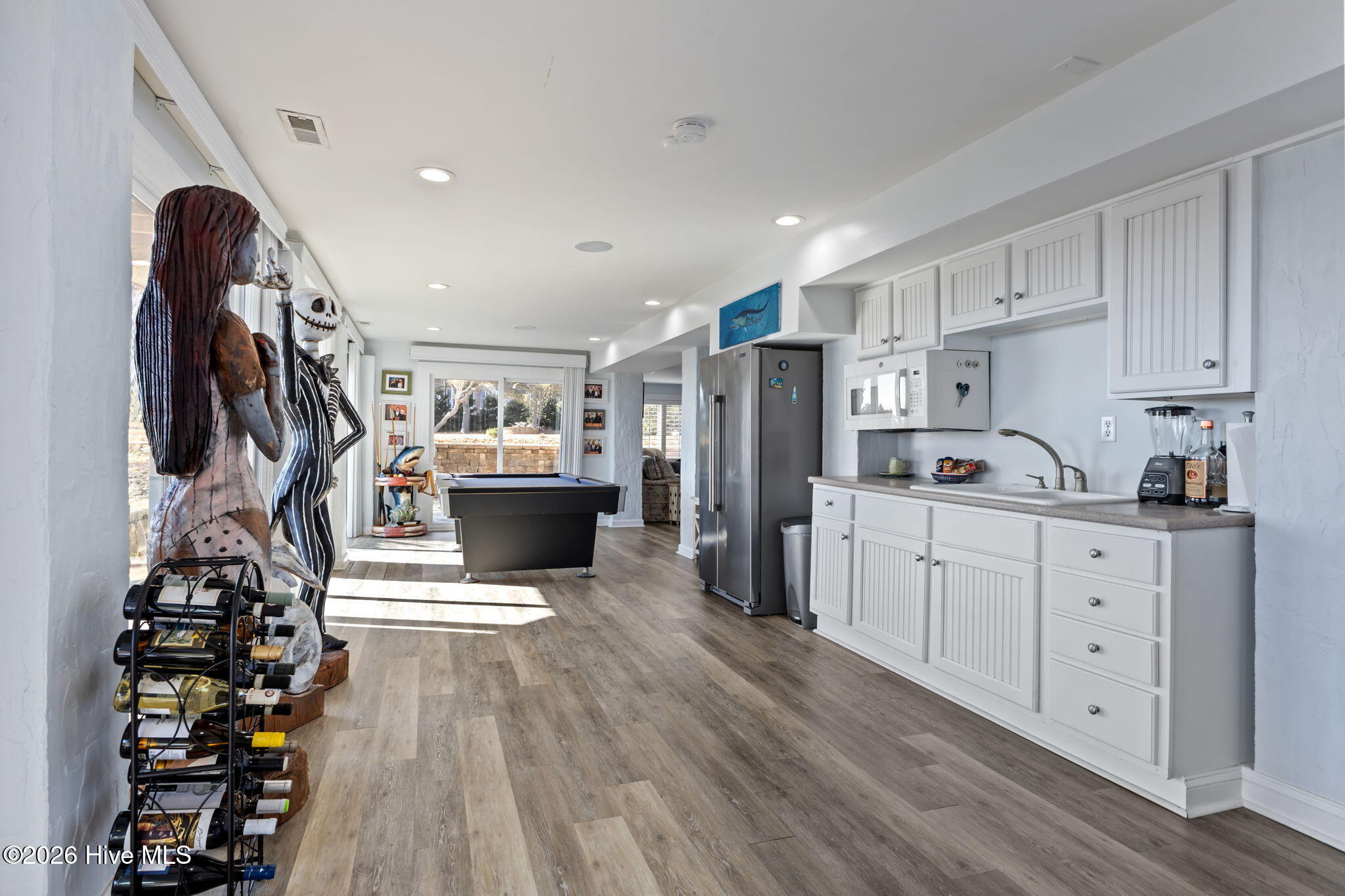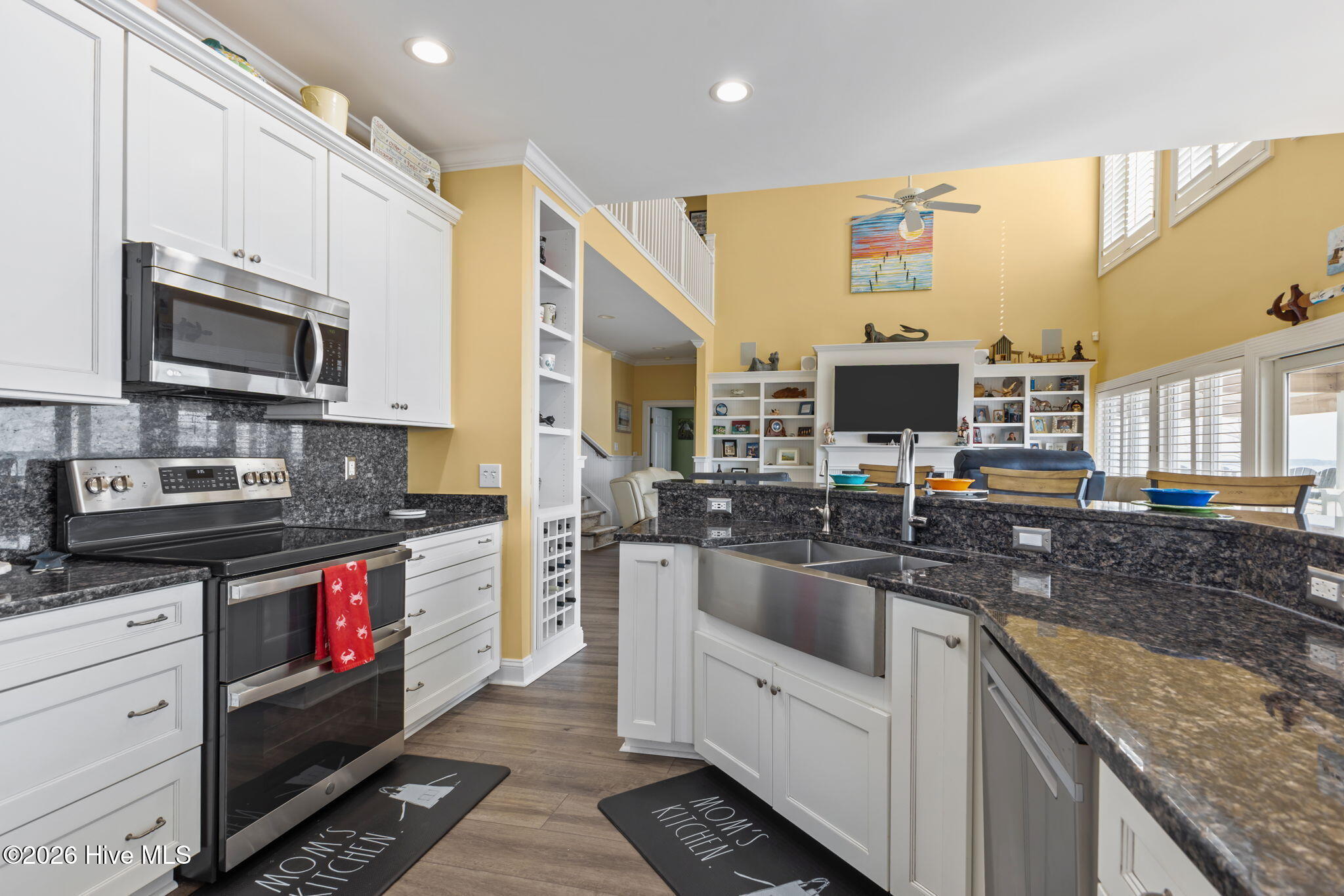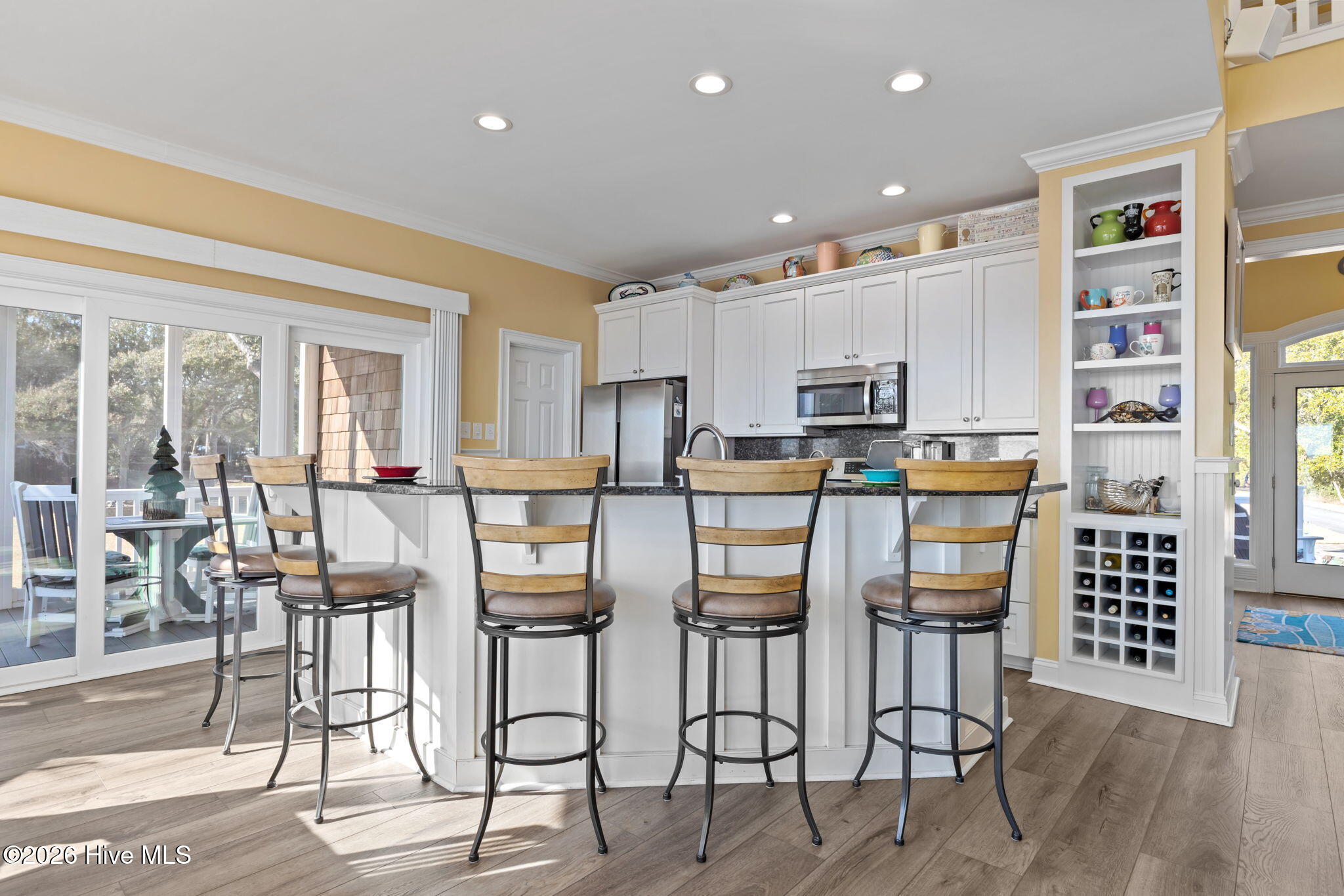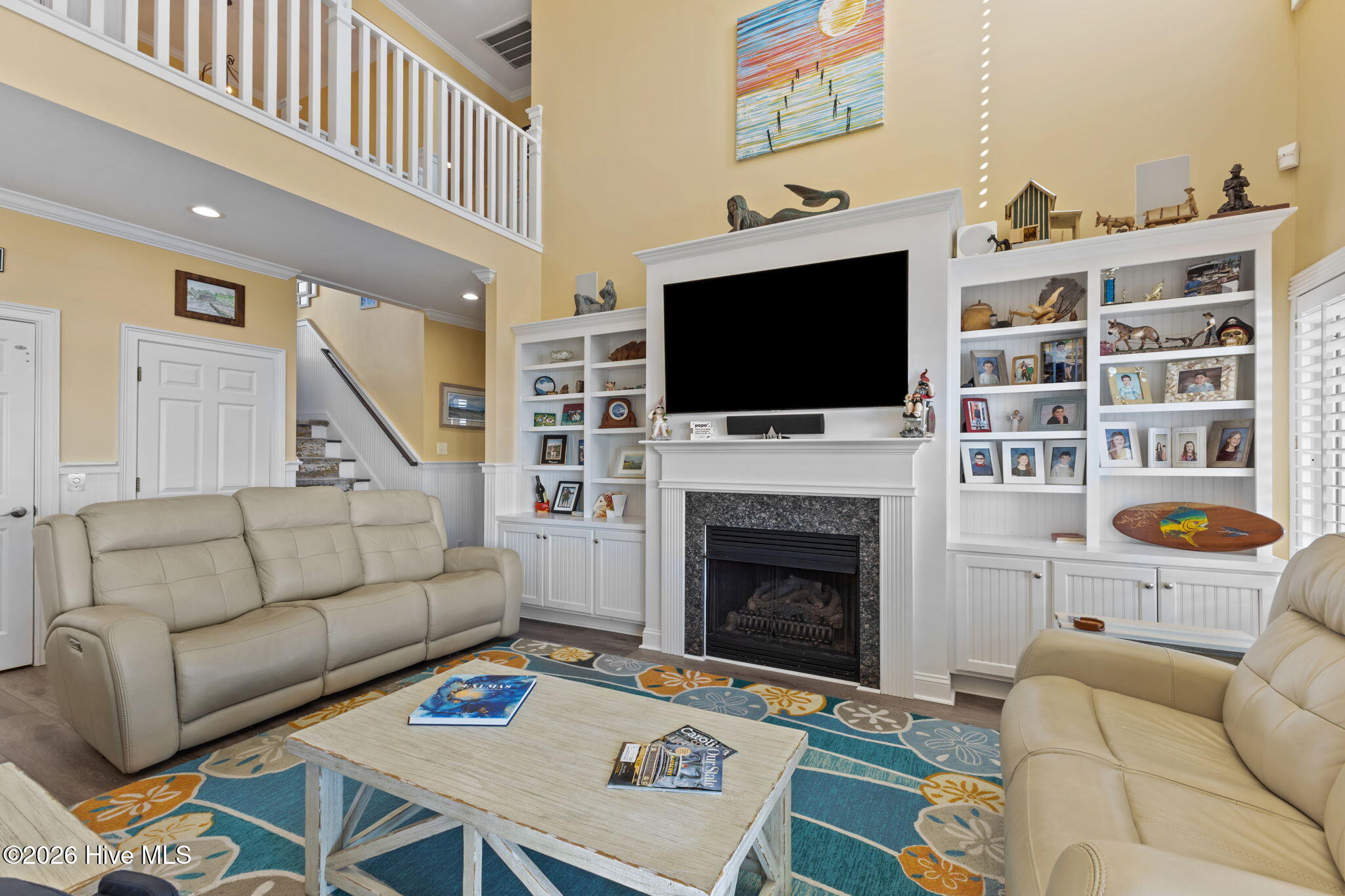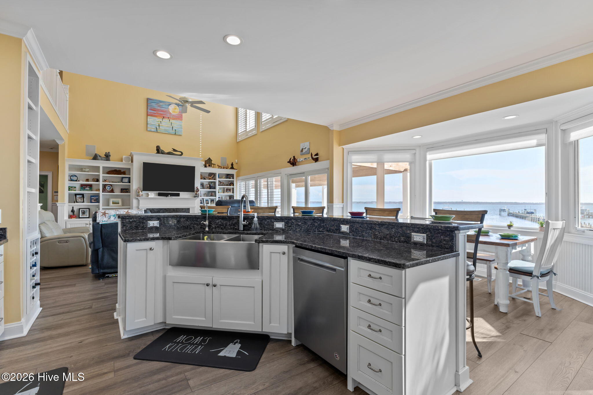 The Dragon House!! This expansive waterfront residence is where luxury, privacy, and coastal beauty converge. Situated on approximately 4 acres along Bogue Sound and the Intracoastal Waterway in Morehead City, NC, this exceptional 5-bedroom, 5-bath residence showcases panoramic views of the ICW in a one-of-a-kind setting behind a private gated entrance. The property's distinctive character is immediately evident, with hand-carved wooden statues thoughtfully placed throughout the grounds. This home showcases open concept living-dining-kitchen and water views from almost every window. Dual Principal suites provide peaceful retreats with plantation shutters and refined finishes. The ground level offers a spacious great room designed for entertaining, complete with a billiard table, wet bar, large screen tv, and sectional couch with queen pull out bed, perfect for hosting guests or creating a relaxed gathering space. Additional features include an elevator, whole-house generator, Kinetico water system, and a security system. The waterfront amenities are exceptional, offering a private dock, boat lift, jet ski lift, hot tub, and private beach access. The outdoor living experience continues with a heated pool, private half bath, playground, and beautifully maintained grounds. Two levels of decks, a patio, and double-decker screened porches with storm shutters create an impressive setting for relaxation or entertainment. A detached double garage with dual carports provides excellent storage for vehicles and water toys. This is a rare opportunity to own a truly one-of-a-kind waterfront retreat that captures the very best of coastal living. Just Add Water to Your Lifestyle!