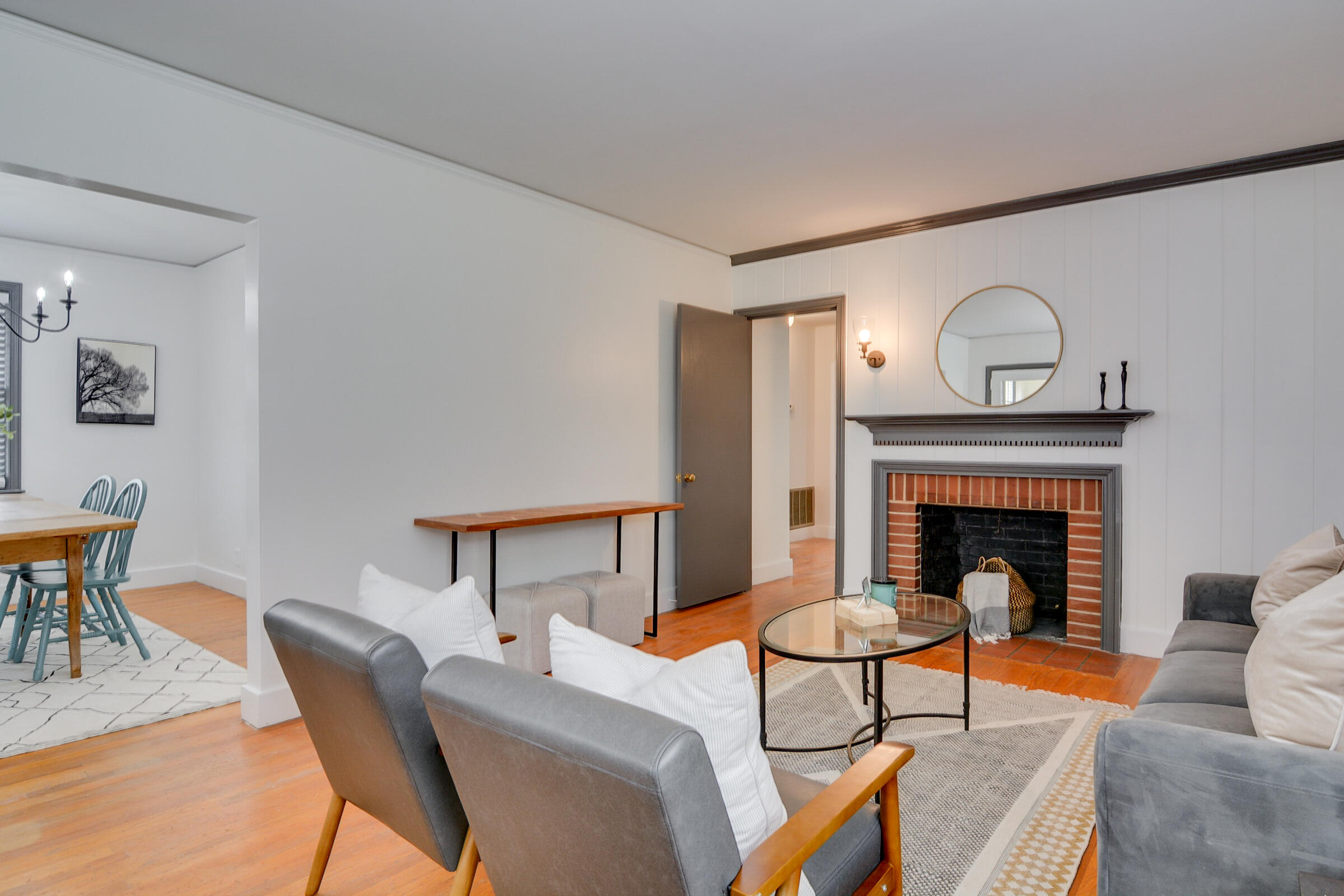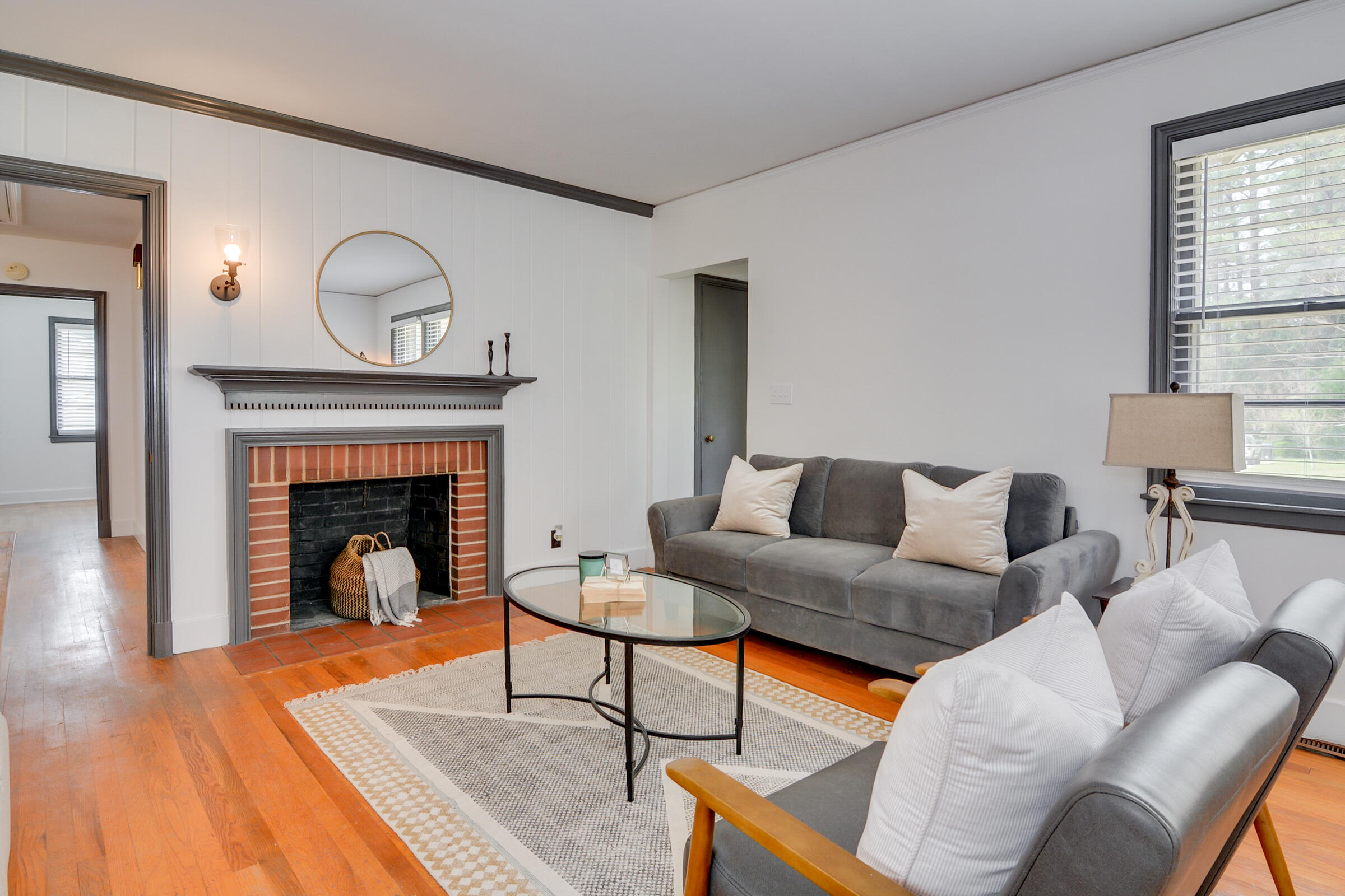 Step into this charming Vineland home where classic charm meets contemporary comfort. This inviting home features freshly painted interiors, warm hardwood floors throughout, and a bright, cheerful sunroom perfect for relaxing or entertaining. The kitchen is updated with stylish cabinetry, tile flooring, and a cozy dining area, while the bathrooms have been thoughtfully refreshed. Enjoy the light-filled living spaces with a classic fireplace, elegant fixtures, and plenty of natural light streaming through large windows. Outside, the brick exterior and well-maintained yard provide curb appeal and a welcoming first impression. Conveniently located near the Augusta National Golf Club, this home offers both character and modern updates in a central location. Seller holds a real estate license.