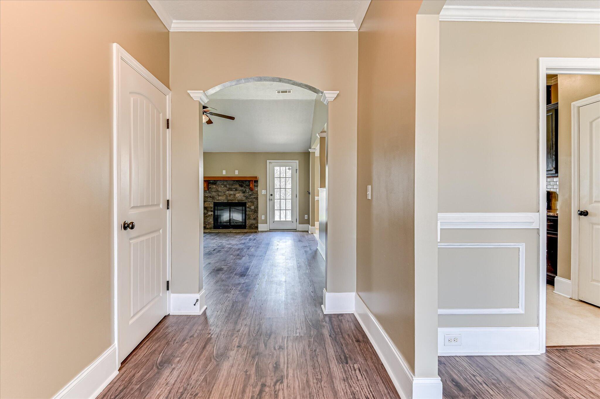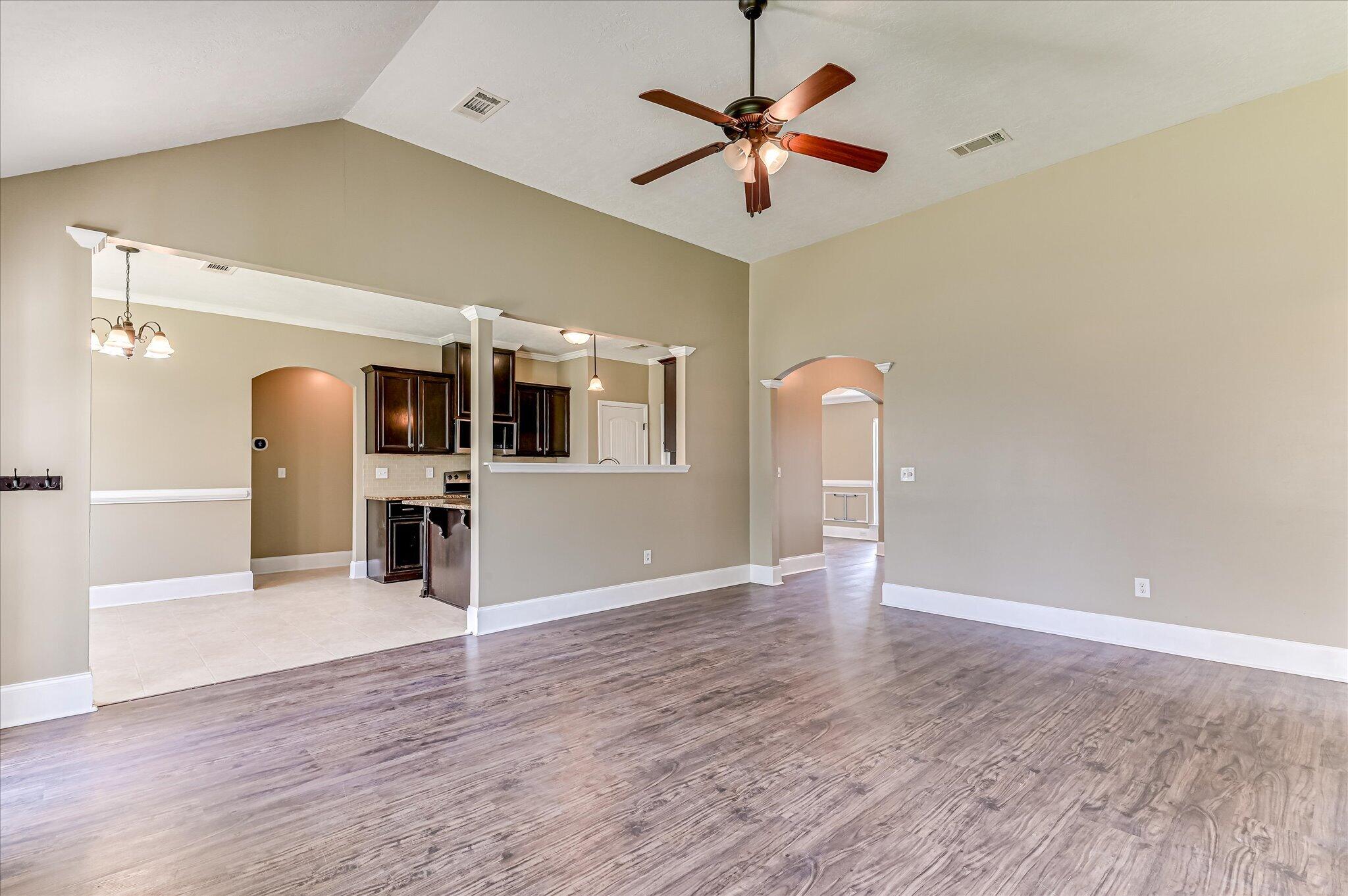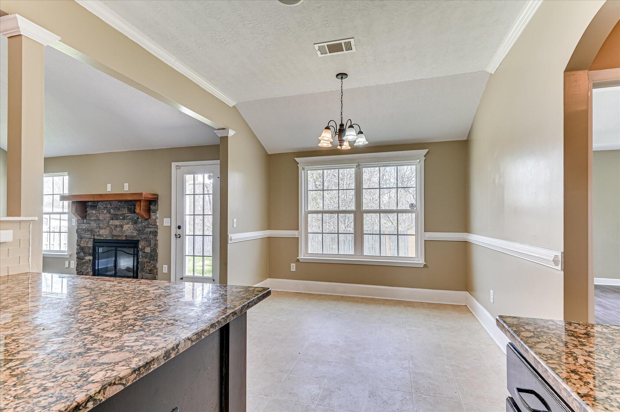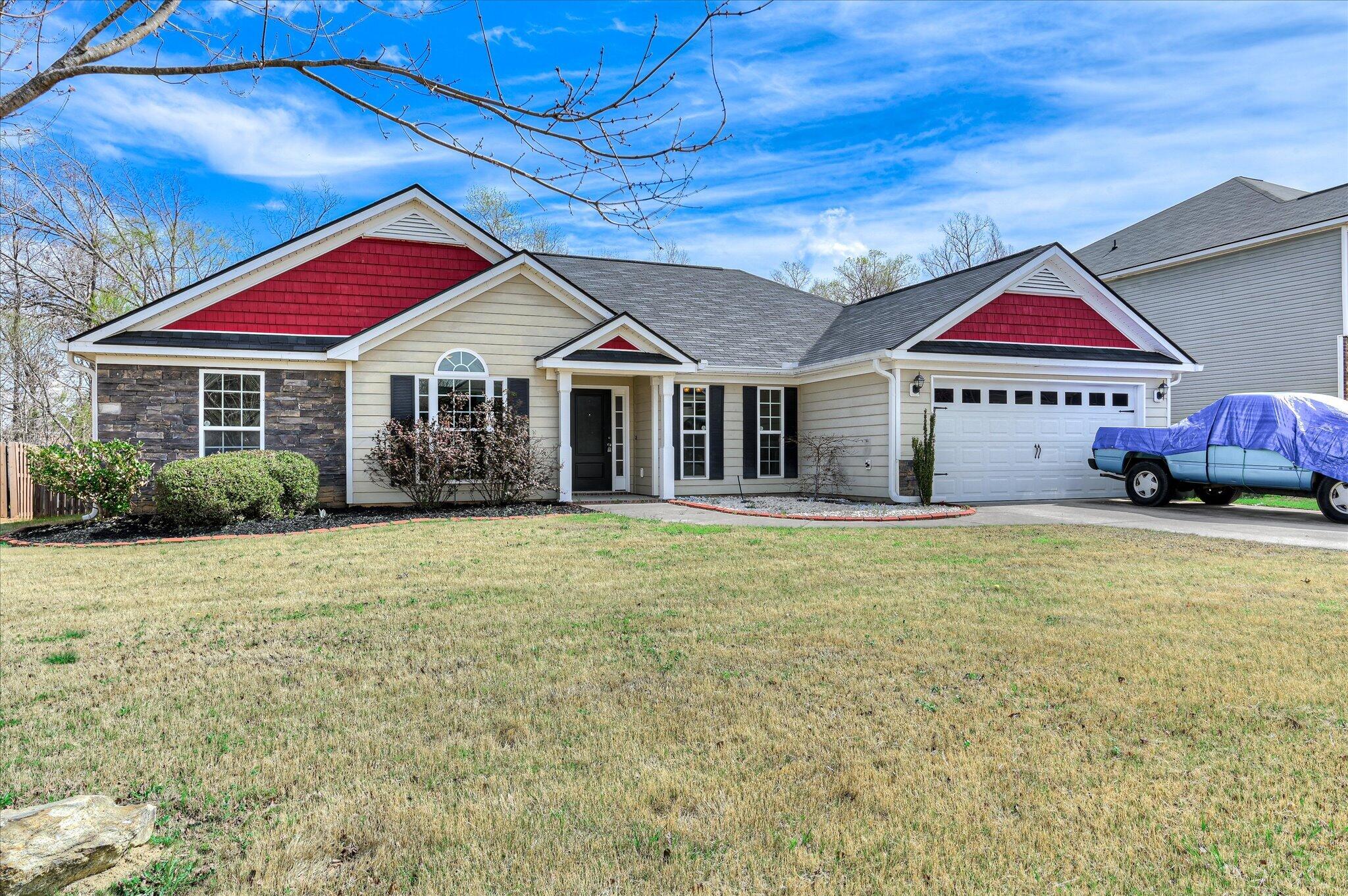 Welcome home to this adorable 4-bedroom, 2.5-bath ranch-style home offering space, comfort, and convenience just minutes from Fort Gordon, parks, shopping, and schools. This move-in ready home has been freshly painted throughout the interior, creating a bright and inviting feel the moment you step inside. The open floor plan features luxury vinyl plank flooring throughout the main living areas and hallways, with durable vinyl flooring in the kitchen and bathrooms. The spacious kitchen is designed for both function and entertaining with granite countertops, a glass tile backsplash, and a large eat-in kitchen area overlooking the expansive great room with cozy fireplace and abundant natural light. A formal dining room offers additional flexibility and could easily serve as a home office, second living area, or flex space. The large owner's suite provides a relaxing retreat with an ensuite bath featuring dual vanities, a garden soaking tub with beautiful tile detail, walk-in shower, private water closet, and a spacious walk-in closet. Step outside to enjoy the large privacy-fenced backyard, perfect for outdoor entertaining, pets, or relaxing evenings. An added bonus: the current loan is VA assumable to qualified military members, creating a rare opportunity for qualified buyers to potentially assume an existing VA mortgage. Conveniently located in Grovetown, GA near Fort Gordon, schools, parks, and shopping, this charming ranch home offers the perfect combination of comfort, location, and value.