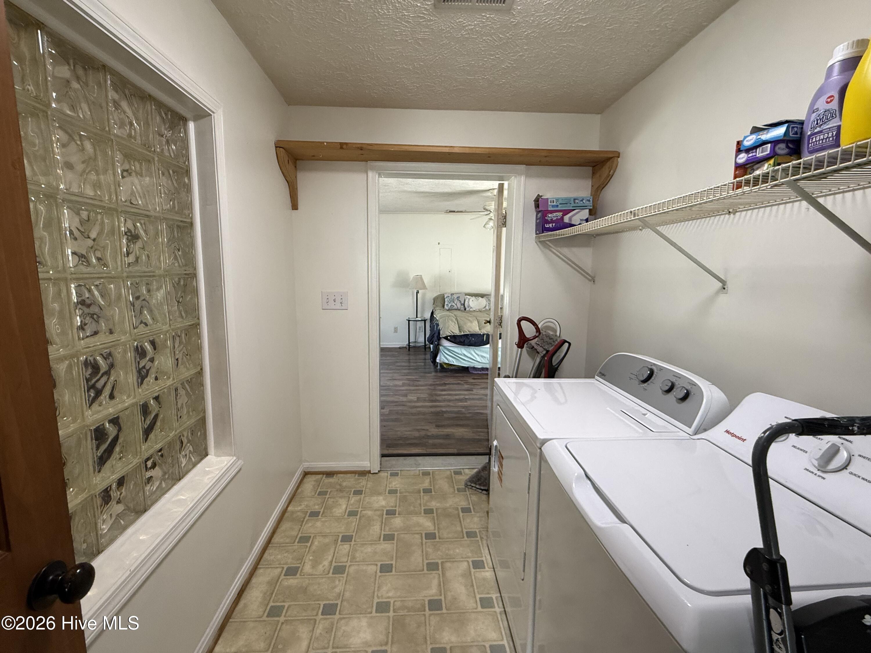 Spacious 3 bedroom, 3 bathroom brick home offering 2,144 sq ft of living space filled with natural light from vaulted ceilings and skylights that create an open, airy feel. Recent updates include new LVP flooring throughouta the livingroom, hallway, entryway, both downstairs bedrooms and bathrooms. Relax year round on the newly screeened porch, perfect for enjoying the peaceful backyard setting. The home offers flexible living with a private mother-in law suite featuring its own refrigerator and hot plate, ideal for guest or extended family. The main home includes appliances including two refrigerators, range, dishwasher and a washer and dryer set that is only 1 year old. Out back you'll find a large 36 ft x 11 ft utility workshop equipped with multiple electrical oulets and overhead lighting making it perfect for projects, hobbies or additional workspace. There is also a smaller storage shed.