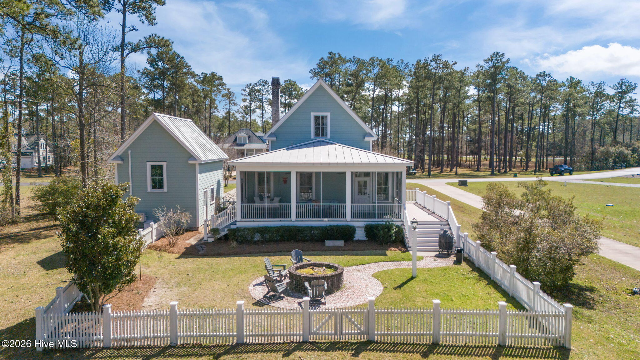 Welcome to this exceptional 3-bedroom, 2 full, 2 half-bath home located in the desirable Oyster Point neighborhood of River Dunes, an award-winning, coastal community just outside the Village of Oriental--North Carolina's Sailing Capital. Situated on a .54-acre homesite in the heart of the marina village, this custom-built home designed by Allison Ramsey Architects offers timeless design and coastal durability. The home features a bright, open-concept layout with elevated ceilings offering an abundance of natural light. Numerous recent upgrades including light fixtures, hardwood flooring installed throughout, Azek decking, full kitchen renovation and detached guest suite over garage. The kitchen is well-appointed with new appliances, gas cooktop, new countertops and cabinetry, Kinetico water system with reverse osmosis spigot. Formal dining area and cozy breakfast nook just off of kitchen along with the guest bathroom. The first floor primary suite provides comfort and convenience with an en-suite bath and two walk-in closets. Upstairs, two generously sized bedrooms each featuring walk-in closets and access to ample storage space. Enjoy outdoor living year-round on the spacious screened-in porch, perfect for dining or relaxing while overlooking a custom brick fire pit in fenced-in back yard. Detached two-bay garage with workshop also generously renovated with HVAC install, Flex/guest suite area and half bath. River Dunes' community embraces the coastal boating lifestyle and offers a number of amenities along with Grace Harbor Club & Marina- The quintessential spot for those who enjoy life on the water. Locals and transients alike enjoy year-round boating conditions of the Neuse River, ICW and surrounding coastal towns and anchorages of the Pamlico Sound.