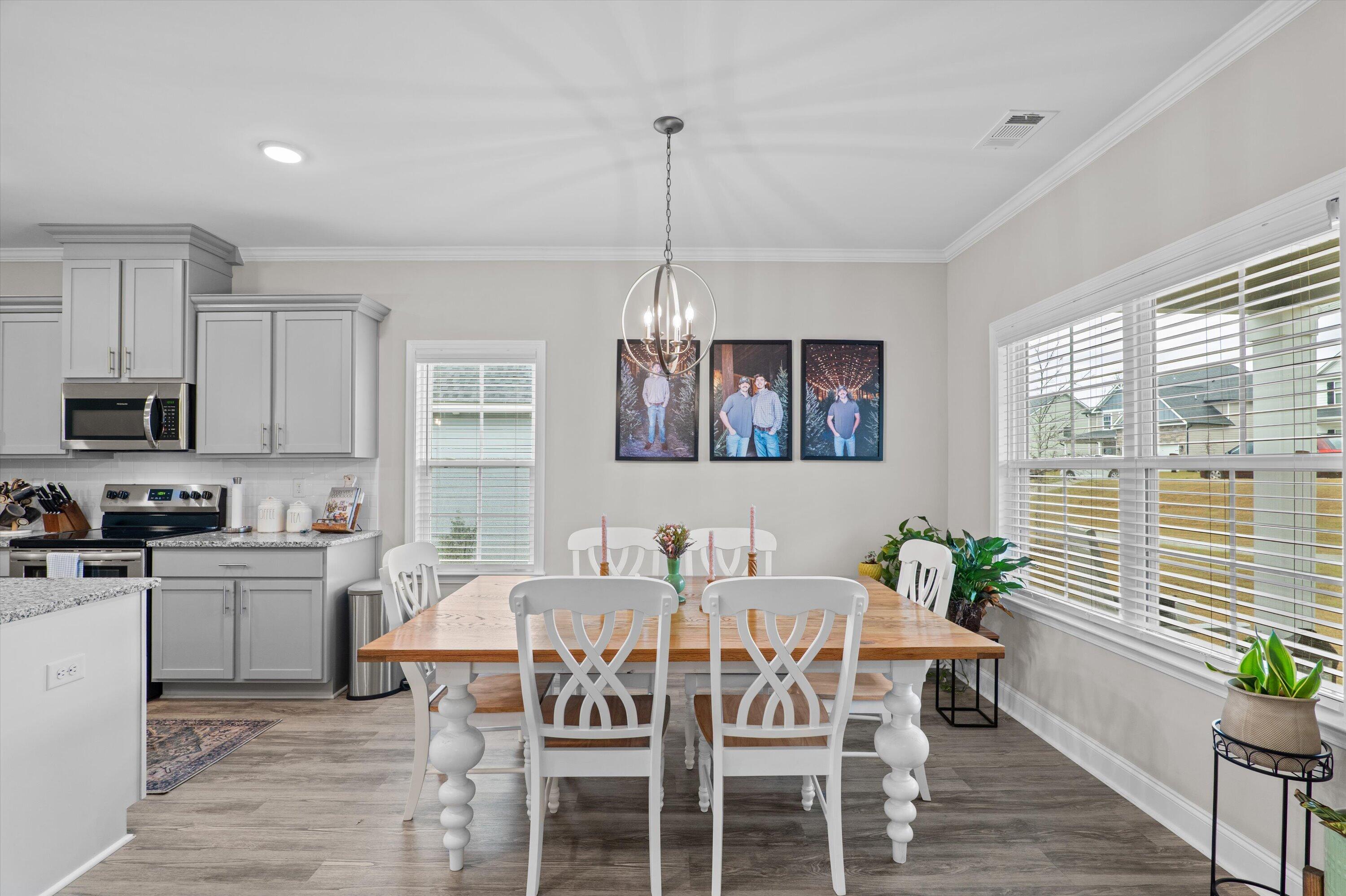 This charming 3-bedroom, 2-bath home offers comfort, style, and convenience just minutes from I-20. The classic white picket fence welcomes you from the alley into a back yard that feels like the American dream, while the front and back porches provide the perfect spots to relax and unwind in your favorite rocking chair. Enjoy the peaceful green space directly across from the home, an ideal place for a picnic or outdoor time, along with neighborhood sidewalks, a playground, and a scenic pond perfect for evening strolls. The fenced backyard offers plenty of room for pets, gardening, or outdoor entertaining. Inside, the open-concept living room features a beautiful shiplap fireplace that creates a warm and inviting focal point. The kitchen is designed for both function and style with a large island with seating, granite countertops, tile backsplash, and stainless steel appliances. Durable LVP flooring runs throughout the main living areas. The private owner's suite includes a walk-in closet and a spa-like bathroom with granite countertops, a tiled shower, and a built-in bench. Two additional spacious bedrooms and a full bath provide comfortable space for family or guests. With its thoughtful layout and inviting outdoor spaces, this home is ready to be enjoyed for years to come.
