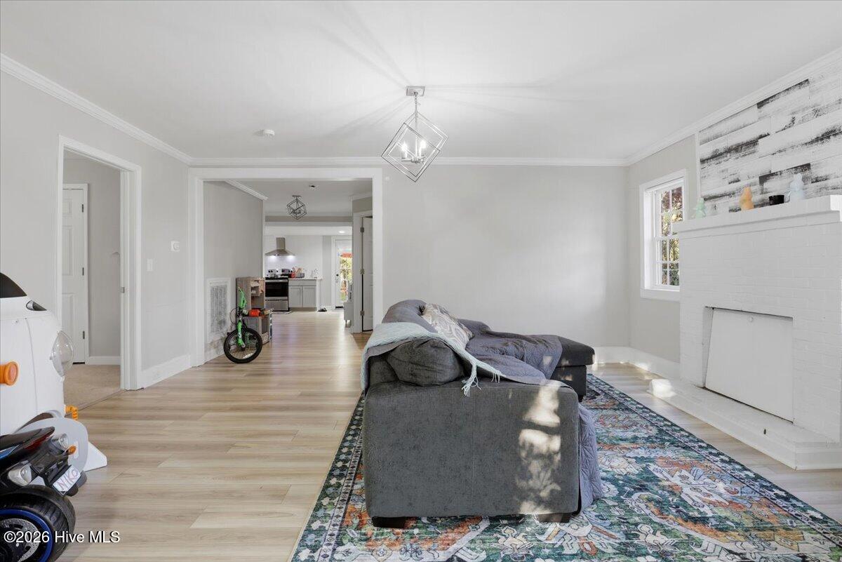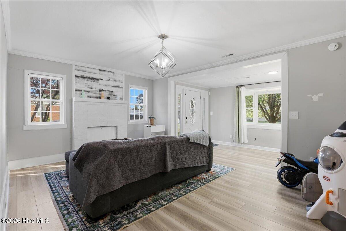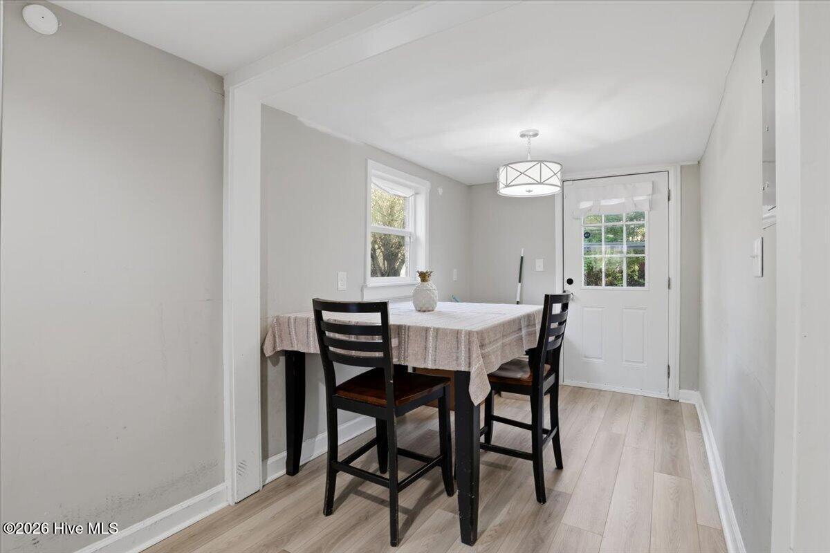 Charming 3 BR/2 BA with a Bonus Room; quartz countertops, laminate vinyl tile floors Centrally located near the local hospital, doctors' offices , grocery stores, restaurants, SJAFB, Herman Park, shopping, and downtown Goldsboro. There are two outbuildings (as is) with power in a fully fenced backyard