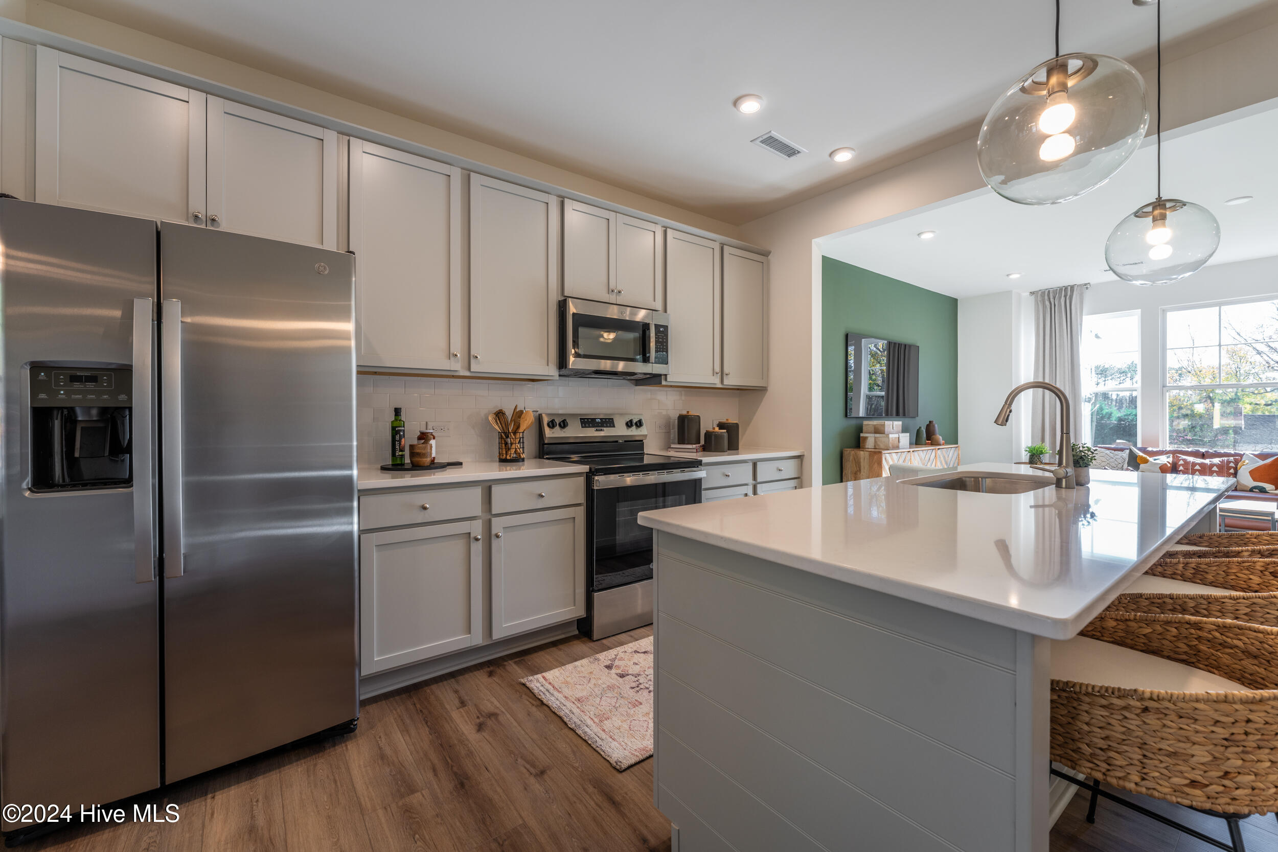 MOVE-IN NOW! SPECIAL INCENTIVE: Receive up to $10,000 towards closing costs (with use of preferred lender). This END UNIT garage townhome, Denville floor plan, offers a seamless blend of luxury and practicality, with beautiful design finishes throughout! Imagine stepping into an open layout where the kitchen is the heart of the home. The spacious family room flows seamlessly into the kitchen which boasts a large center island, granite counters and dedicated pantry space offering great storage. The kitchen opens to the dining area. Picture yourself enjoying a peaceful morning on the covered porch just off the dining area, or retreating to the spacious primary suite upstairs, complete with a large walk-in closet and a private bath with walk-in shower. This home includes two additional bedrooms, a full bath, and a convenient laundry closet. We are excited to bring brand new GARAGE townhomes to Sanford, NC. Residents will enjoy low-maintenance living just minutes from charming downtown Sanford, NC. Sanford is the perfect place to call home, offering an ideal blend of living, working, and leisure. With its convenient location, family-friendly atmosphere, and top employers, Sanford promises a peaceful, small-town experience. Photos are of the decorated model from builder's library and shown as an example only (colors, features and options will vary).