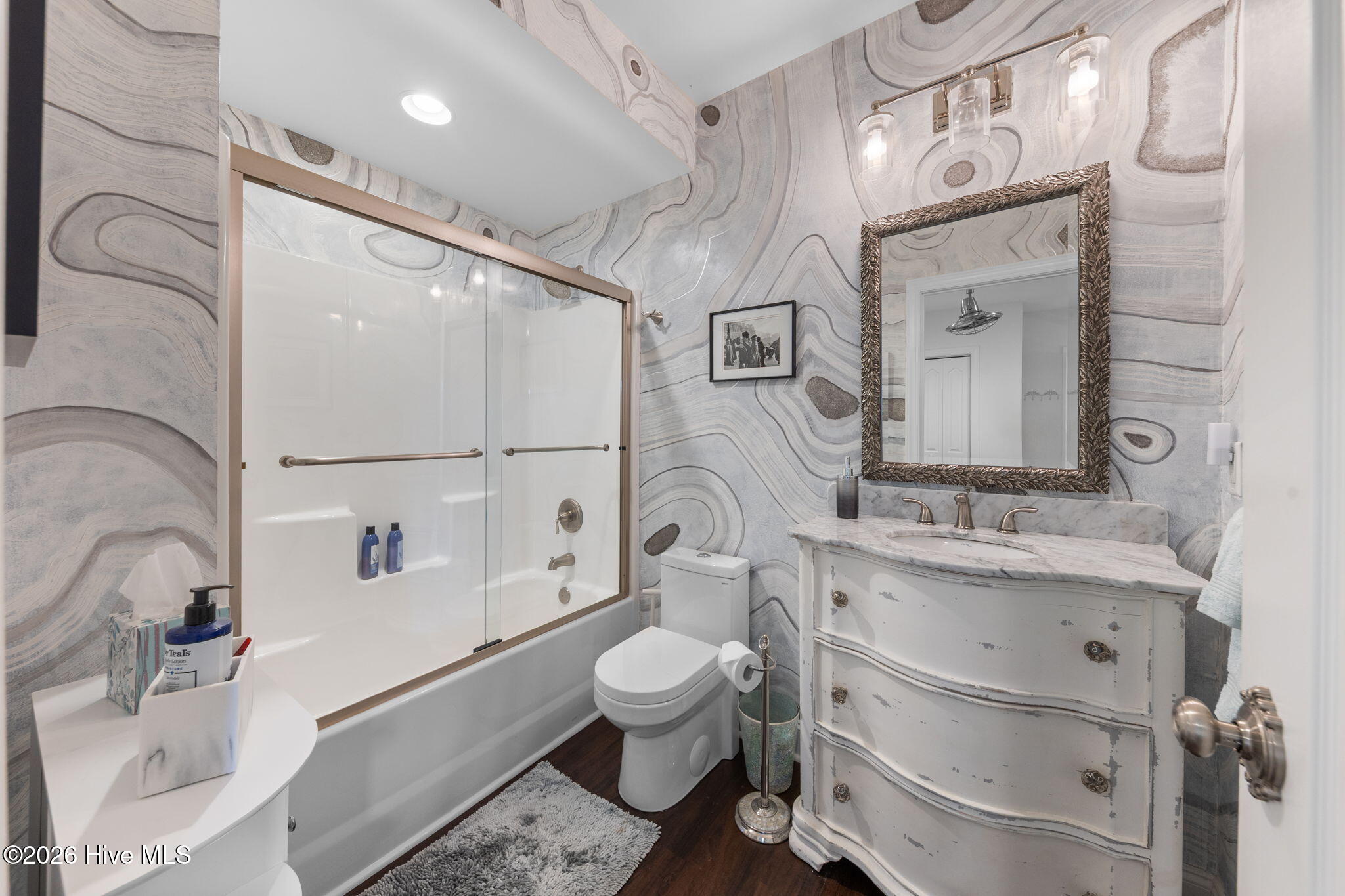 Artistry Meets the Water: A masterpiece reimagined on Lake Auman. Step into a residence where every inch has been curated for the soul. This isn't just a renovation; it's a total transformation. Stripped to the studs and rebuilt with exacting precision, this lakefront home offers the security of new infrastructure--plumbing, electrical, HVAC, duct work and a stunning luxury front door--wrapped in unparalleled craftsmanship. The heart of the home is a chef's kitchen featuring Kitchen Aid appliances and custom cabinetry, flowing seamlessly into the tranquil Carolina Room. Throughout the home, a local artist's touch is felt in almost every room; what appears to be wallpaper, has actually been hand-stenciled by a local artist creating a living gallery experience. Outside, the lifestyle is just as refined. Enjoy the stunning views of the lake while relaxing on the expansive new deck or retreat to the private master suite balcony. The waterfront is fully optimized with a refreshed boat dock, a bulkhead, and a pontoon boat lift with a new motor & steel cables. The lower-level features a walkout family room, two bedrooms and two full baths. This home is the ultimate sanctuary for hosting or quiet reflection. Enjoy all the amenities the community has to offer; private 800 acre lake, marina, beach area, community pool, tennis/ pickle ball courts, basketball court, playgrounds. Many activities & social events for all ages.