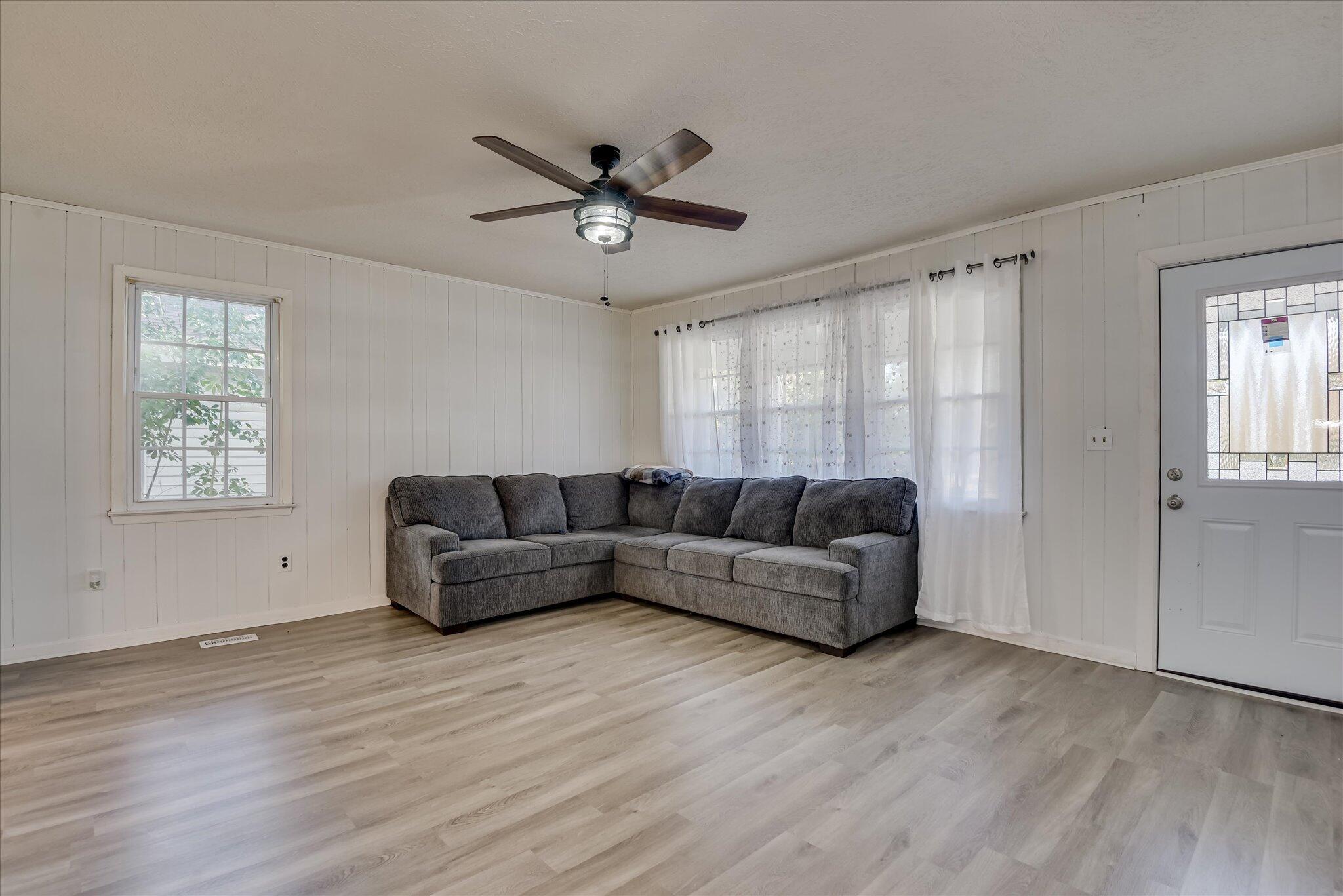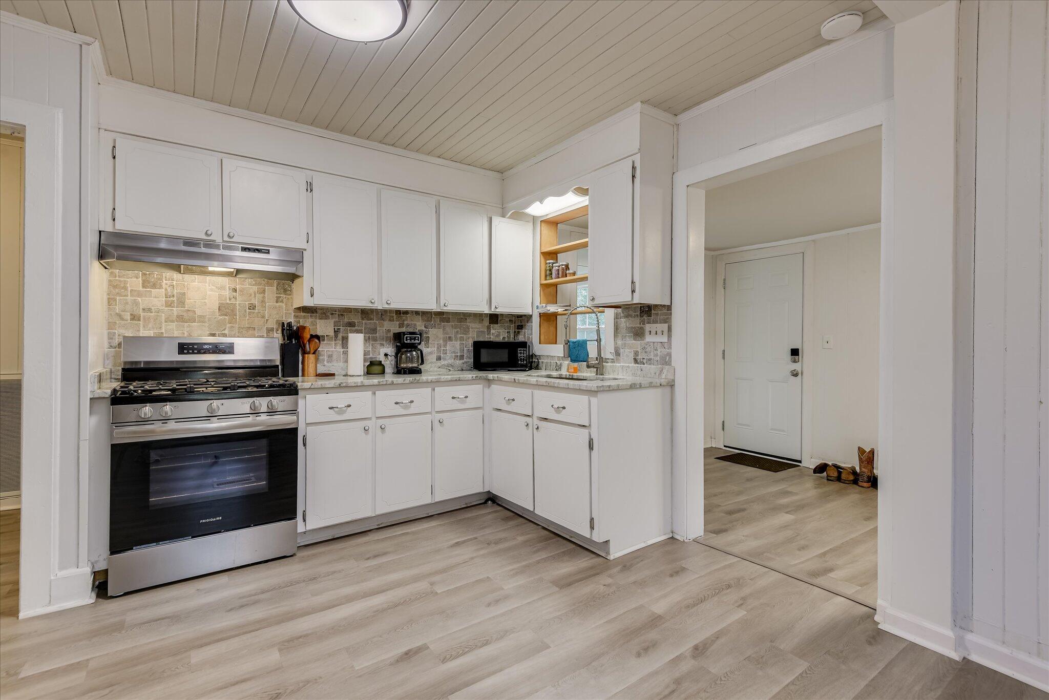 Updated two bedroom one bath cottage just 3 minutes from downtown Aiken, featuring a large front porch, newer roof, windows, HVAC, and flooring ( all replaced in 2024). Crawl space has been insulated and vapor barrier added. Kitchen and bathroom have been updated. Granite countertops, gas stove, tiled backsplash, all stainless appliances. large dining/breakfast area. Large laundry room/mudroom. Additional flex space ideal for office or playroom. Large yard with 2-car carport and storage shed. 8ft privacy fence.