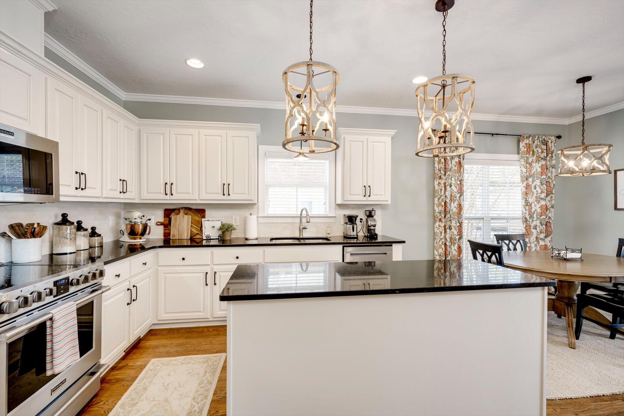 Super nice, updated brick home - owner's suite downstairs, 2 bedrooms plus additional flex/ media room upstairs. 2 full baths upstairs to serve each bedroom. Real hardwood floors in all living area plus owners suite. Granite countertop in kitchen, subway tile backsplash, center island plus long cabinet serving bar, pantry , spacious breakfast room, and keeping room The entire home has been updated, and well maintained. Covered deck grilling area plus nice deck for entertaining. The large family room has vaulted ceiling, fireplace with gas logs, and is open to the gracious entry and formal dining room. Out building remains, privacy fenced back yard. Backs up to green space providing privacy to the backyard. Neighborhood features sidewalks, street lighting and is in walking distance to the North Augusta Greenway. Convenient to schools, shopping, and dining out.