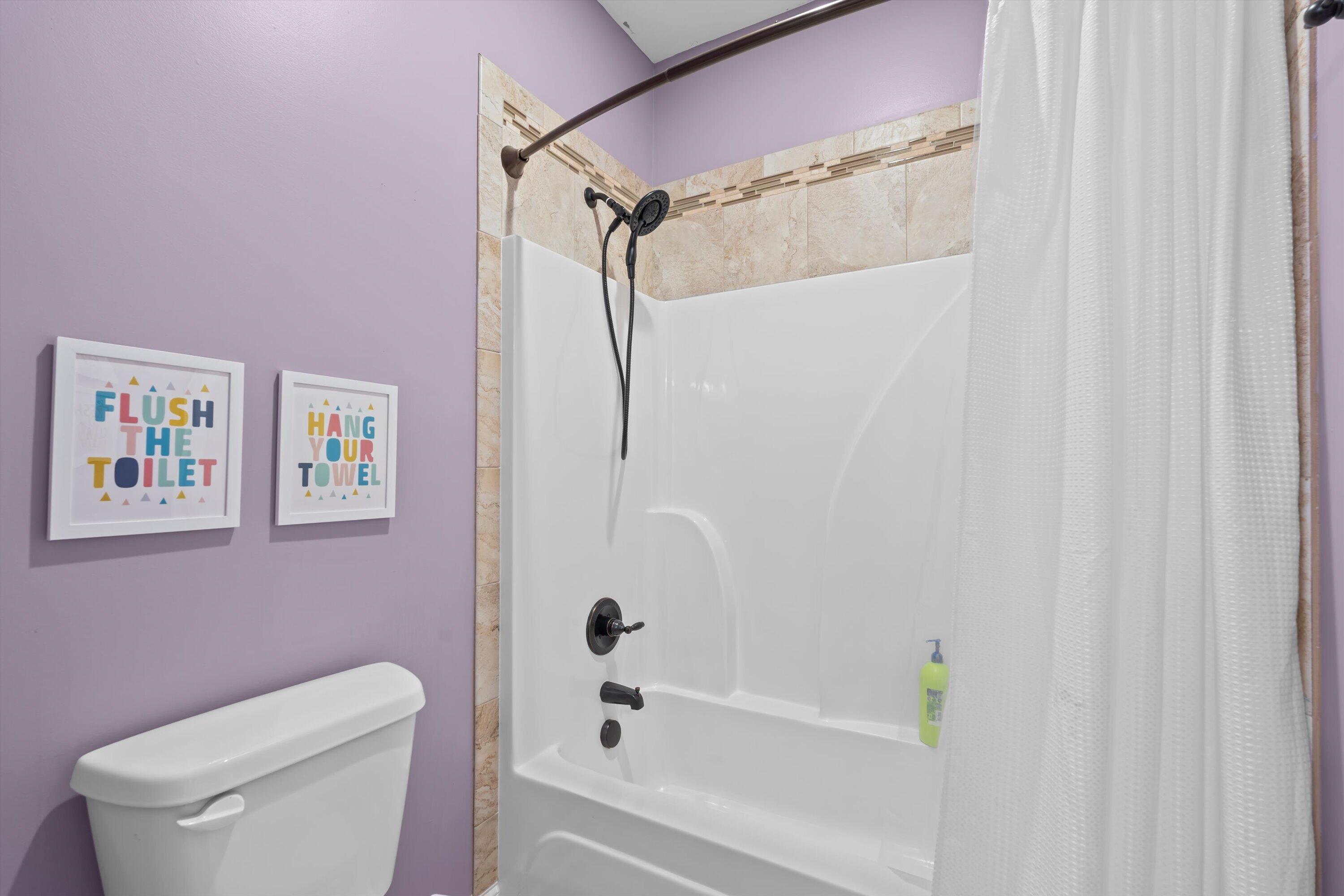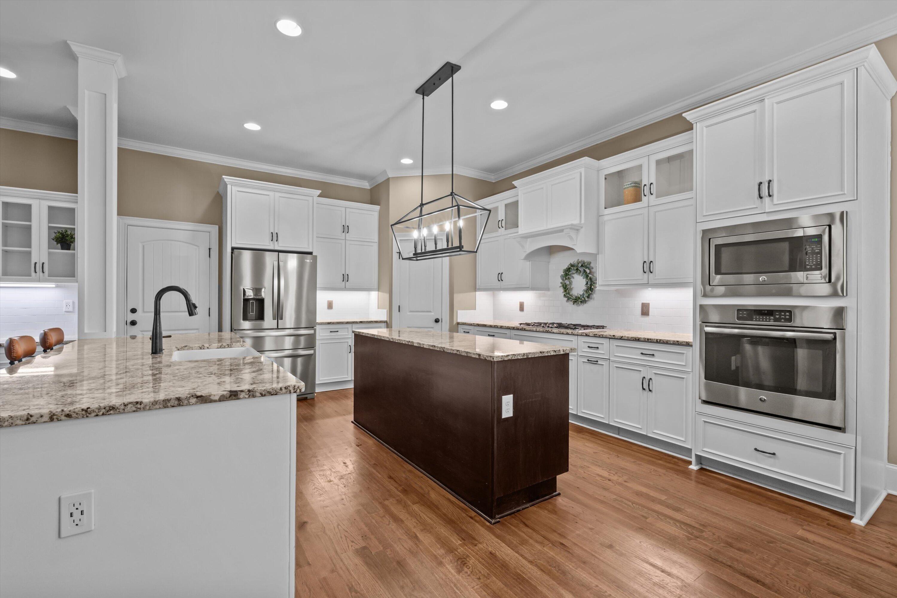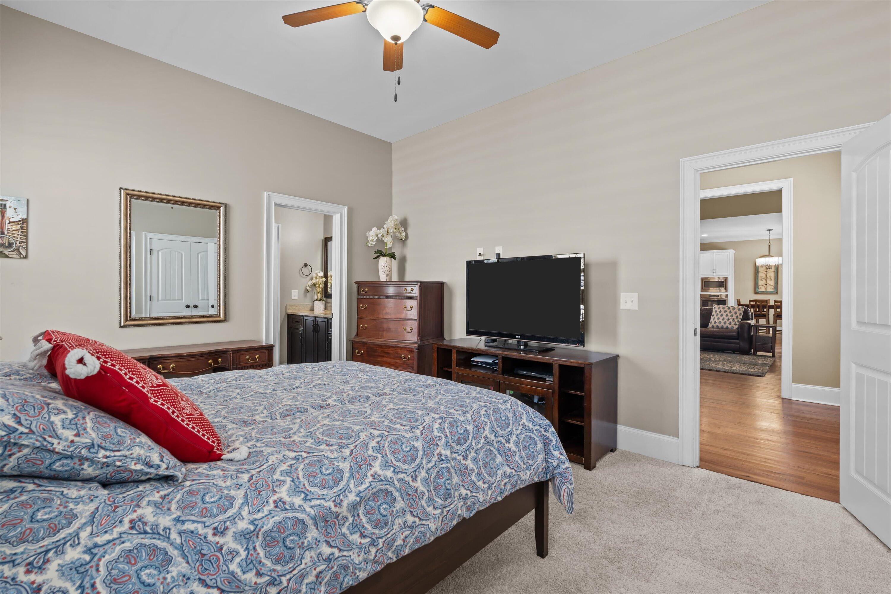Conveniently located in a cul de sac in highly desirable Riverwood Plantation, known for great masters rental potential and convenient living, this spacious 5 bedroom 4.5 bathroom two story home has all of the bells & whistles! As you enter the home, you'll notice hardwood floors and an open layout. The kitchen offers dual granite islands, great for prepping and serving for guest, with a large pantry & gas appliances. Downstairs you will find a mother in law suite connected to an office while the other bedrooms are upstairs with the laundry room. This home has all of the upgrades to include plantation shutters, gas fireplace, nest thermostat, upgraded ceiling fans, Tesla car charger & study area. The backyard backs up to green space with an oversized screen porch, perfect for entertaining.