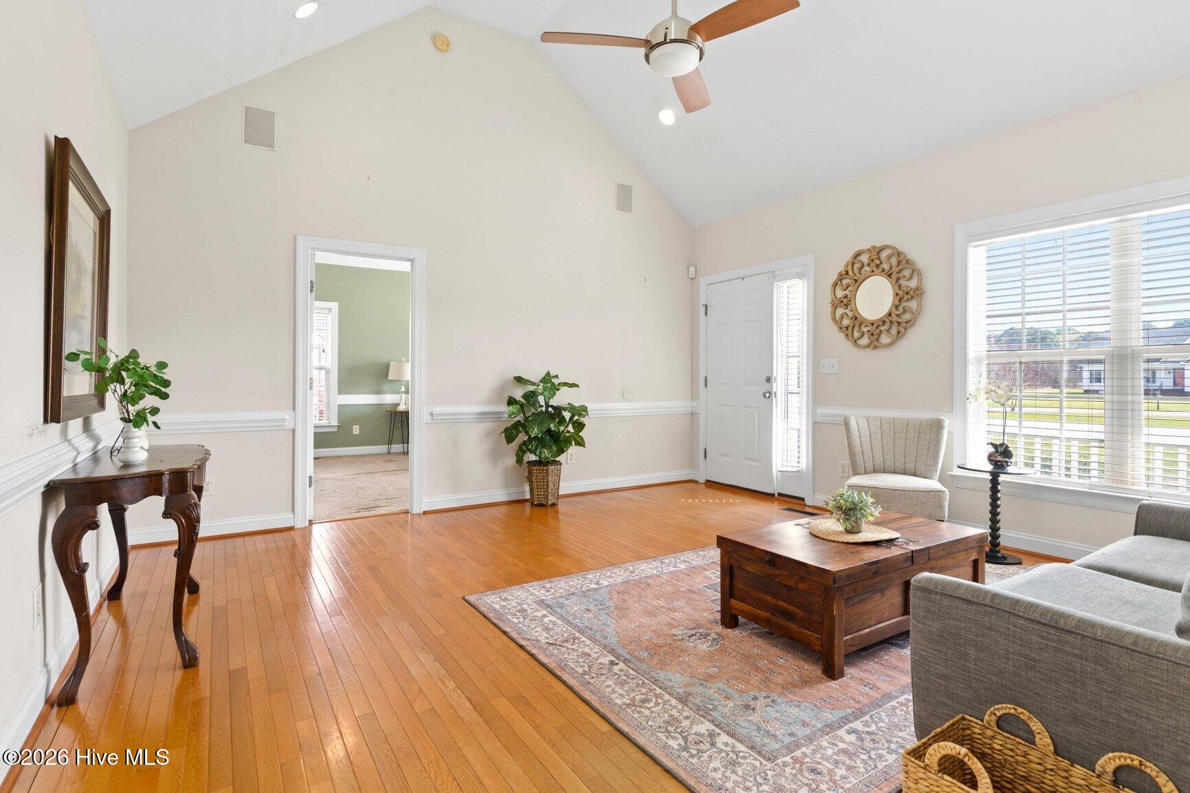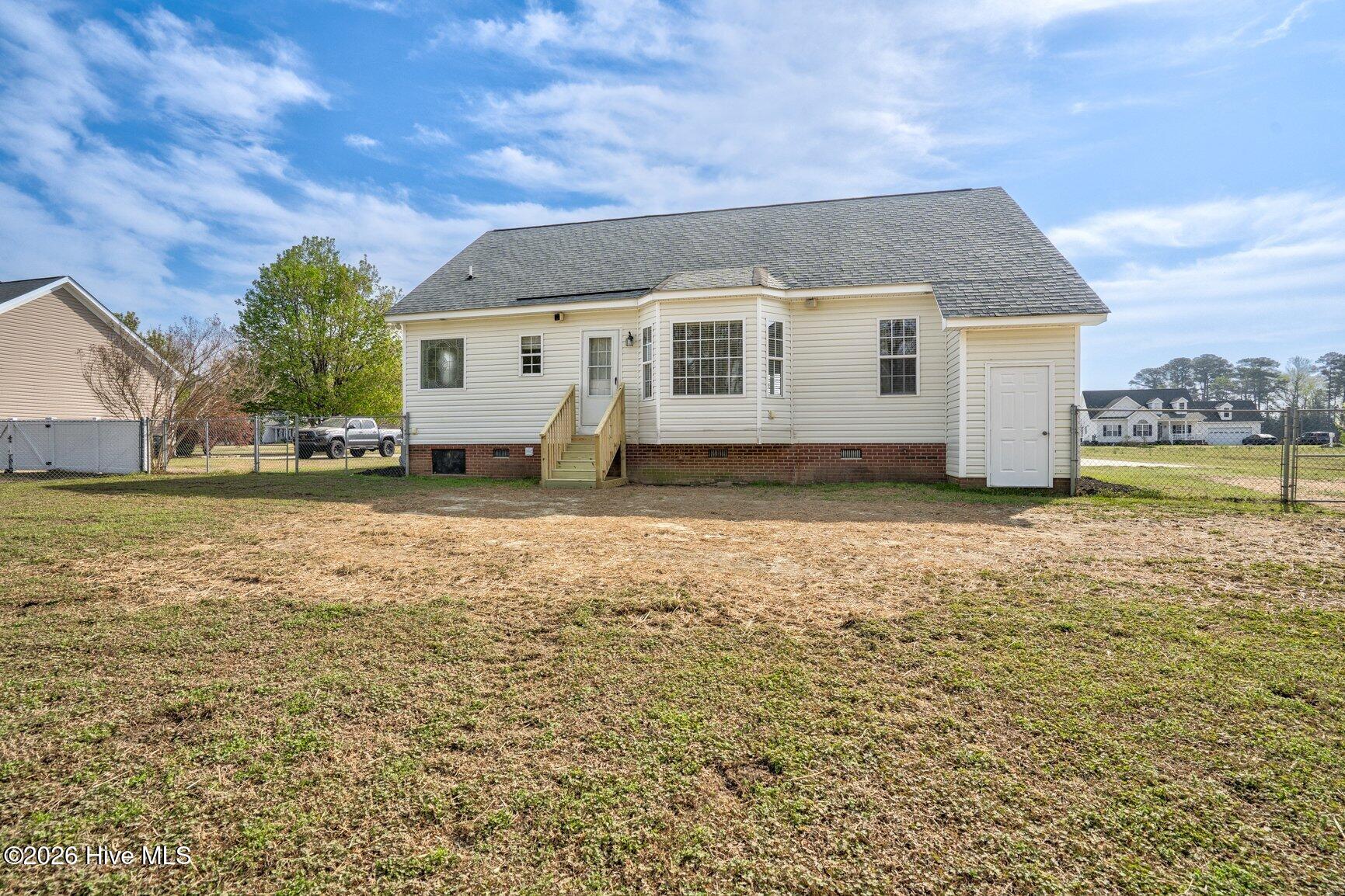 Charming 3-bedroom, 2-bath home offering easy one-level living with a desirable split floor plan! Situated on a spacious 0.69-acre lot, this property provides plenty of room to enjoy both indoors and out--plus NO HOA and NO city taxes. Inside, you'll find beautiful hardwood floors throughout the main living areas and a functional layout ideal for everyday living. The primary suite features vaulted ceilings and a private bath complete with a dual vanity, garden tub, and separate walk-in shower. Secondary bedrooms offer comfortable carpeted flooring. Enjoy relaxing on the large covered front porch, and take advantage of the fenced-in backyard--perfect for pets, play, or entertaining. This home offers a great combination of space, comfort, and convenience--don't miss it!