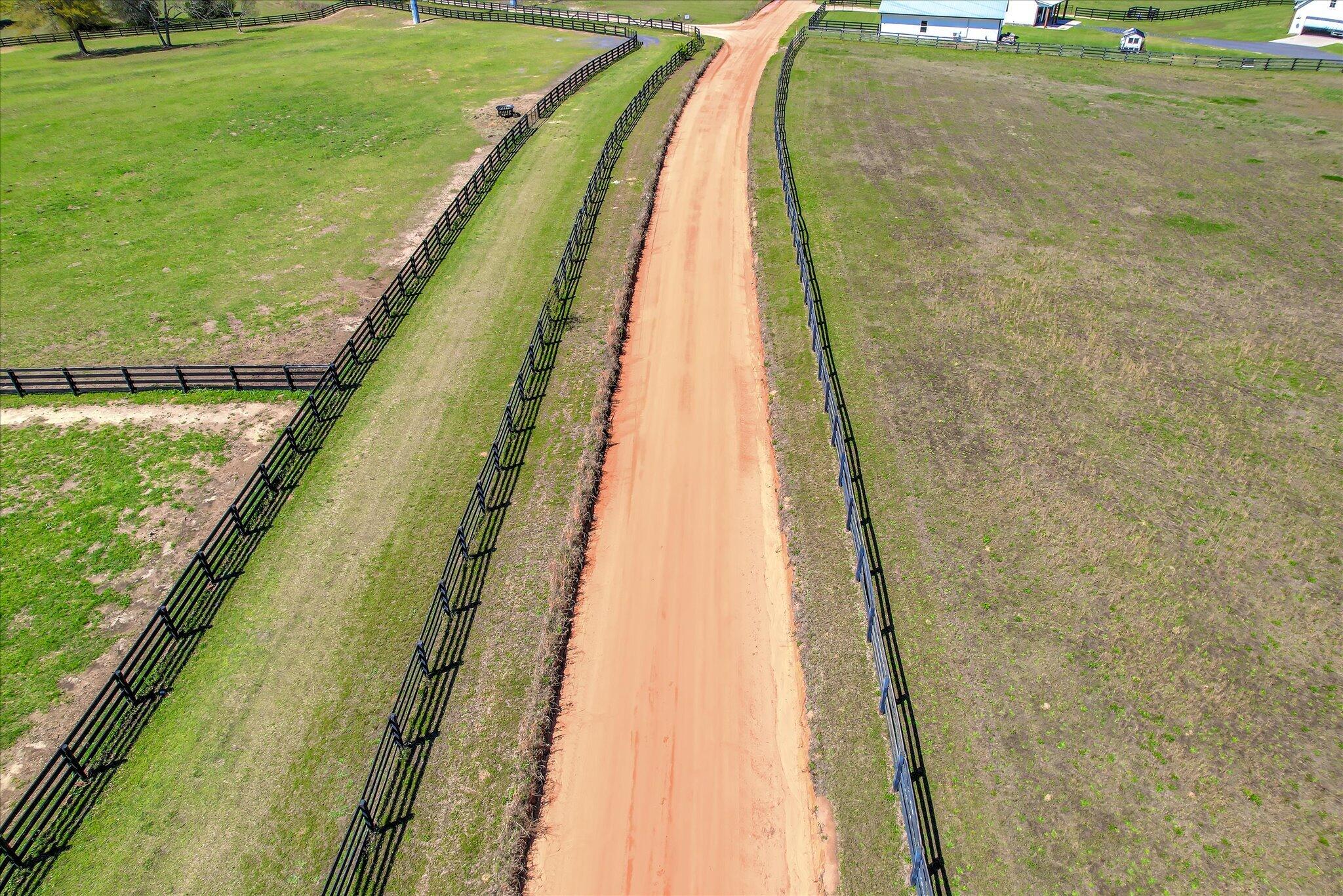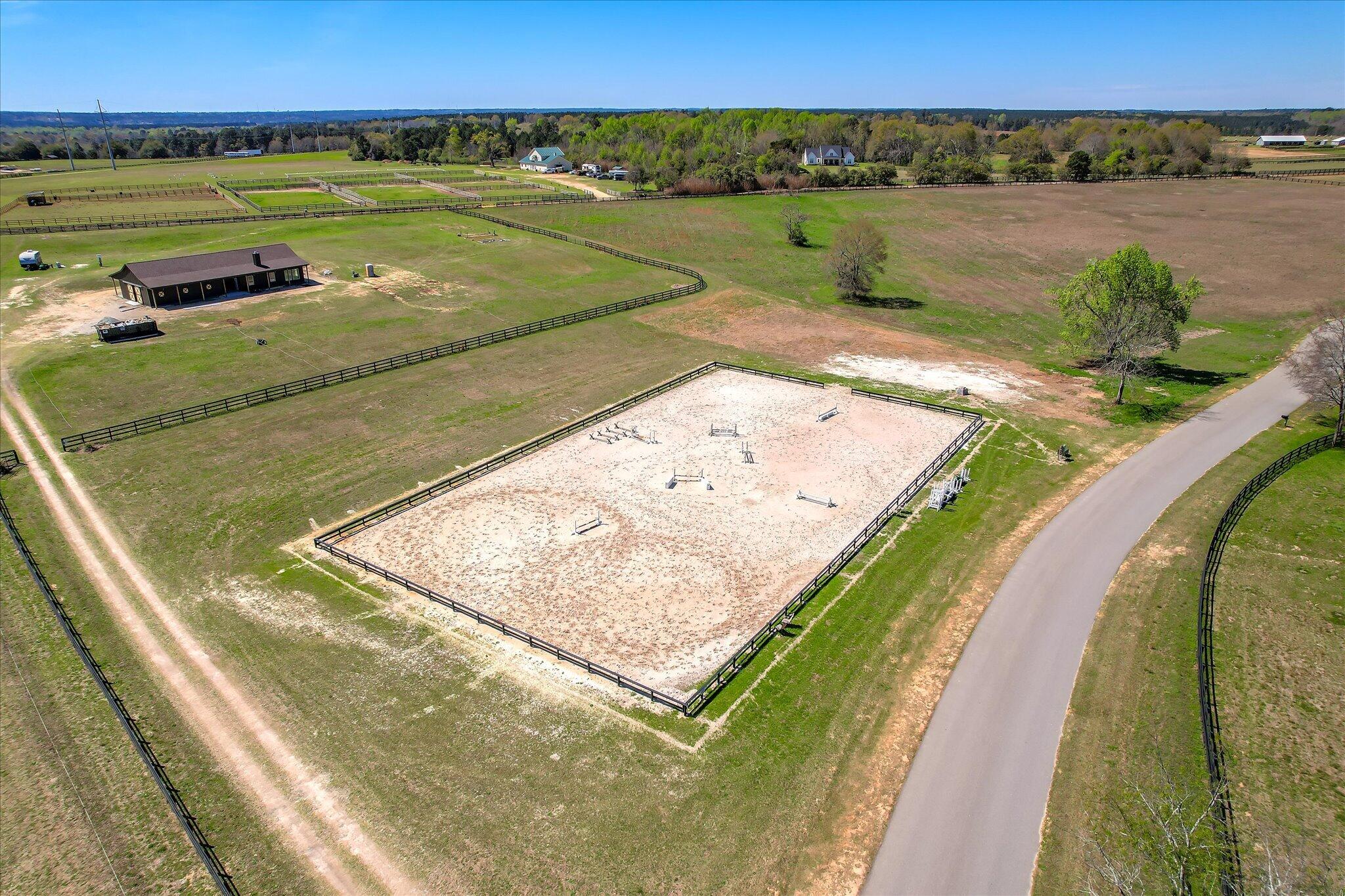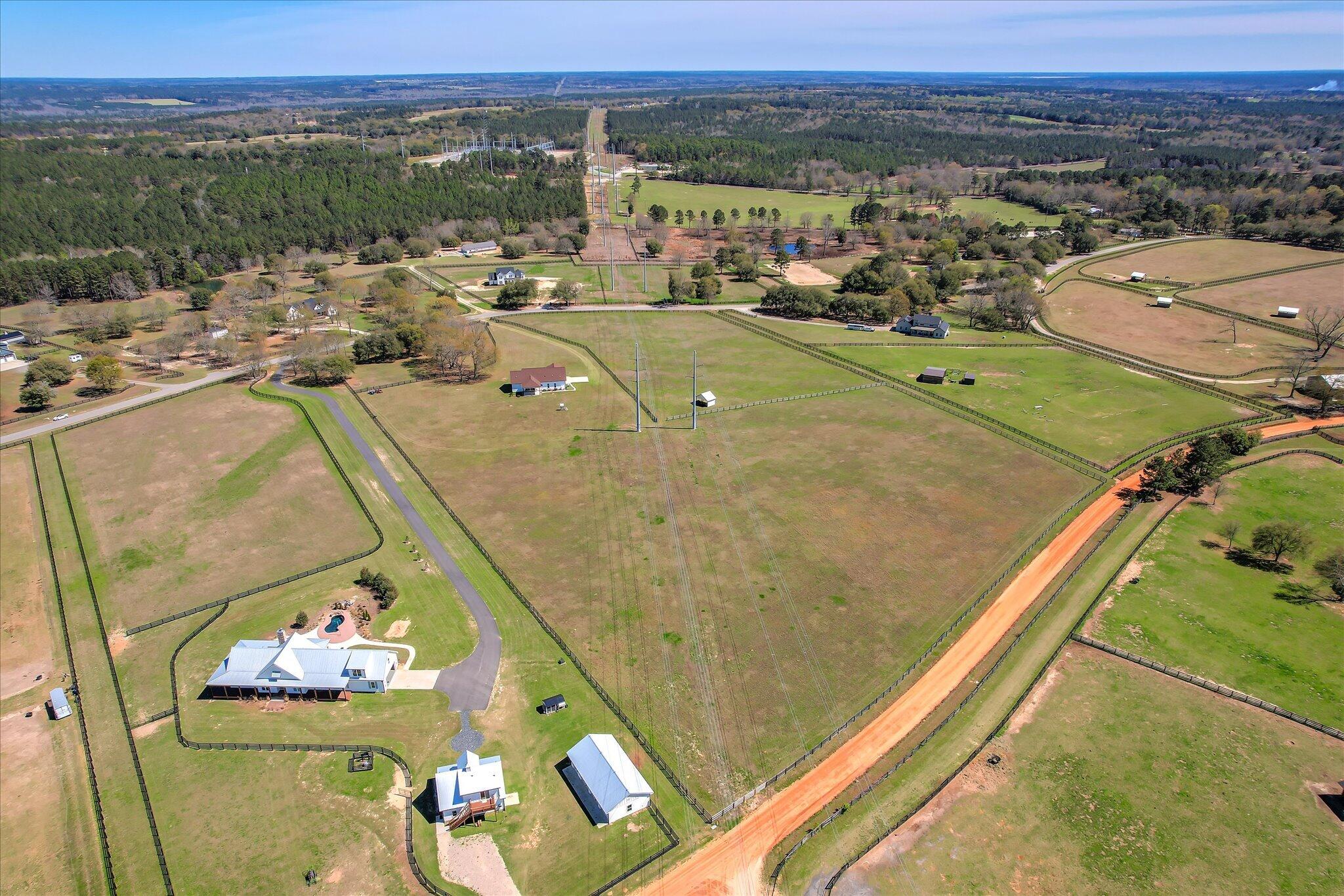 Equestrian property in the heart of Aiken's renowned horse country! Situated on 13.50 acres in the sought-after Pony Express community, this beautifully designed single-level home offers 3 bedrooms, 2 baths, and a dedicated office or flex space that can also serve as a guest bedroom. An oversized 2.5-car garage complements the home's modern finishes, while established pasture, paddocks, and access to private riding trails and a community arena complete the equestrian lifestyle. The thoughtfully crafted 1,855 heated square foot home features 10-foot ceilings and solid wood 8-foot doors, creating an open and elegant feel throughout. The great room is a true showpiece, highlighted by a modern coffered ceiling and custom shiplap accent wall, anchored by a gas fireplace with a reclaimed oak mantle. The kitchen blends beauty and functionality with birchwood cabinetry, leathered granite countertops, and a striking 7½ foot white oak island topped with veined quartz. Additional highlights include a farmhouse porcelain sink, handmade Italian porcelain tile backsplash, custom white oak vent hood, and Cafe six-burner gas range with convection oven. Stainless appliances include a counter-depth refrigerator and an interior stainless steel dishwasher. Oregon wood-wide plank porcelain tile flooring runs seamlessly throughout the main living space, with porcelain tile in the bathrooms and laundry room. The laundry area features butcher block countertops and a utility sink, ideal after a day around the barn. A 12-foot sliding glass door fills the living space with natural light and opens to the surrounding countryside, creating a seamless indoor-outdoor connection. Designed with the horse enthusiast in mind, the property features cleared, gently rolling, established pasture with two paddocks (approximately 1.5 acres and 3 acres) and room for additional expansion. The sellers recently installed three- and four-board pressure-treated fencing painted black (2025), creating a classic equestrian aesthetic, along with a covered run-in shed built in 2024 (approximately 12' x 19'6'') with water access. Additional improvements include two separate 220-volt electrical hookups, providing exceptional versatility for barn equipment, future farm expansion, equestrian amenities, RV, or horse trailer hookups. For added protection and peace of mind, the sellers have installed lightning rod protection on the roof, an especially valuable feature for open acreage and equestrian properties. Residents of the Pony Express community enjoy access to a community riding arena with irrigated footing, along with dedicated riding trails and equestrian easements reserved exclusively for property owners. Scenic trails wind through mature pines and hardwoods, offering shaded rides and peaceful walks throughout the neighborhood, all set along paved roadways within this beautifully maintained community. A rare opportunity to own a turnkey equestrian property where thoughtful design, modern comfort, and the Aiken horse-country lifestyle come together, ready for you and your horses to enjoy from day one.