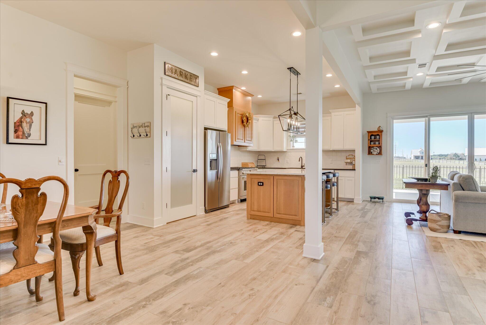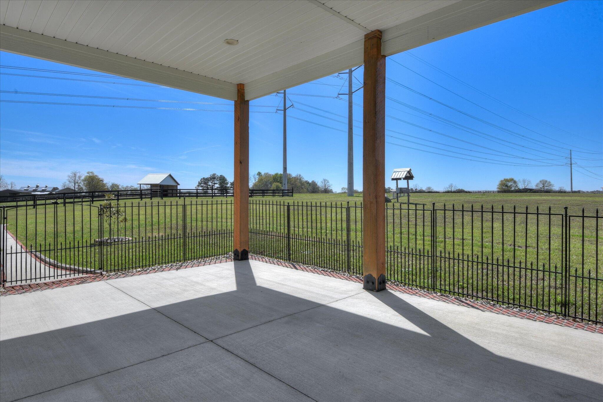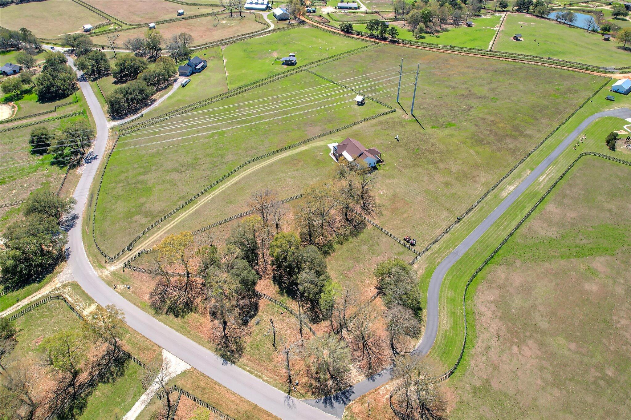 Equestrian property in the heart of Aiken's renowned horse country! Situated on 13.50 acres in the sought-after Pony Express community, this beautifully designed single-level home offers 3 bedrooms, 2 baths, and a dedicated office or flex space that can also serve as a guest bedroom. An oversized 2.5-car garage complements the home's modern finishes, while established pasture, paddocks, and access to private riding trails and a community arena complete the equestrian lifestyle. The thoughtfully crafted 1,855 heated square foot home features 10-foot ceilings and solid wood 8-foot doors, creating an open and elegant feel throughout. The great room is a true showpiece, highlighted by a modern coffered ceiling and custom shiplap accent wall, anchored by a gas fireplace with a reclaimed oak mantle. The kitchen blends beauty and functionality with birchwood cabinetry, leathered granite countertops, and a striking 7½ foot white oak island topped with veined quartz. Additional highlights include a farmhouse porcelain sink, handmade Italian porcelain tile backsplash, custom white oak vent hood, and Cafe six-burner gas range with convection oven. Stainless appliances include a counter-depth refrigerator and an interior stainless steel dishwasher. Oregon wood-wide plank porcelain tile flooring runs seamlessly throughout the main living space, with porcelain tile in the bathrooms and laundry room. The laundry area features butcher block countertops and a utility sink, ideal after a day around the barn. A 12-foot sliding glass door fills the living space with natural light and opens to the surrounding countryside, creating a seamless indoor-outdoor connection. Designed with the horse enthusiast in mind, the property features cleared, gently rolling, established pasture with two paddocks (approximately 1.5 acres and 3 acres) and room for additional expansion. The sellers recently installed three- and four-board pressure-treated fencing painted black (2025), creating a classic equestrian aesthetic, along with a covered run-in shed built in 2024 (approximately 12' x 19'6'') with water access. Additional improvements include two separate 220-volt electrical hookups, providing exceptional versatility for barn equipment, future farm expansion, equestrian amenities, RV, or horse trailer hookups. For added protection and peace of mind, the sellers have installed lightning rod protection on the roof, an especially valuable feature for open acreage and equestrian properties. Residents of the Pony Express community enjoy access to a community riding arena with irrigated footing, along with dedicated riding trails and equestrian easements reserved exclusively for property owners. Scenic trails wind through mature pines and hardwoods, offering shaded rides and peaceful walks throughout the neighborhood, all set along paved roadways within this beautifully maintained community. A rare opportunity to own a turnkey equestrian property where thoughtful design, modern comfort, and the Aiken horse-country lifestyle come together, ready for you and your horses to enjoy from day one.