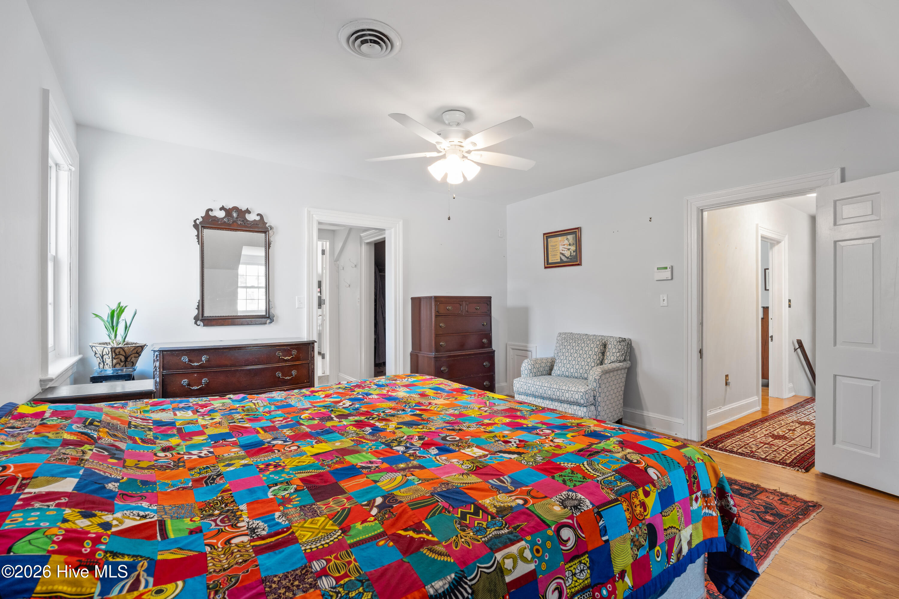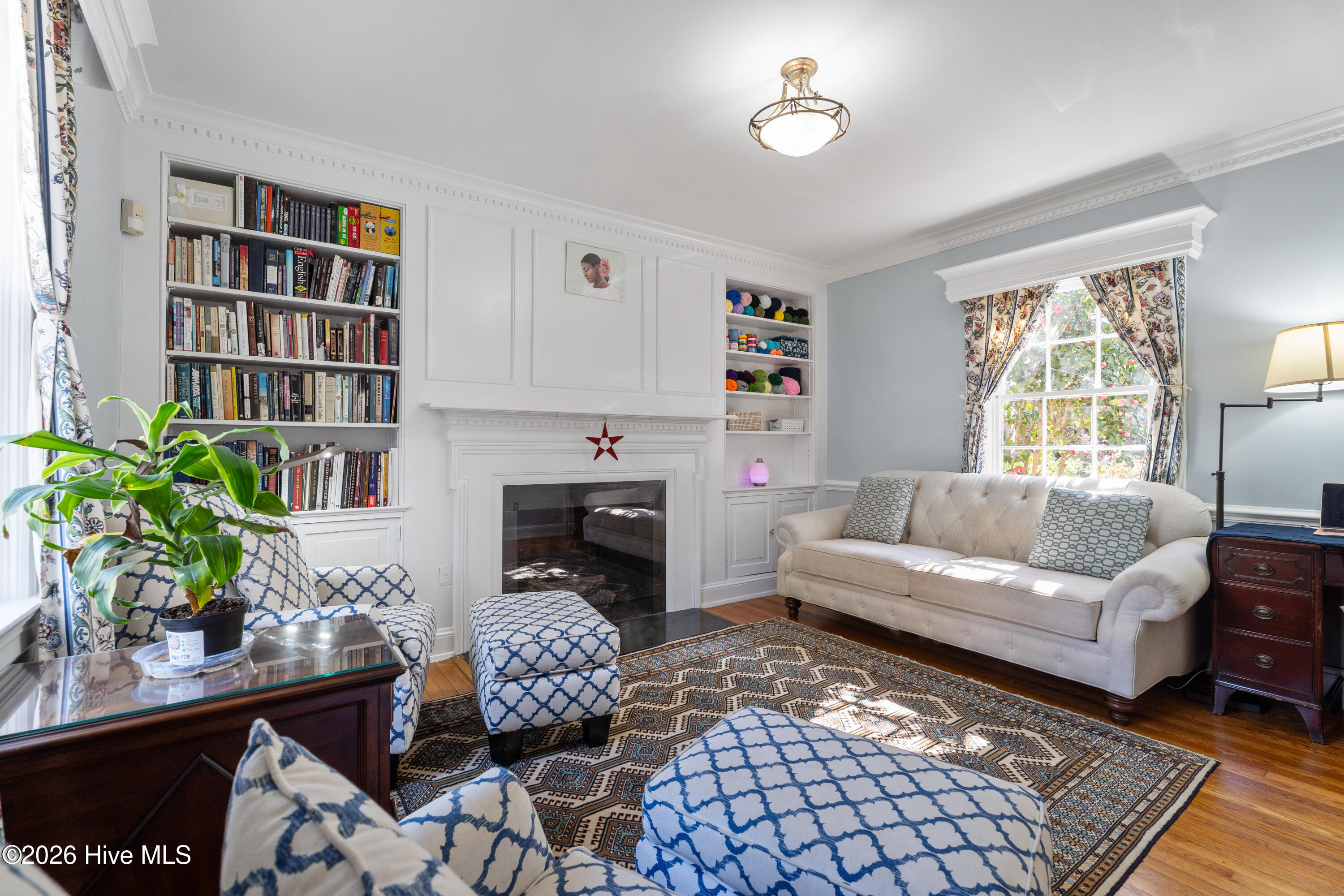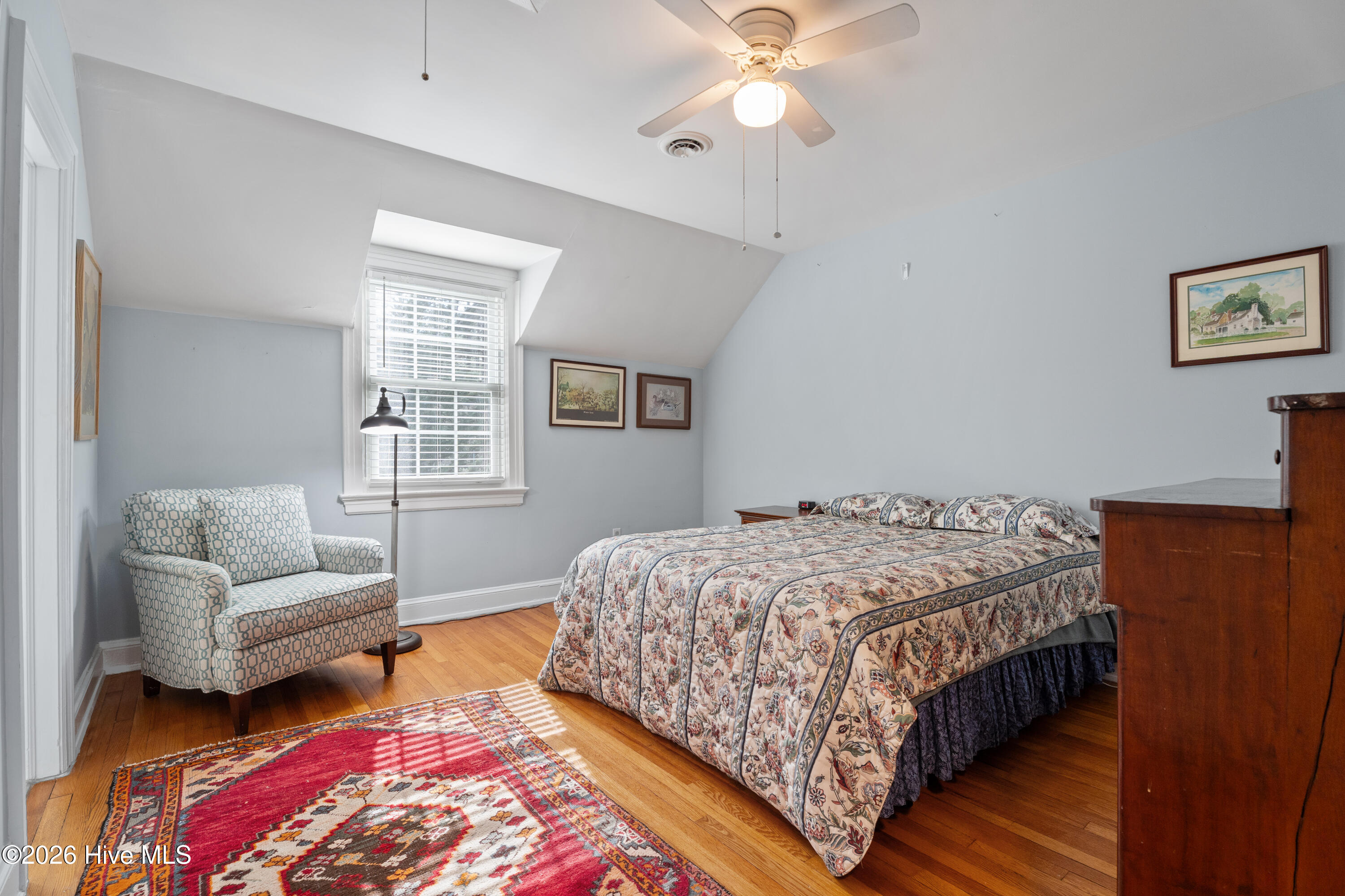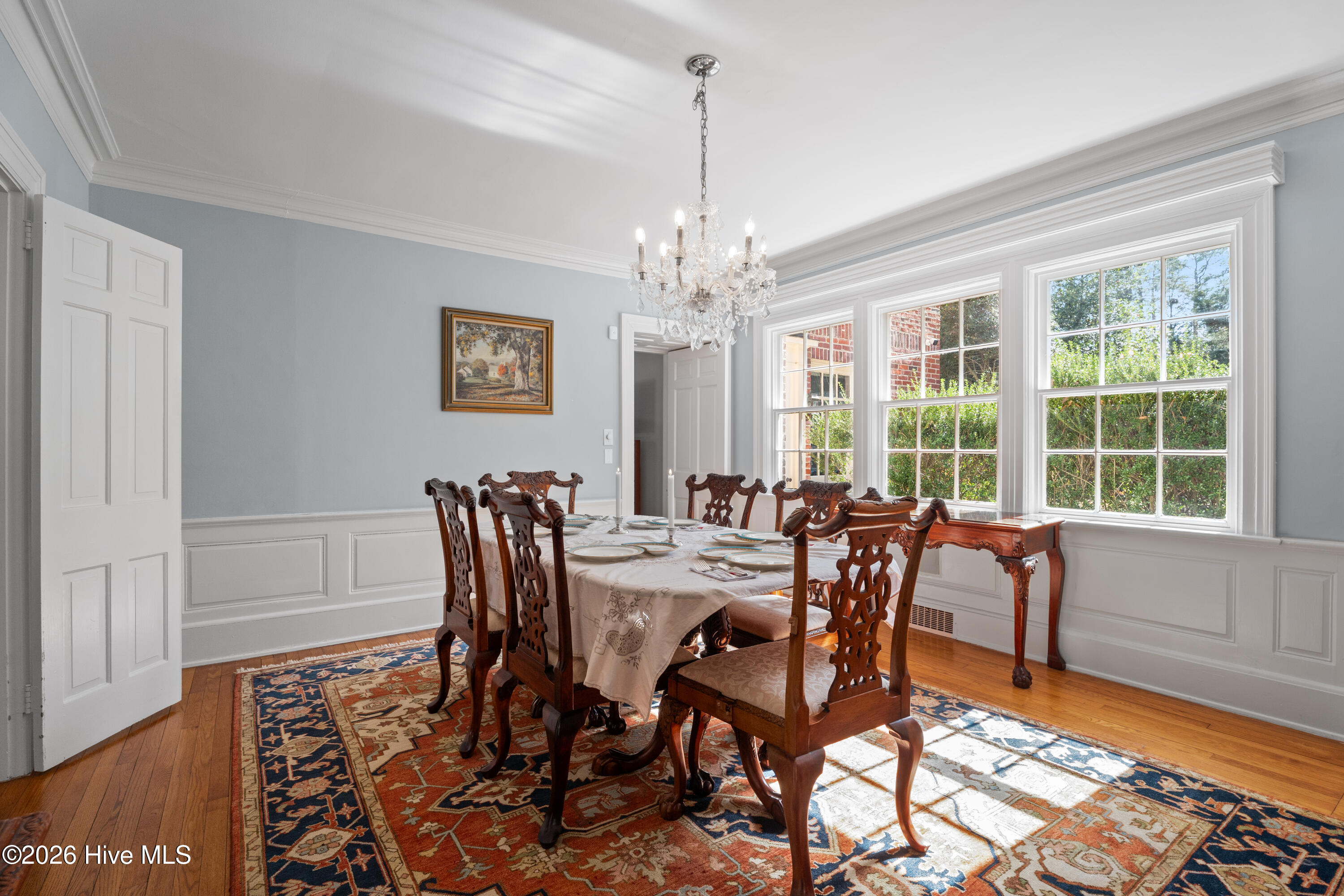 This gorgeous architect-designed home sits on a corner lot in the City of Rocky Mount, conveniently located to major shopping and eateries. It is a stroll-away from downtown Rocky Mount, the train station, city administration offices, and churches. The kitchen is newly updated, with modern appliances, lots of cabinets, gas stove with a pot filler faucet and grill. Built in 1937 by Samuel Sanders Toler, builder of a number of significant buildings in Rocky Mount. Toler built the house for his family and no corners were cut; built of the finest materials with great craftsmanship, this home is both timeless and modern. The house has two fireplaces (never used by current homeowners) that provide the feel of warmth and comfort in the living room and den/library/5 th bedroom on the ground floor. Beautiful hardwood floors throughout, with tile in the kitchen and bathrooms. On the ground floor you will find a spacious living room, dining room, kitchen, office, den/library/bonus room and a full bath. Upstairs the house branches into two wings, one way leads to an ensuite guest room, a massive linen closet and the master bedroom. The master suite features his and her walk-in lighted closets and built-in alcove cabinets. The master bathroom has double vanity sinks in a quartz counter-top, a large jacuzzi tub, and a walk-in shower with two shower heads. The other wing of the upstairs is ideal for privacy, and extra space. There are two spacious bedrooms, with a full bath and two walk-in closets, built- in cabinets and a ''secret closet'' which is very cool! Unusual for Rocky Mount, the home has a partial basement with a concrete floor with a half bath and ample storage space. A mud room and broom closet provide the residence with space for changing shoes or tending to pets. The backyard is completely fenced offering privacy and security. The driveway also includes hardware to have your own pickleball court. The beautiful gardens were originally designed by noted landscape architect Glendon Robert Derick, who designed many gardens in North Carolina. Later owners revamped the gardens, adding many new features, a rose garden and specimen plants, and a water feature. These gardens were the subject of a blog post on the Main Street Rocky Mount website (The Historic District Gardens of Rocky Mount - A West Haven Poem - Main Street Rocky Mount). 1401 is a place of fine craftsmanship, beauty and elegance awaiting its new owners!