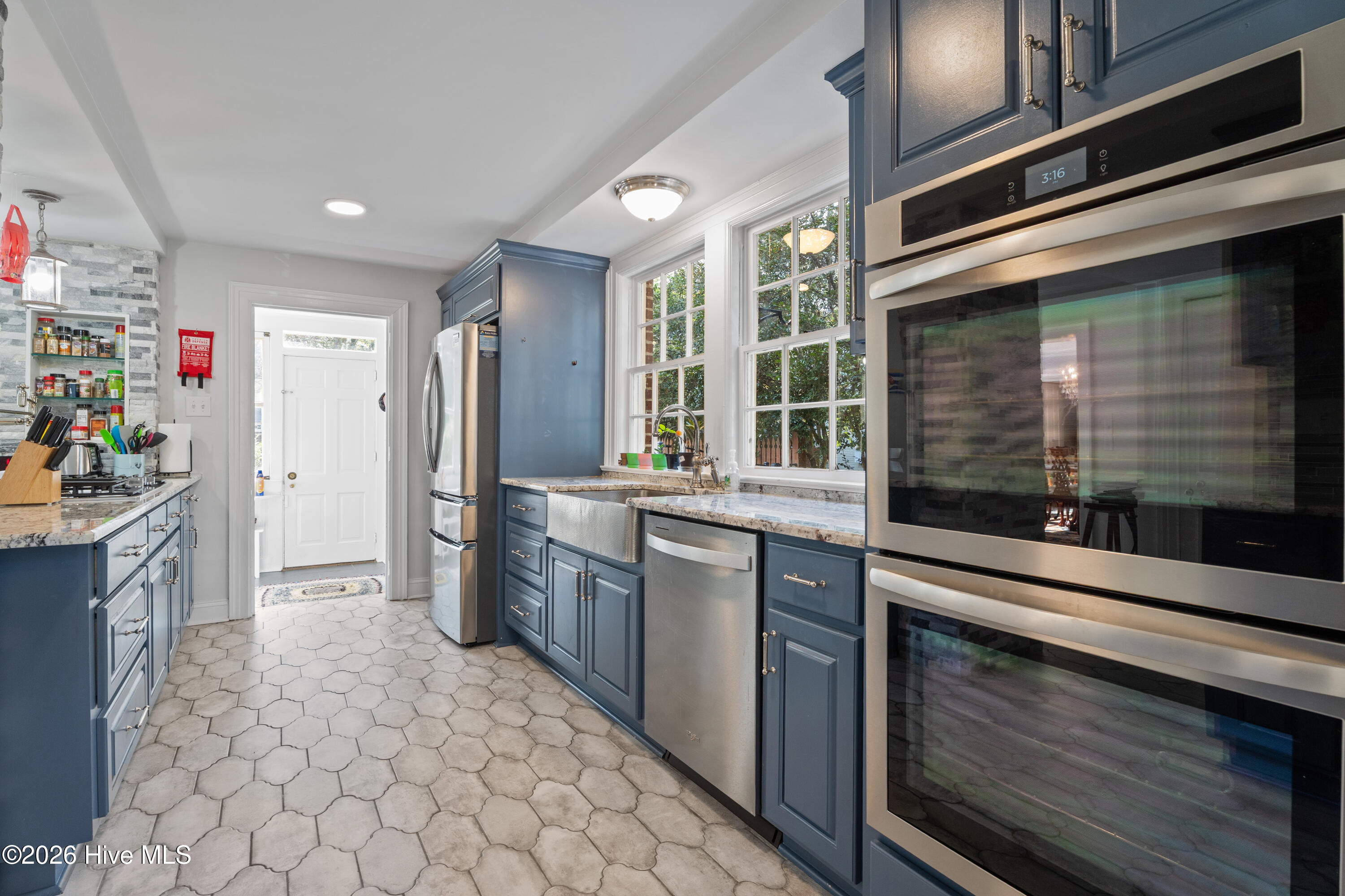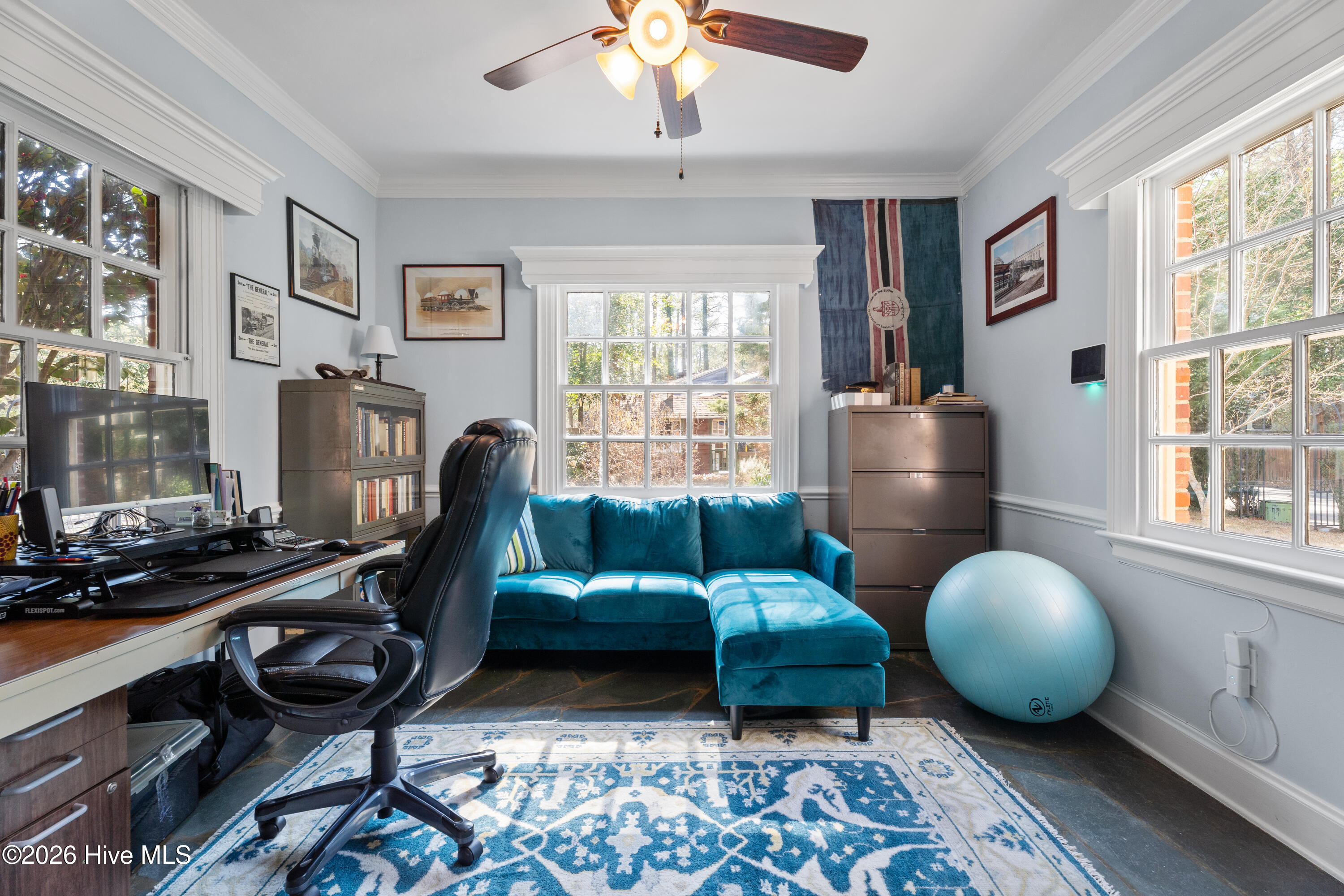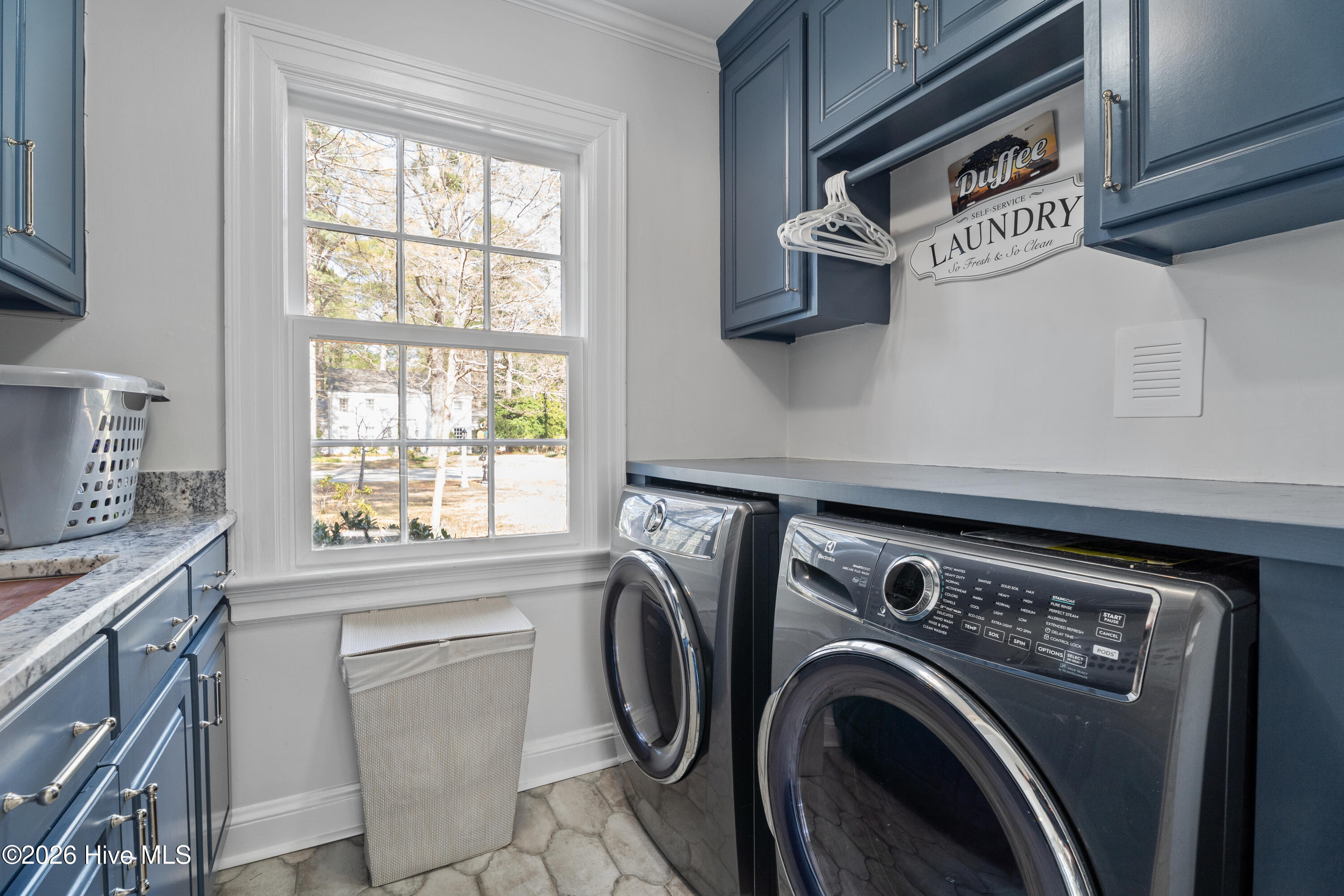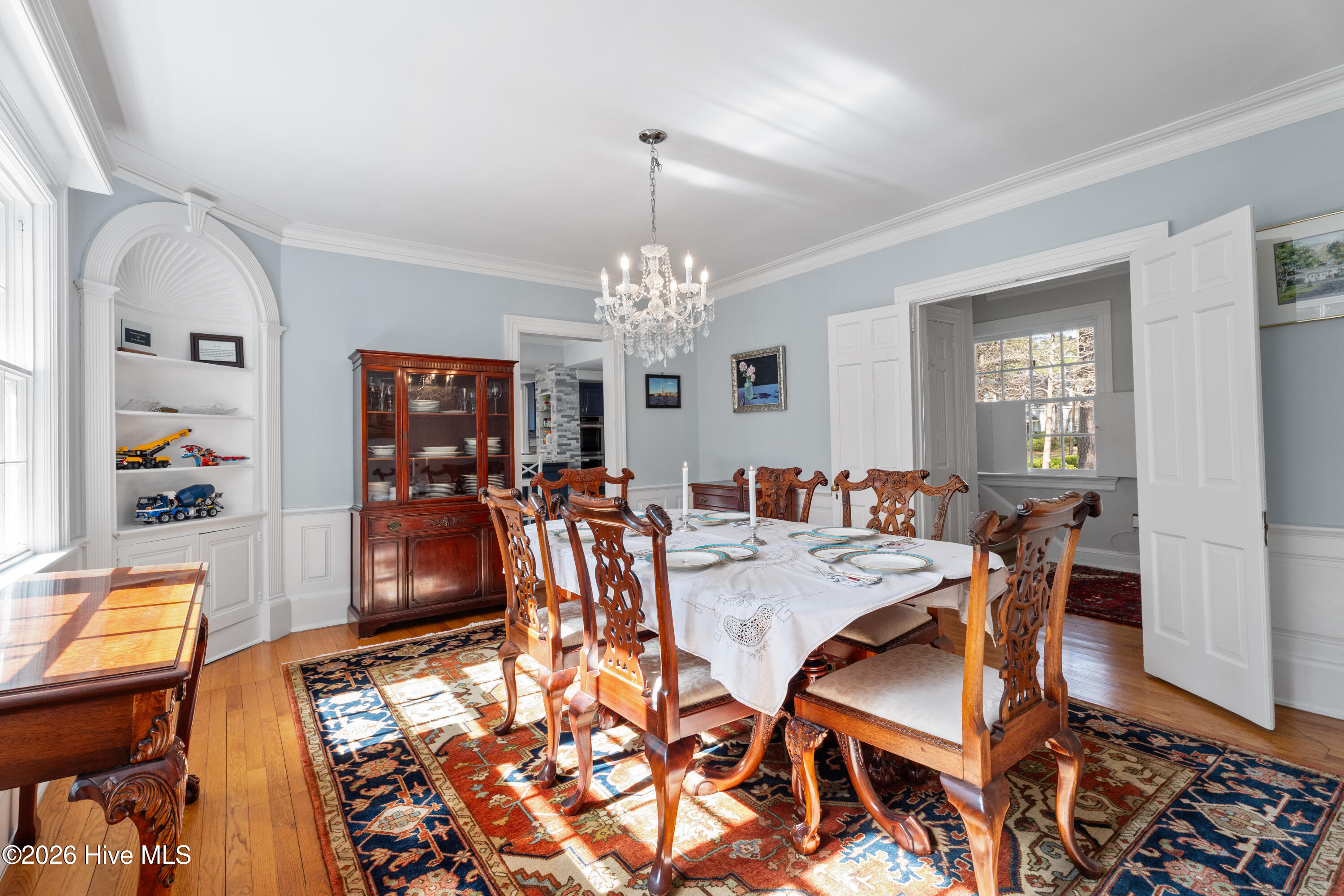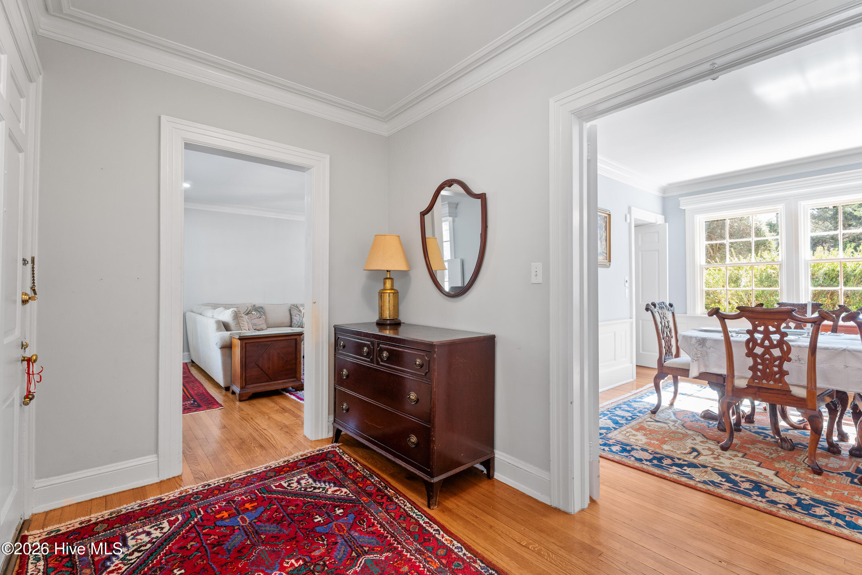 This gorgeous architect-designed home sits on a corner lot in the City of Rocky Mount, conveniently located to major shopping and eateries. It is a stroll-away from downtown Rocky Mount, the train station, city administration offices, and churches. The kitchen is newly updated, with modern appliances, lots of cabinets, gas stove with a pot filler faucet and grill. Built in 1937 by Samuel Sanders Toler, builder of a number of significant buildings in Rocky Mount. Toler built the house for his family and no corners were cut; built of the finest materials with great craftsmanship, this home is both timeless and modern. The house has two fireplaces (never used by current homeowners) that provide the feel of warmth and comfort in the living room and den/library/5 th bedroom on the ground floor. Beautiful hardwood floors throughout, with tile in the kitchen and bathrooms. On the ground floor you will find a spacious living room, dining room, kitchen, office, den/library/bonus room and a full bath. Upstairs the house branches into two wings, one way leads to an ensuite guest room, a massive linen closet and the master bedroom. The master suite features his and her walk-in lighted closets and built-in alcove cabinets. The master bathroom has double vanity sinks in a quartz counter-top, a large jacuzzi tub, and a walk-in shower with two shower heads. The other wing of the upstairs is ideal for privacy, and extra space. There are two spacious bedrooms, with a full bath and two walk-in closets, built- in cabinets and a ''secret closet'' which is very cool! Unusual for Rocky Mount, the home has a partial basement with a concrete floor with a half bath and ample storage space. A mud room and broom closet provide the residence with space for changing shoes or tending to pets. The backyard is completely fenced offering privacy and security. The driveway also includes hardware to have your own pickleball court. The beautiful gardens were originally designed by noted landscape architect Glendon Robert Derick, who designed many gardens in North Carolina. Later owners revamped the gardens, adding many new features, a rose garden and specimen plants, and a water feature. These gardens were the subject of a blog post on the Main Street Rocky Mount website (The Historic District Gardens of Rocky Mount - A West Haven Poem - Main Street Rocky Mount). 1401 is a place of fine craftsmanship, beauty and elegance awaiting its new owners!