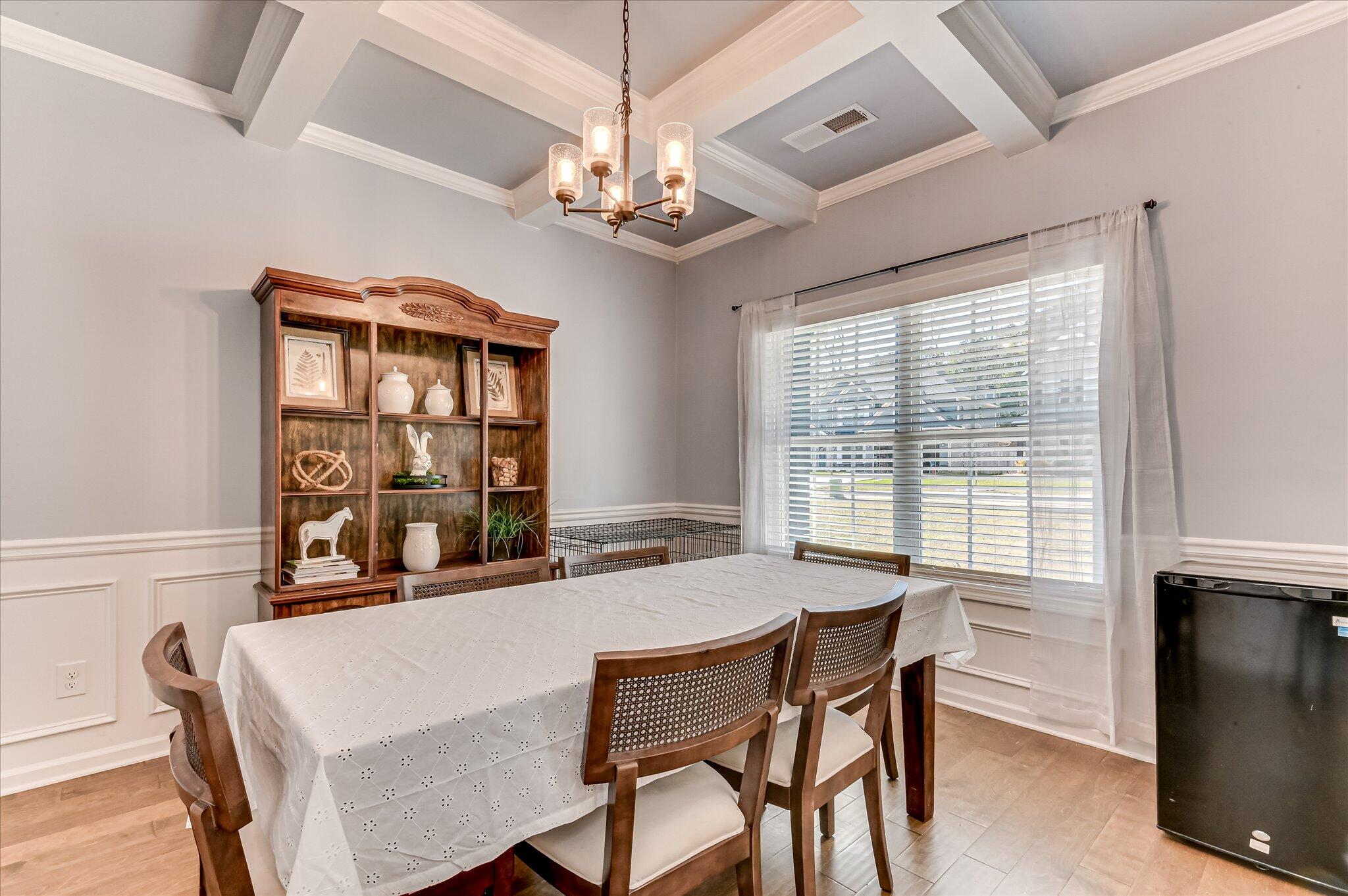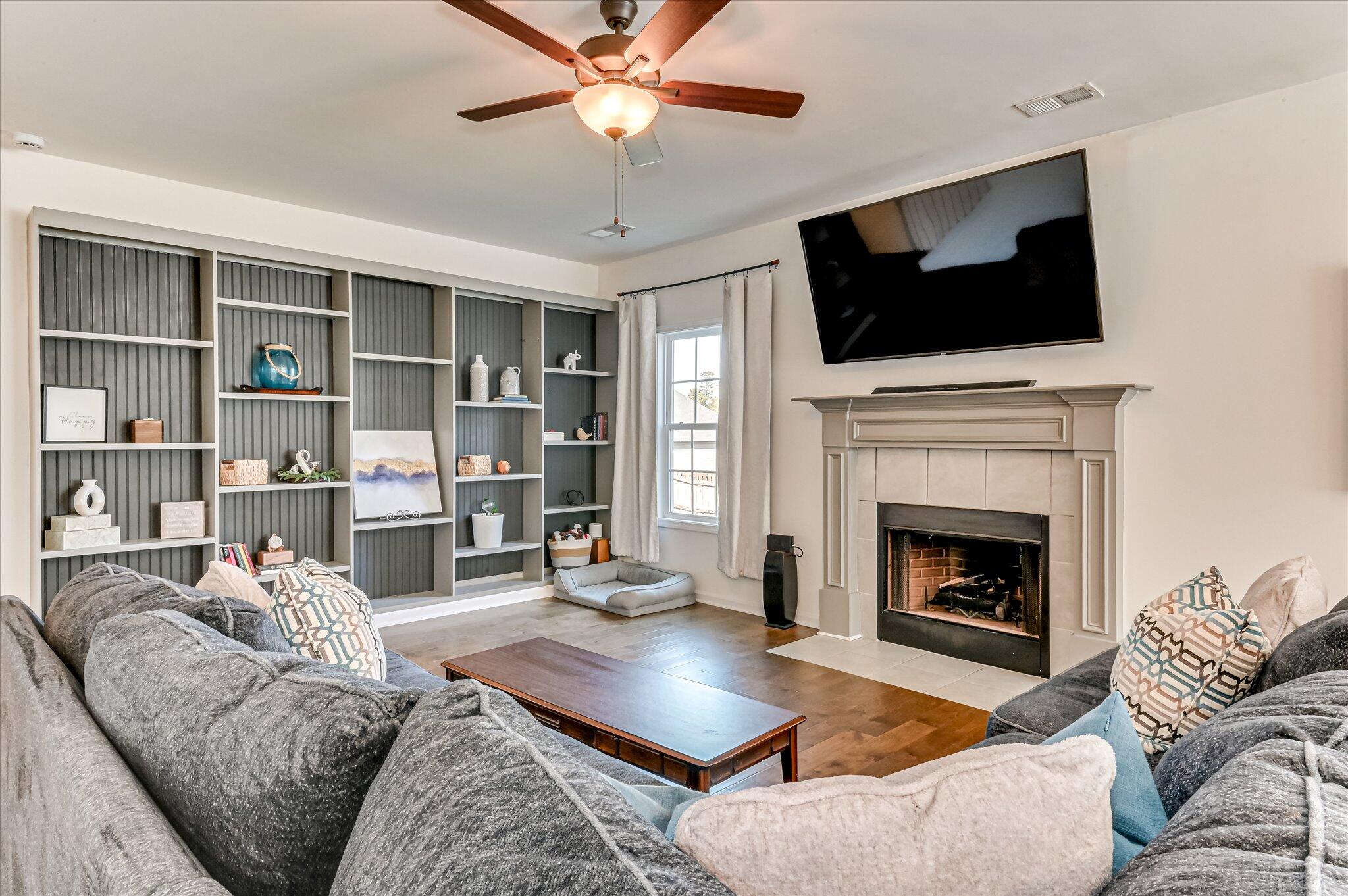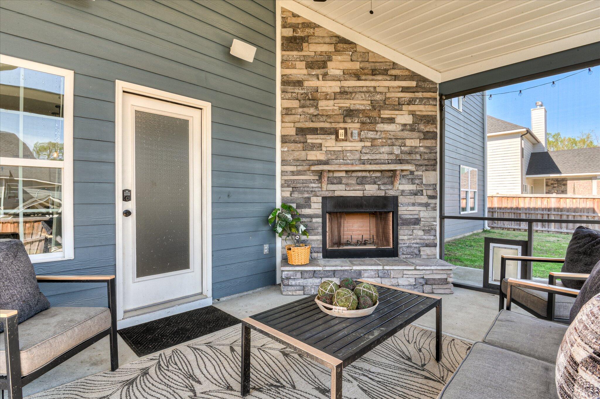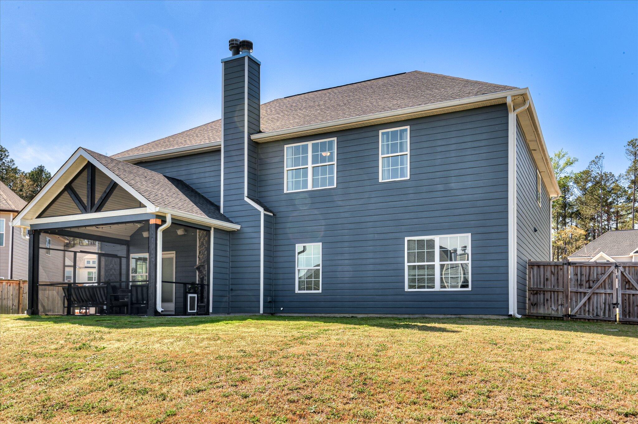 Beautiful two-story home located in the desirable Quaker Knoll subdivision featuring a three-car garage and a functional, open floor plan. New carpet has been installed in all bedrooms. The spacious gourmet kitchen offers a large center island with breakfast bar, granite countertops, tile backsplash, stainless steel appliances including a gas range and refrigerator and a walk-in pantry with custom shelving. A formal dining room off the foyer showcases a coffered ceiling and shadow box molding, while hardwood floors extend throughout the main living areas. The great room features a gas fireplace and custom built-in bookshelves. A main-level bedroom and full bath provide an ideal setup for guests or a home office. Upstairs, the primary suite includes a luxurious en-suite bath with double vanities, soaking tub, separate tiled shower, and tiled flooring. Three additional bedrooms, a bonus room perfect for extra entertaining space or a play room, a full bath with double vanities, and laundry room complete the upstairs. Enjoy outdoor living with a screened-in porch featuring a stone fireplace and an adjacent grilling patio overlooking the privacy-fenced backyard.