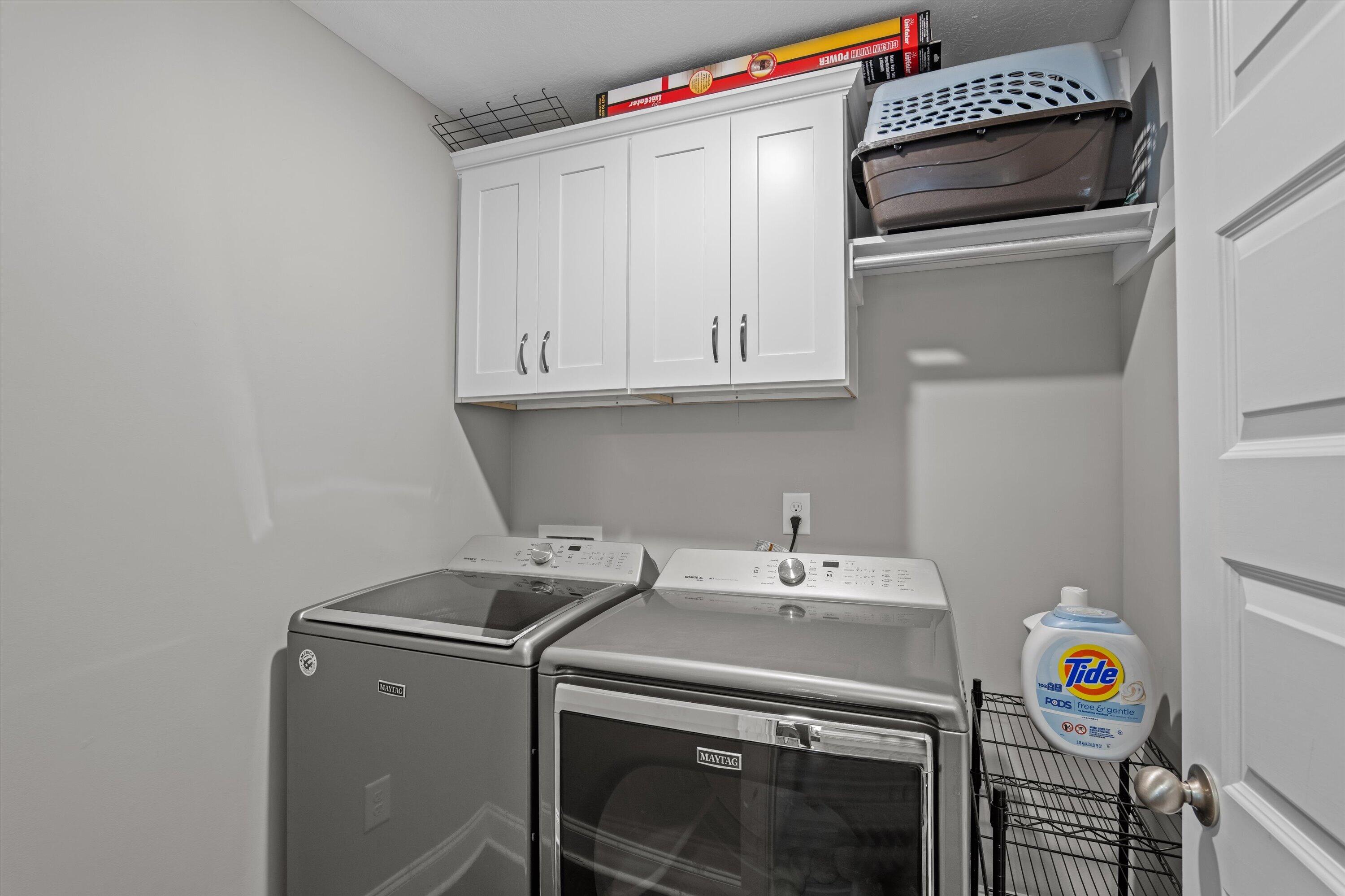 This home is loaded with upgrades, a fabulous floor plan, and a large, private back yard with no neighbors behind you! You'll love the tall ceilings, neutral colors, large windows, & natural light. It truly is a blank slate to compliment your design style. The split floor plan allows for super functional & comfortable living, with an extra-private owner's suite on the main floor plus a full guest suite & bathroom upstairs. The owner's suite offers extra space for a desk, reading chairs, or even a treadmill or peloton. Large closets, lots of storage space, and even an amazing walk-out attic. Upgrades include: architectural shingles, gutters on all sides, soft-close kitchen cabinets & drawers, upgraded kitchen appliance package (with fridge to remain), pot filler, EV charger, tankless water heater, screen porch, patio, storage shed (on concrete foundation) & custom landscaping. Kelarie has sidewalks, a resort style pool, an activity field, and walking trails. Wonderful, friendly neighbors (the kind that have holiday block parties)! What's not to love!!