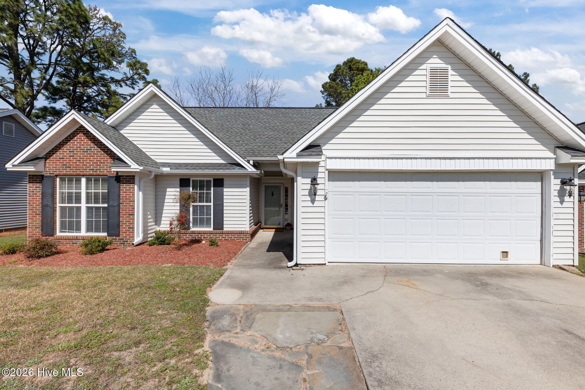 Charming and updated 3-bedroom, 2-bath home in the desirable Kensington Village subdivision of Aberdeen, convenient to everything. This move-in ready home features a cozy gas log fireplace, LVT flooring throughout main rooms, new carpet, a galley kitchen with stainless steel appliances open to the living and dining areas, and a convenient pantry. The spacious primary suite includes a walk-in closet, and both bathrooms have been recently updated. Vaulted ceilings in the living room and front bedrooms create a bright, open feel, while fresh paint throughout--including the garage and deck--adds a clean, modern touch. Enjoy a back deck and patio overlooking a peaceful wooded HOA common area. Additional highlights include a two-car garage, outside storage building and low HOA fees of just $30 per month. Conveniently located near Aberdeen and Southern Pines shopping, with easy access to Fort Bragg and Camp Mackall.