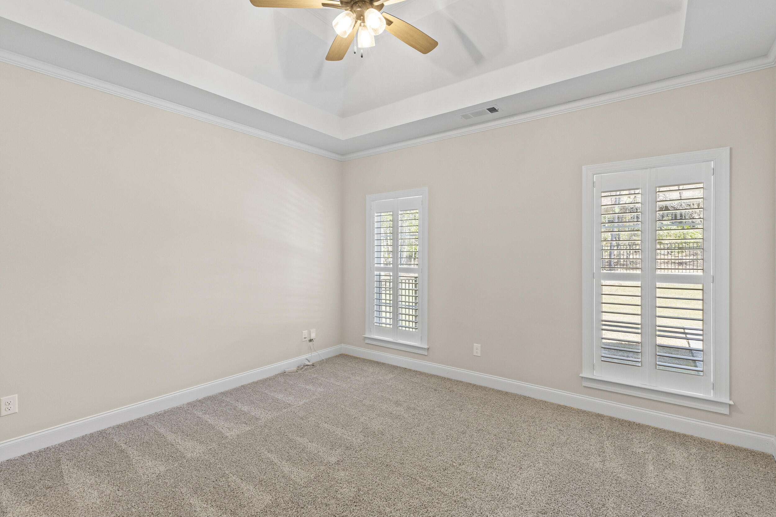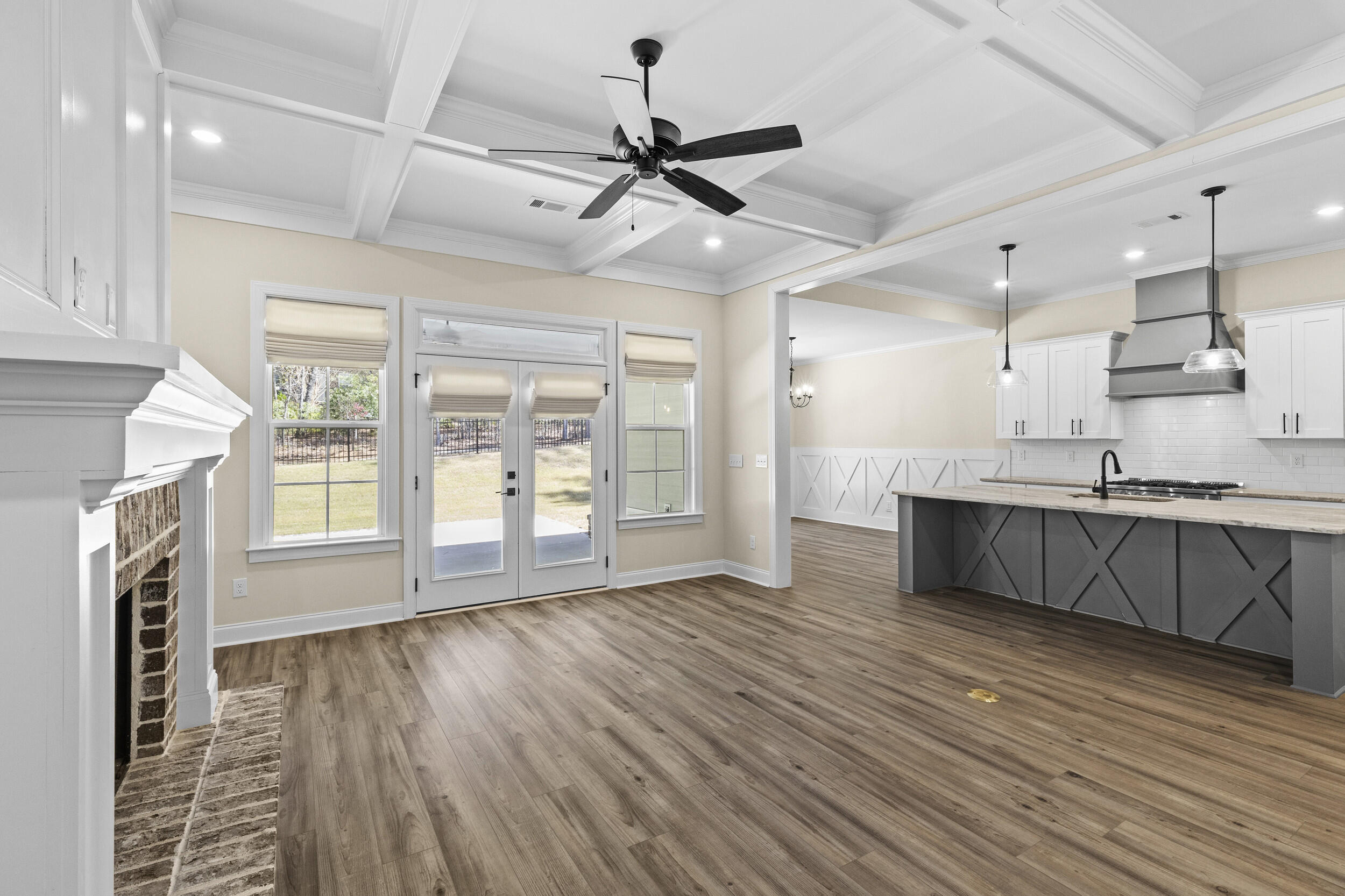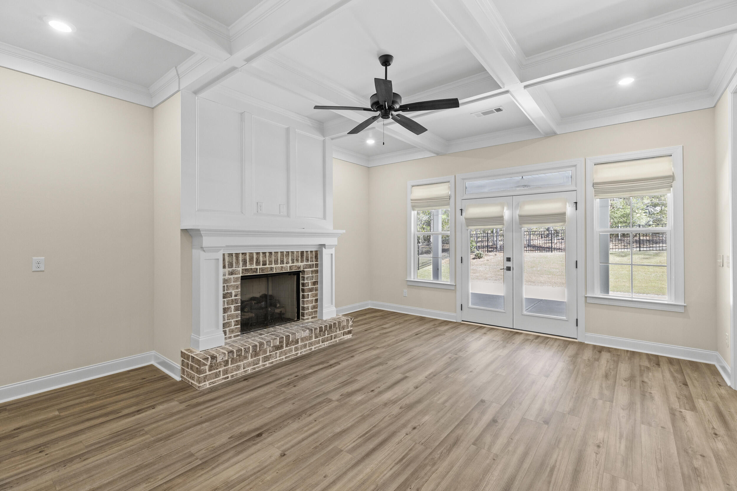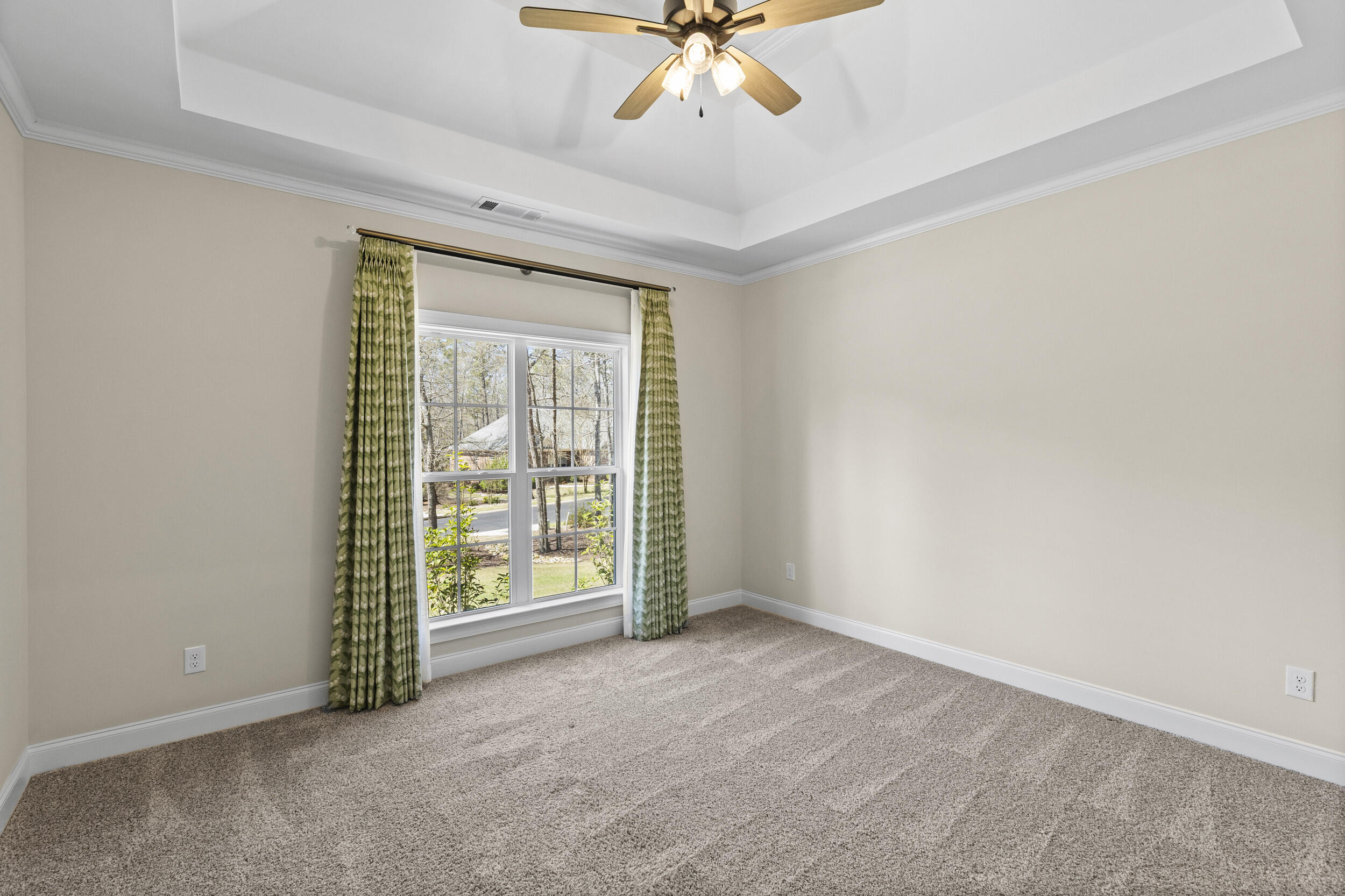 Welcome home to this beautiful ranch-style retreat designed with comfort, style, and functionality in mind. With 4 bedrooms, 3.5 baths, and a flexible upstairs bonus space, this home truly offers everything on your wish list -- nestled in a neighborhood complete with a country club, golf, tennis, and pickleball for your enjoyment. The owner's suite is a private haven, featuring double vanities with gorgeous granite countertops, a separate soaking tub, and the convenience of direct access to the laundry room. The thoughtfully designed kitchen showcases granite countertops, a gas cooktop, stainless steel appliances, a large pantry, and sunny eat-in dining, all open to the cozy family room anchored by a warm brick fireplace. Enjoy morning coffee in the charming breakfast area with beautiful wall paneling, or entertain in style beneath stunning coffered ceilings in both the family room and formal dining room. This versatile floor plan also includes a formal living room or spacious home office, perfect for today's lifestyle needs. Hardwood flooring flows throughout the main living areas, while plush carpet provides comfort in the bedrooms. Two secondary bedrooms share a convenient Jack-and-Jill bathroom, and guests will appreciate the dedicated powder room. Upstairs, a large flex room or 4th bedroom, with a full bath offers endless possibilities -- media room, guest suite, playroom, or private retreat. Better than new construction, this home is enhanced with designer window coverings and custom garage storage features. Step outside to enjoy the fenced backyard with beautiful landscaping, a welcoming covered front porch, and a relaxing back patio complete with porch shades -- perfect for taking in both sunrises and sunsets. This is the perfect blend of timeless design, thoughtful upgrades, and an active lifestyle in a sought-after country club community.