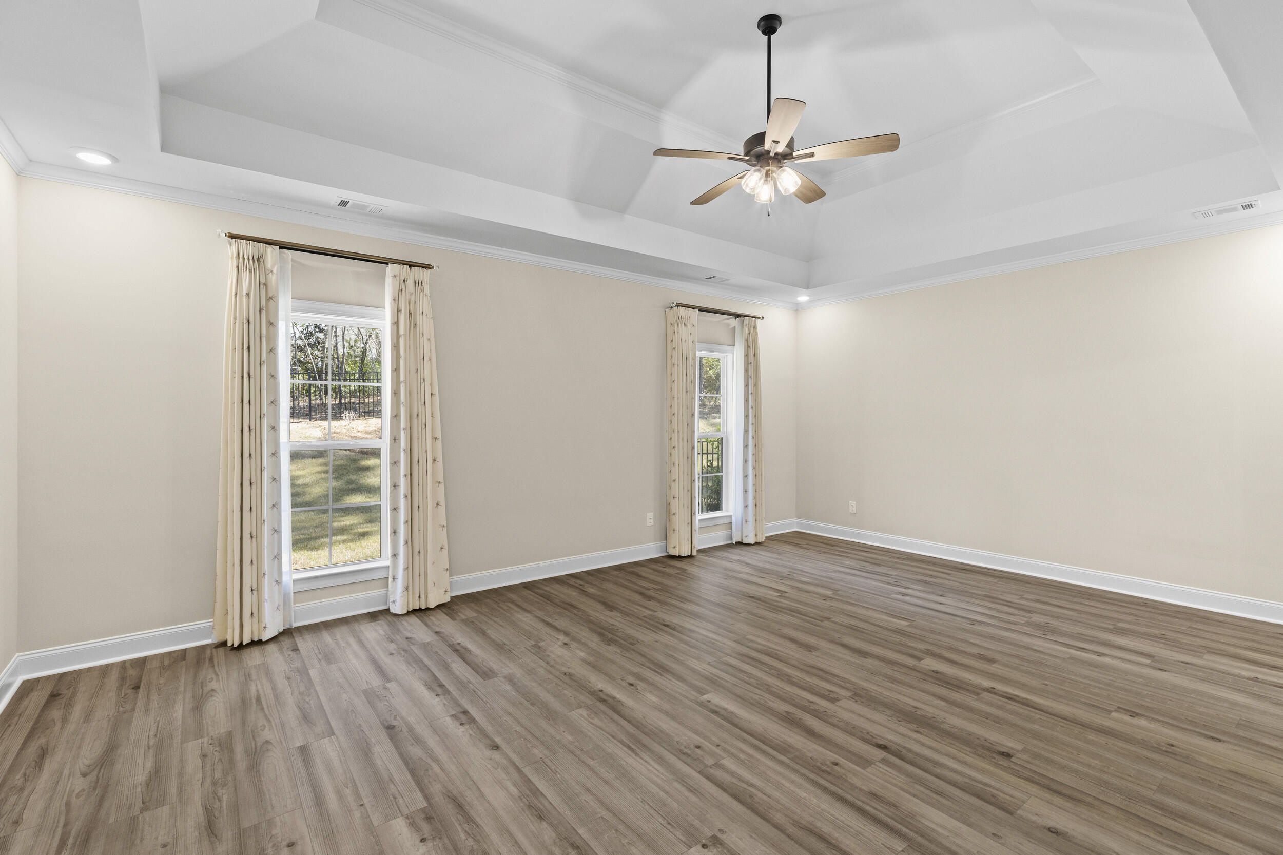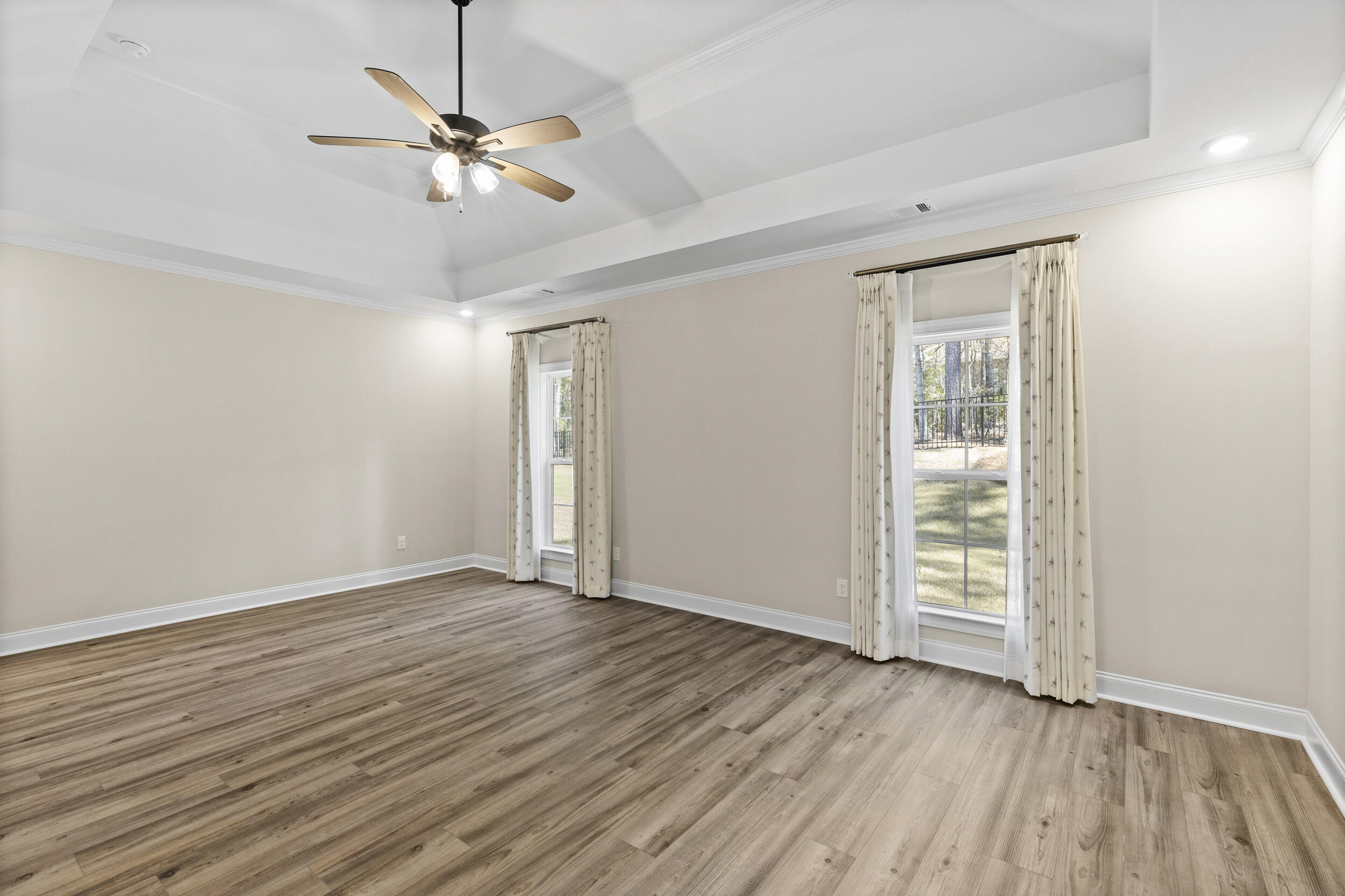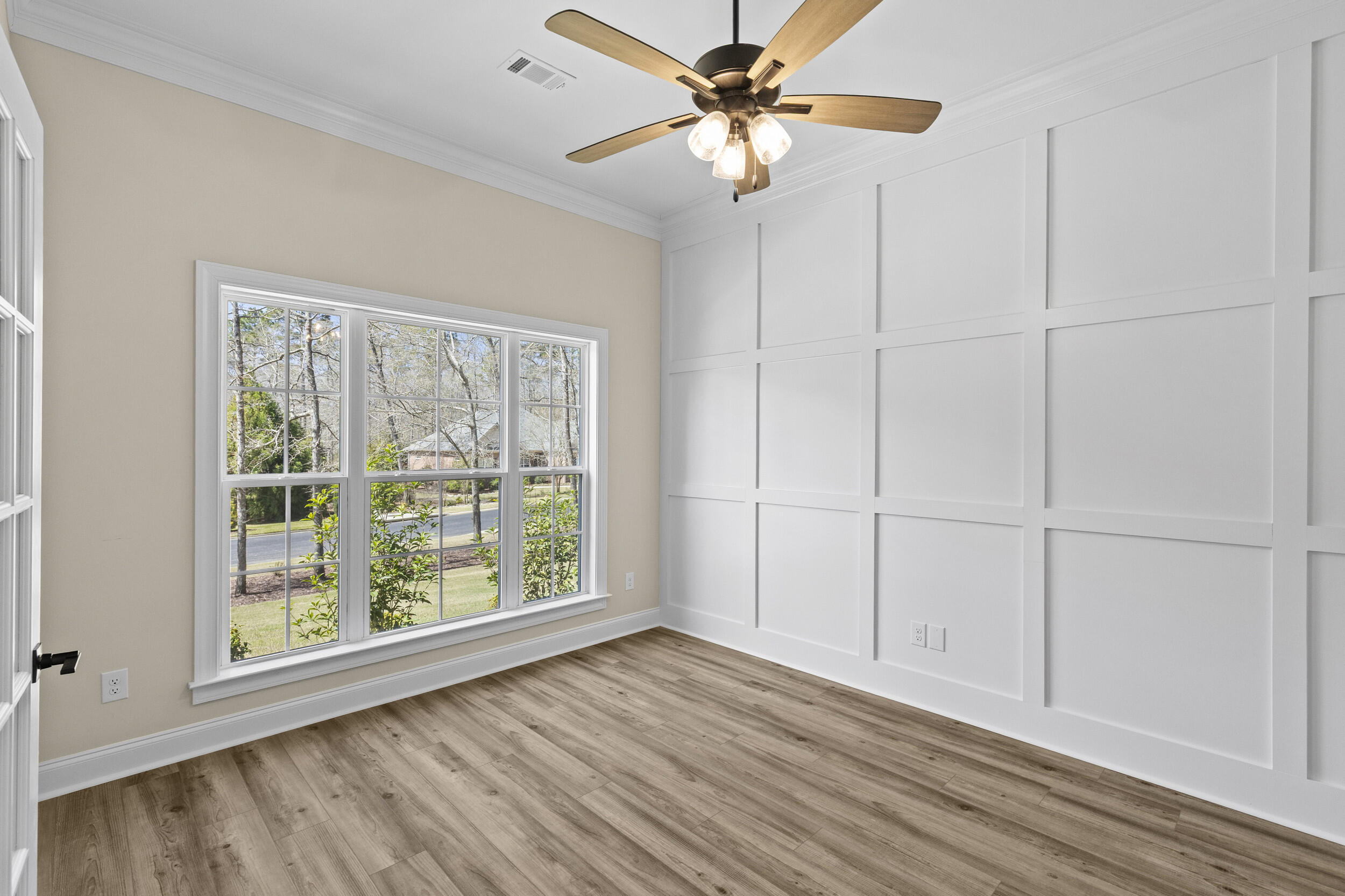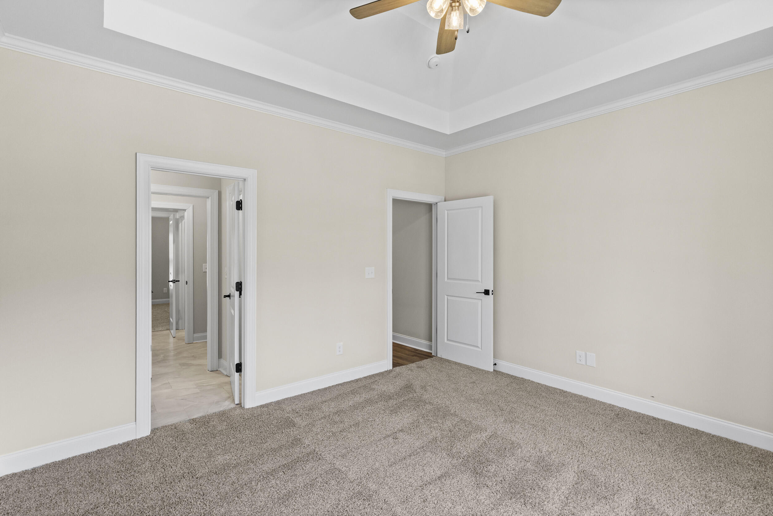Welcome home to this beautiful ranch-style retreat designed with comfort, style, and functionality in mind. With 4 bedrooms, 3.5 baths, and a flexible upstairs bonus space, this home truly offers everything on your wish list -- nestled in a neighborhood complete with a country club, golf, tennis, and pickleball for your enjoyment. The owner's suite is a private haven, featuring double vanities with gorgeous granite countertops, a separate soaking tub, and the convenience of direct access to the laundry room. The thoughtfully designed kitchen showcases granite countertops, a gas cooktop, stainless steel appliances, a large pantry, and sunny eat-in dining, all open to the cozy family room anchored by a warm brick fireplace. Enjoy morning coffee in the charming breakfast area with beautiful wall paneling, or entertain in style beneath stunning coffered ceilings in both the family room and formal dining room. This versatile floor plan also includes a formal living room or spacious home office, perfect for today's lifestyle needs. Hardwood flooring flows throughout the main living areas, while plush carpet provides comfort in the bedrooms. Two secondary bedrooms share a convenient Jack-and-Jill bathroom, and guests will appreciate the dedicated powder room. Upstairs, a large flex room or 4th bedroom, with a full bath offers endless possibilities -- media room, guest suite, playroom, or private retreat. Better than new construction, this home is enhanced with designer window coverings and custom garage storage features. Step outside to enjoy the fenced backyard with beautiful landscaping, a welcoming covered front porch, and a relaxing back patio complete with porch shades -- perfect for taking in both sunrises and sunsets. This is the perfect blend of timeless design, thoughtful upgrades, and an active lifestyle in a sought-after country club community.