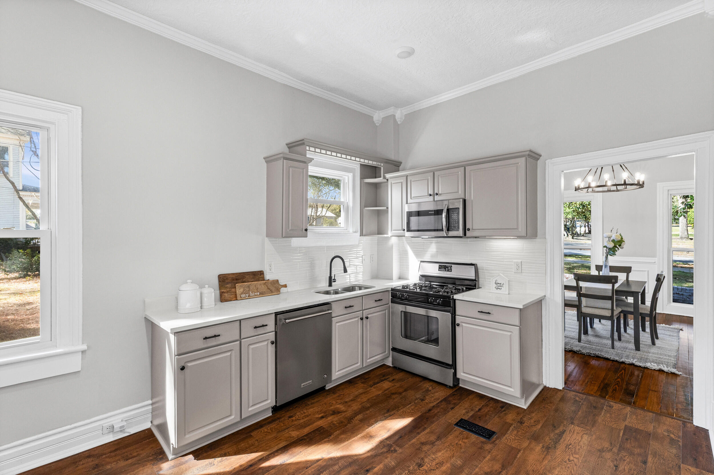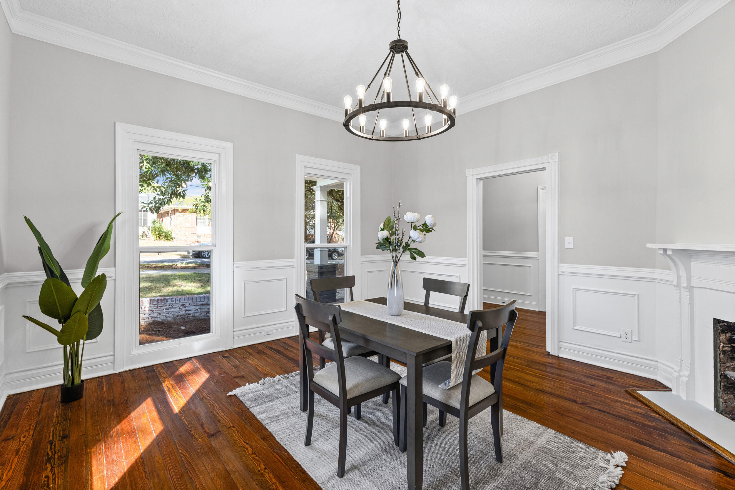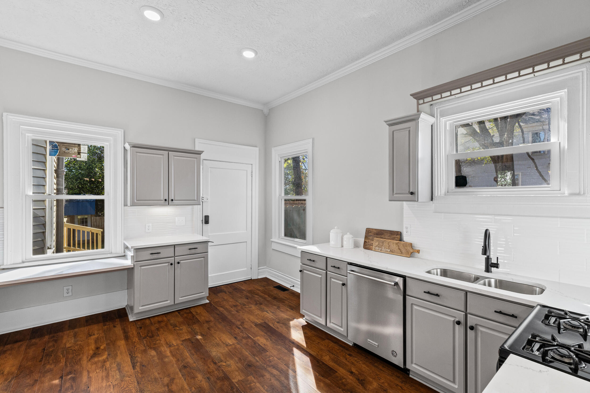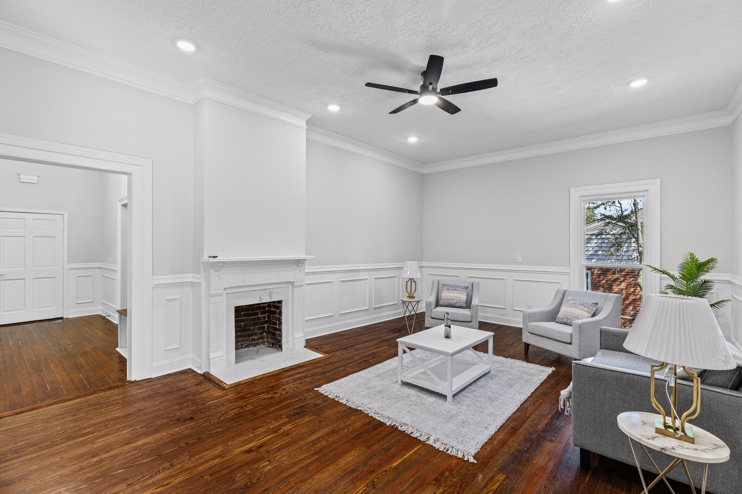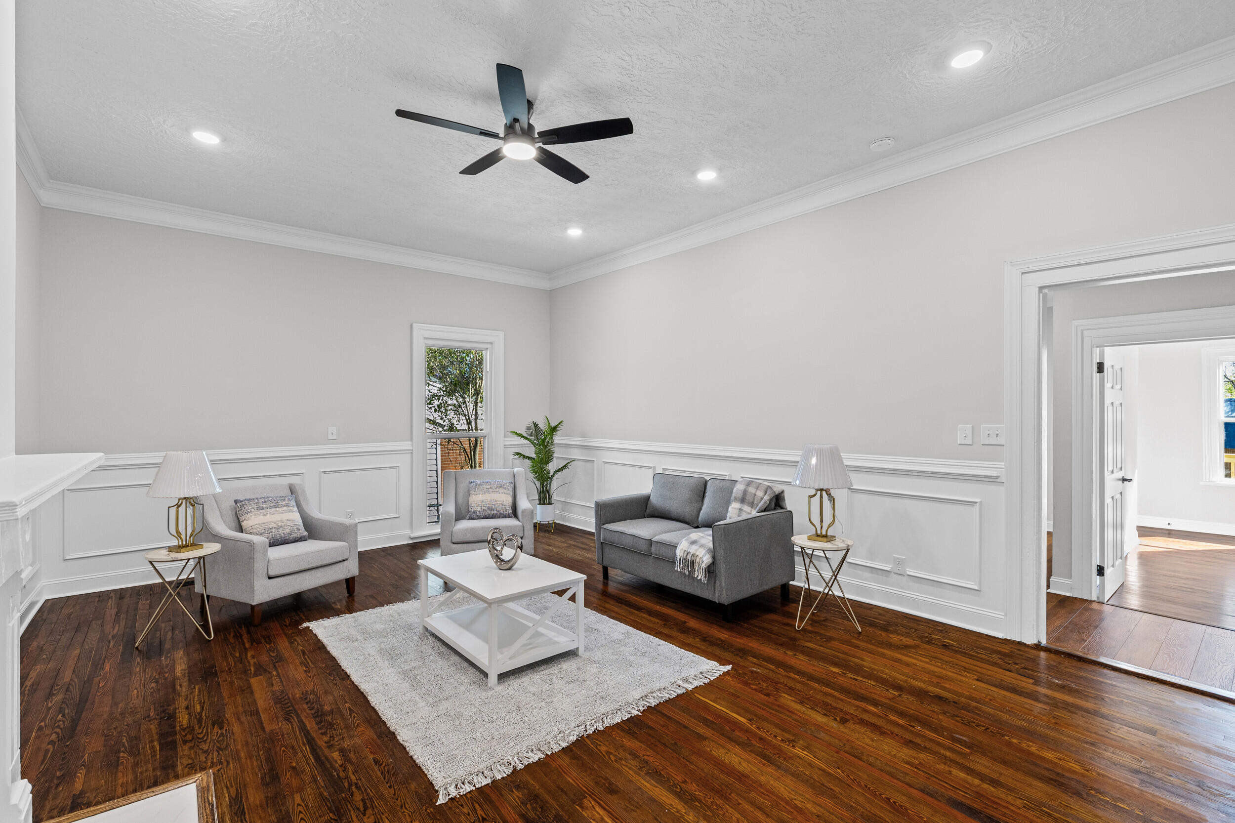 Welcome to 1232 Hickman Rd, where timeless historic charm meets a comprehensive modern renovation designed for today's lifestyle. From the moment you arrive, you will notice the character and craftsmanship that set this home apart, paired with thoughtful updates that provide comfort and peace of mind. Inside, you are greeted by beautifully resurfaced original hardwood floors that carry warmth and authenticity throughout the home, complemented by new laminate hardwood flooring in the kitchen and rear living areas for added durability and style. The interior has been completely refreshed with fresh paint throughout, updated trim, crown molding, and custom wainscoting in the foyer, living room, and dining room, creating a clean, elegant, and cohesive design. The kitchen has been carefully reimagined with quartz countertops, modified cabinetry for improved functionality, and an enhanced layout that makes both everyday living and entertaining more enjoyable. Both bathrooms have been fully remodeled with custom tile showers and new flooring, offering a modern, spa like feel. Major system and cosmetic upgrades include new windows throughout, LED lighting, updated fans and fixtures, new door hardware and hinges, new receptacles, and the removal of outdated popcorn ceilings replaced with a fresh, modern texture across the entire home. The living room has been completely redone to enhance both comfort and flow. Step outside to enjoy a brand new rear deck overlooking the backyard, perfect for relaxing or entertaining, along with a newly added side fence for added privacy and a large rear storage shed providing additional space for tools, equipment, or storage. This home is truly move in ready and offers the perfect balance of character, quality craftsmanship, and modern convenience, giving buyers confidence without sacrificing charm.