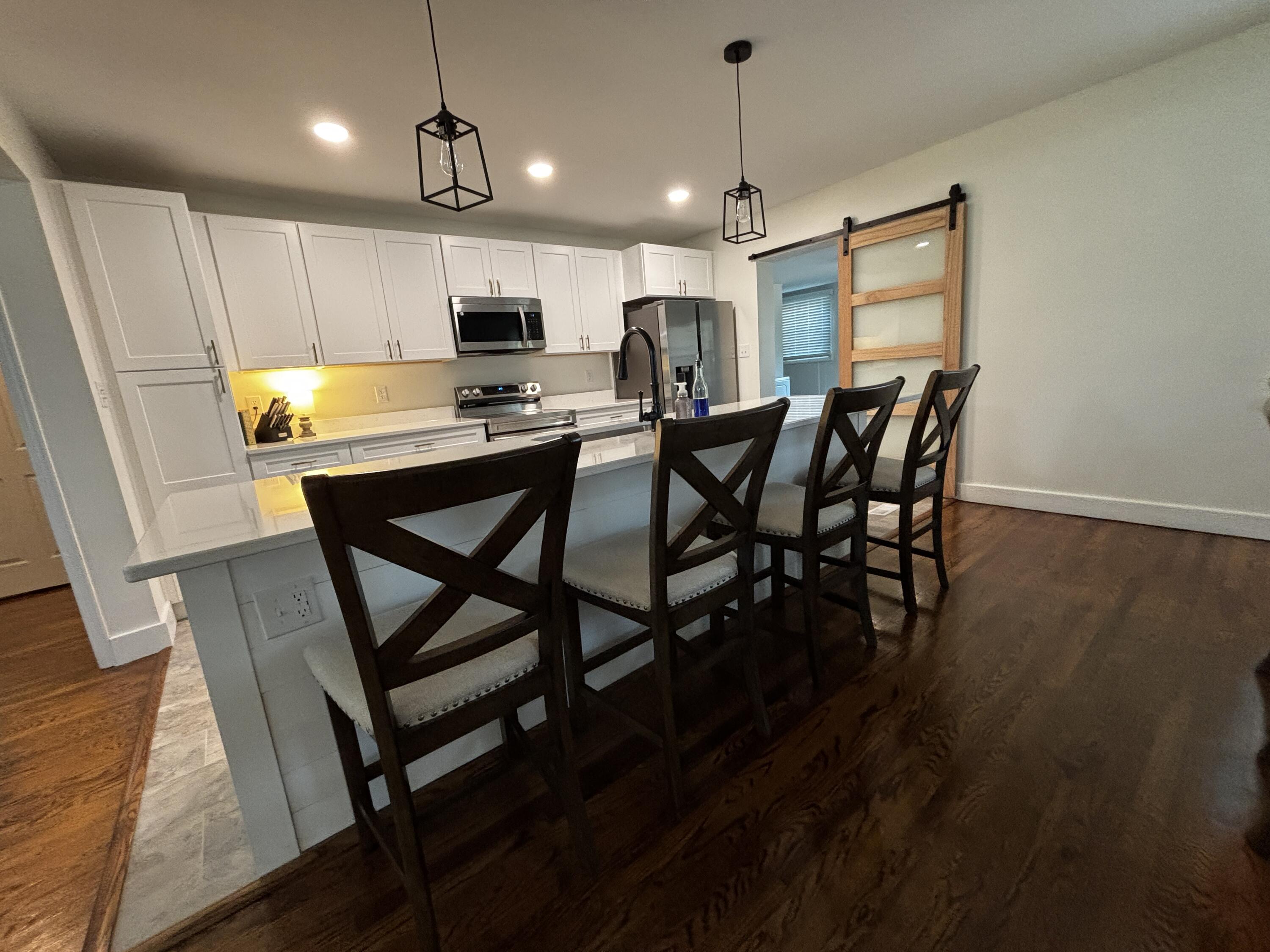Welcome to this beautifully renovated 1,707-square-foot home featuring an inviting open floor plan, three bedrooms, and two bathrooms. Thoughtfully refreshed with modern updates, this home still preserves its original charm--including a delightful vintage telephone cubby that adds a touch of character and nostalgia. The spacious primary suite offers a serene retreat with its stand-up shower, double vanity, and stunning light fixtures. One of the additional bedrooms features its own private entrance, making it ideal for guests, a home office, or an in-law setup. The open living area is warm and welcoming, highlighted by a beautiful fireplace adorned with a white mantle. The eat-in kitchen includes a large island perfect for morning moments, hosting friends, or gatherings filled with laughter. Custom cabinetry and stainless steel appliances complete this gorgeous space. A generously sized laundry room provides versatility--great for use as a mudroom or extra storage. Enjoy outdoor living with two separate porches, each adding charm and comfortable places to relax or entertain. With its blend of modern upgrades and preserved character, this home offers beauty, function, and timeless appeal.