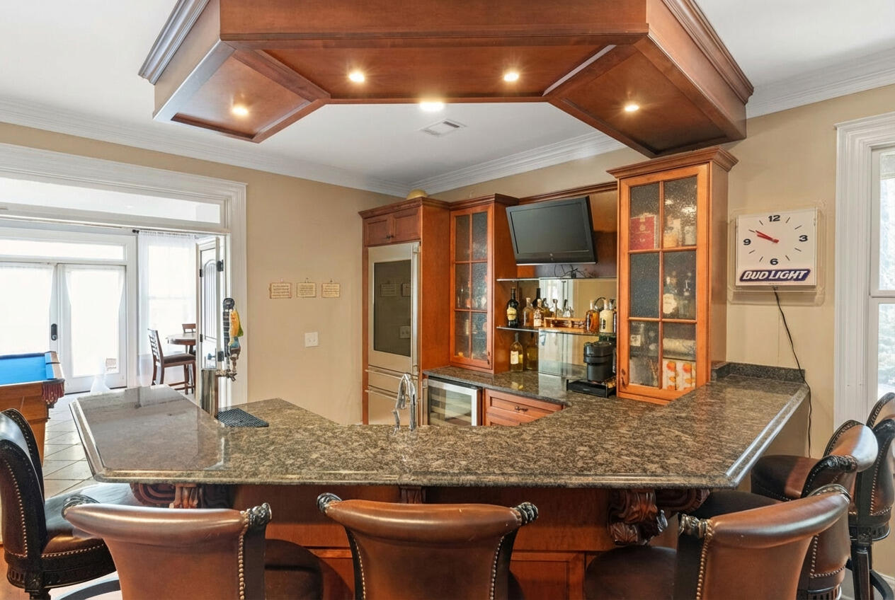 Imagine a home where everyone can be together without ever feeling crowded. Set on 3.2 acres with no HOA, this 2007 custom-built estate offers three separate living spaces, creating the perfect balance of connection, privacy, and resort-style living. With over 6,000 square feet, six bedrooms, and eight baths, this home provides exceptional flexibility for growing households, guests, or work-from-home needs. Begin your day on the rocking-chair front porch overlooking the tranquil koi pond, then step inside to a home where timeless craftsmanship meets everyday comfort. Hardwood floors, custom stonework, and built-in shelving create a warm, elevated feel throughout. At the center of the home, the chef's kitchen is built to bring people together featuring an oversized butcher block island perfect for casual mornings, family meals, and hosting on a grand scale. The natural flow into multiple living and entertaining spaces is enhanced by whole-home audio, a custom bar, and an area for a golf simulator, creating an environment where connection and relaxation come easily. A sunroom, screened porch extend the living experience and invite year-round enjoyment. The owner's suite offers a peaceful retreat with dual walk-in closets, a private balcony perfect for quiet evenings or a moment to recharge and a luxury primary bath with cathedral ceilings, wood beams, and a spacious walk-in shower. Outdoors, your private backyard transforms into a true destination complete with a pool, fully equipped outdoor kitchen, volleyball court, firepit, and beautifully landscaped surroundings with no neighbors in sight. Multigenerational living is seamlessly supported with a detached pool house and a remodeled one-bedroom apartment above the three-car garage. The apartment, with wide entryways and chair lift, is ideal for extended family, guests, or private quarters. Space to gather. Room to grow. A place to truly live. Schedule your private showing today.