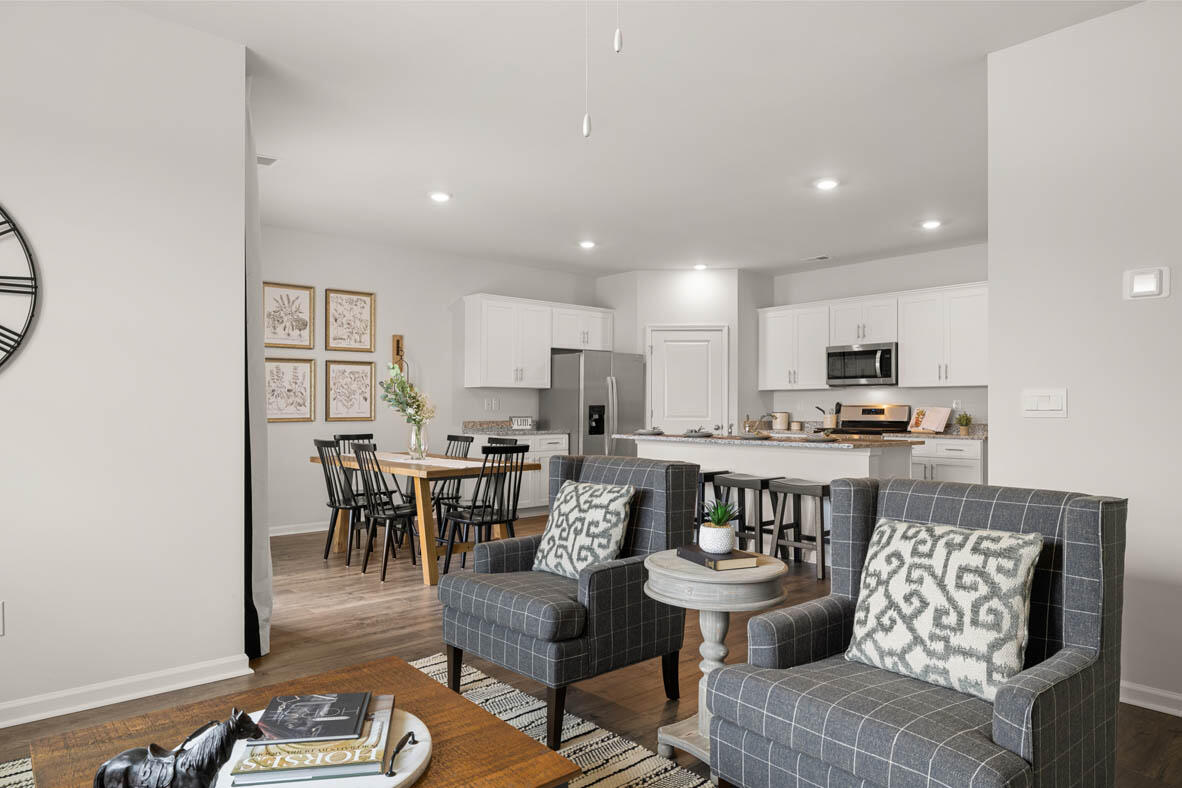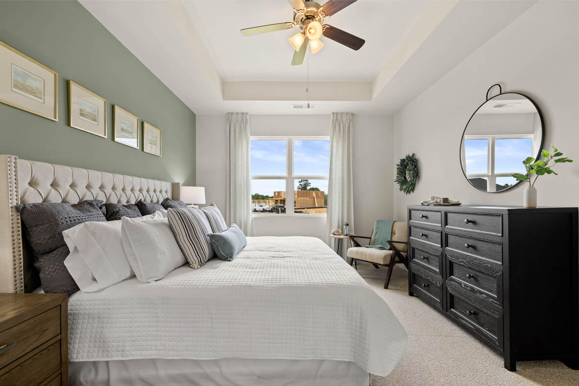 Enjoy the simplicity of single-story living with this spacious 4-bedroom Cali model, designed for comfort, convenience, and easy everyday living. Location: Located in Captain's Corner, you're just minutes from Gates 1 and 6 of Fort Eisenhower, Evans Towne Center Park, Augusta University, and the VA Medical Center, making this an ideal spot for both commuting and lifestyle access. Floor Plan: This thoughtfully designed ranch-style home features a large family room that flows seamlessly into the kitchen and dining area, creating an open and inviting space. The kitchen is centered around a deep, bar-stool-ready island and includes bright cabinetry with modern hardware and updated appliances, making it perfect for both daily use and entertaining. With four bedrooms, this home offers flexibility for families, guests, or a home office setup, all on one convenient level. Outdoor Living: Enjoy a built-in covered porch that extends your living space outdoors, ideal for relaxing or hosting. The home sits on a fully landscaped lot with an irrigation system, making it easy to maintain curb appeal year-round. Smart Home Features: This home includes the Safe Haven Smart Home technology package, allowing you to control the thermostat, front door lock, lighting, and video doorbell directly from your smartphone or through Alexa-enabled voice commands. Photos are for illustrative purposes only and may not reflect the actual home.