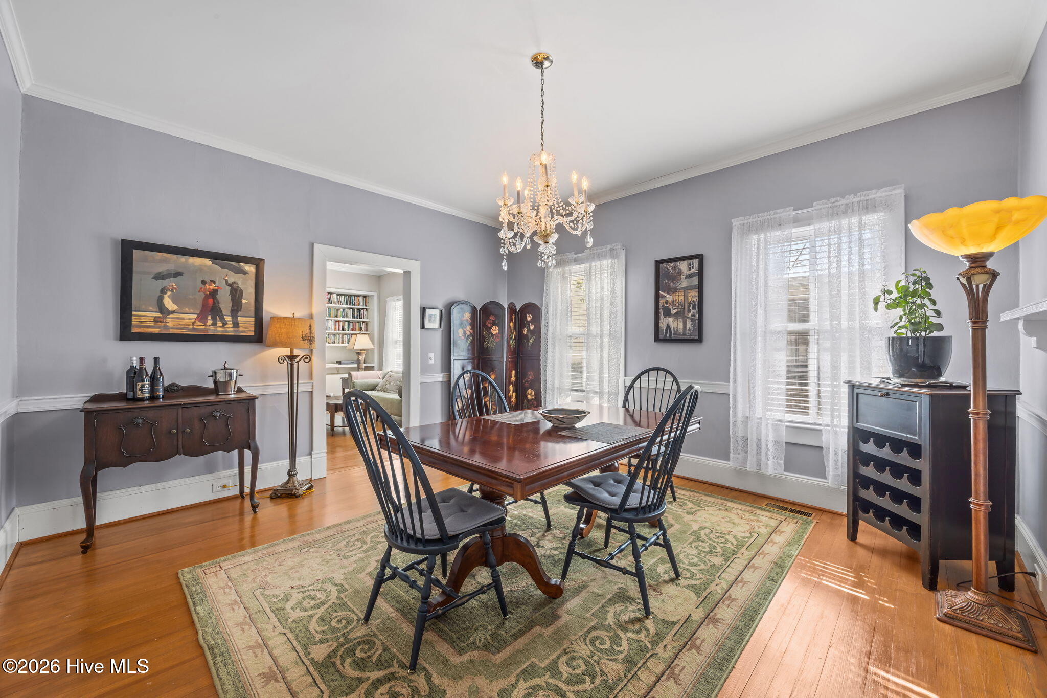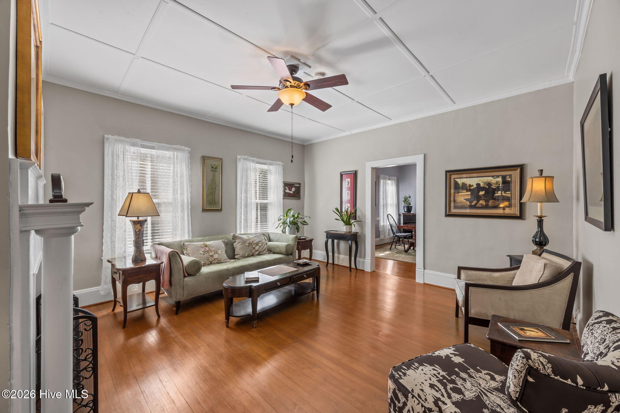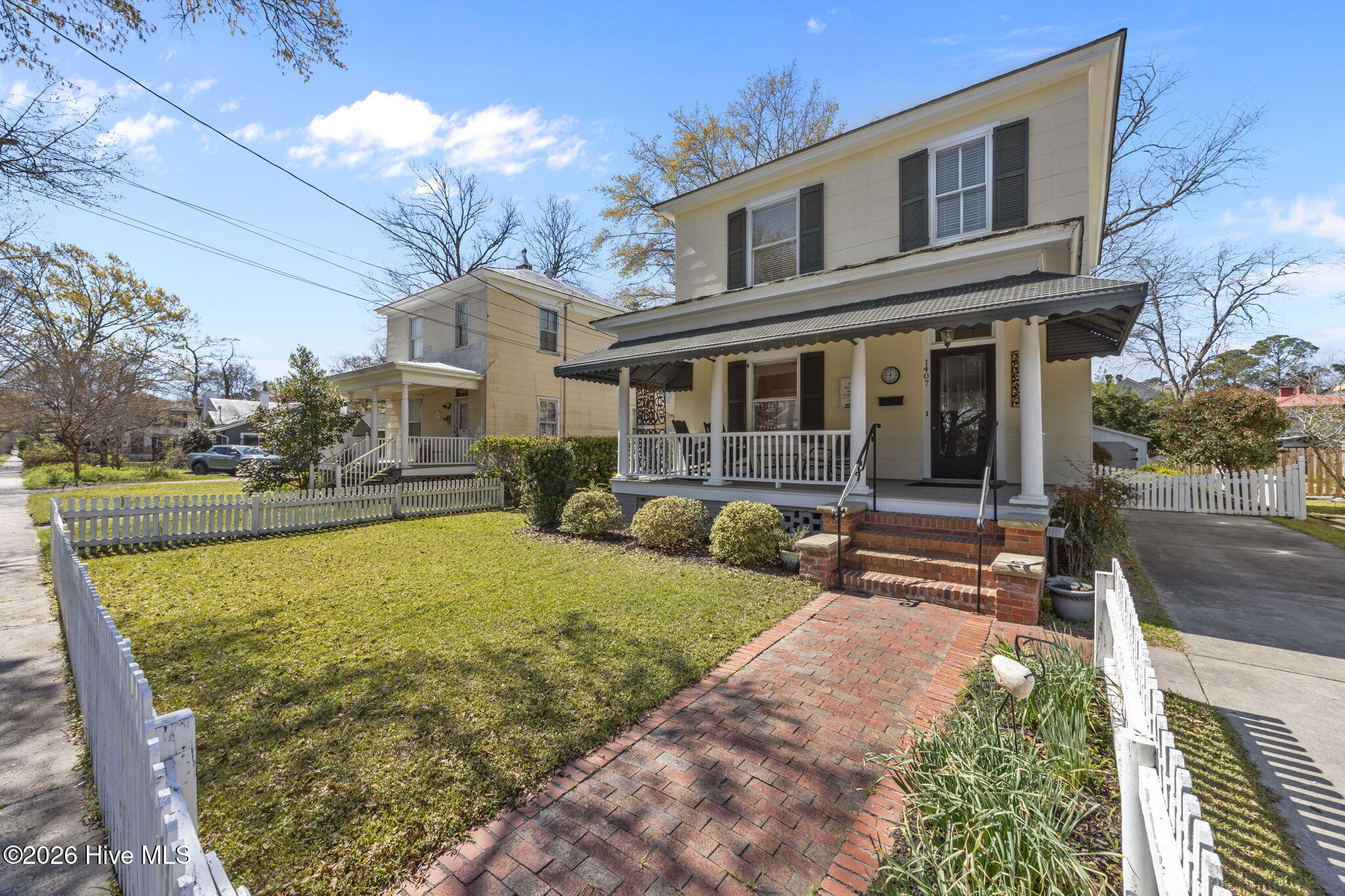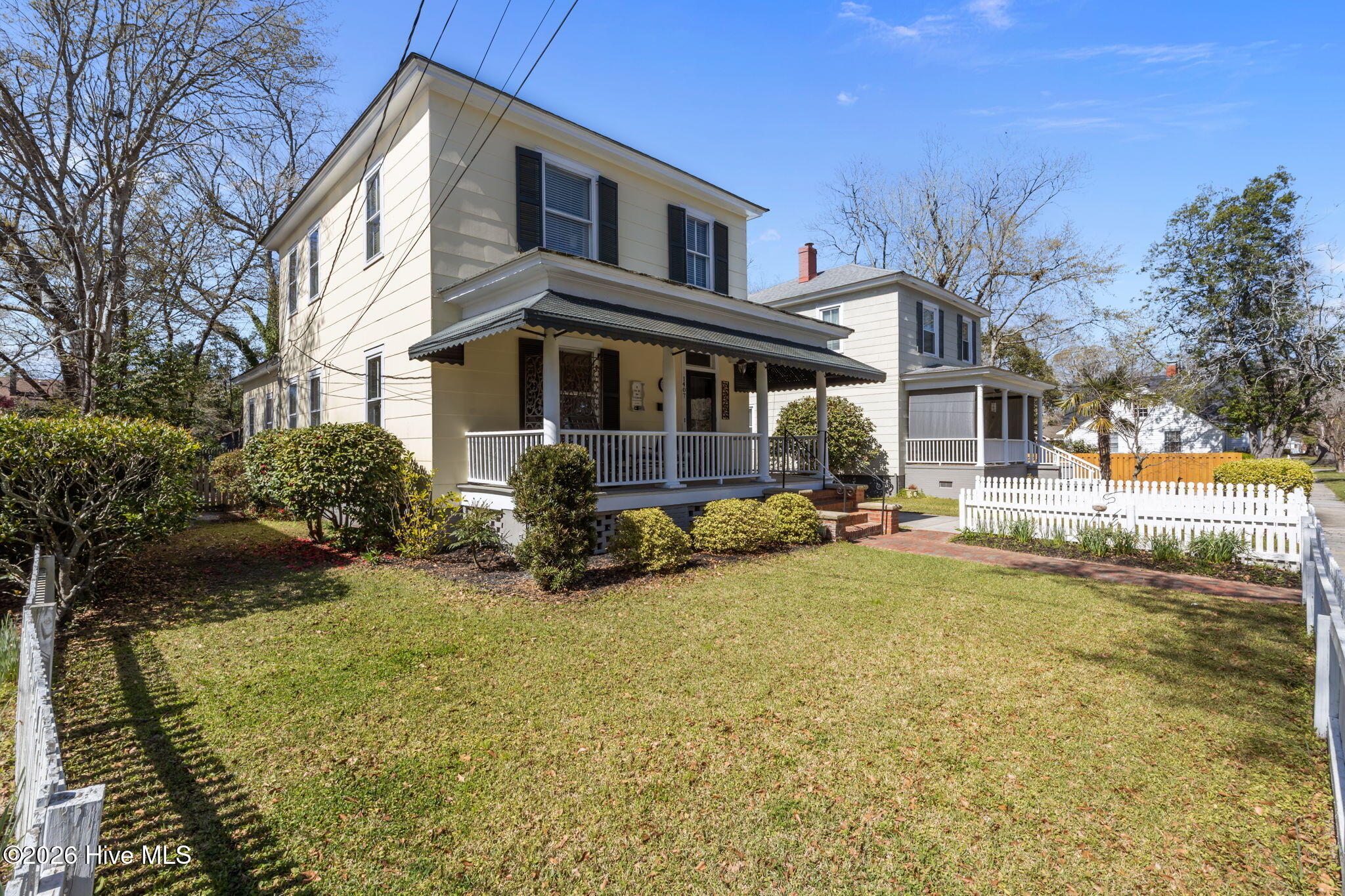 Experience the perfect blend of historic charm and modern comfort in the Turner-Pate House, a distinguished residence listed on the National Register of Historic Places. As one of the celebrated ''Three Sisters'' in New Bern's coveted Riverside neighborhood, this home offers a rare opportunity to own a piece of local legacy. A sprawling front porch welcomes you--the perfect perch for morning coffee. Inside, the home shines with original hardwood floors, ornate crown molding, and exquisite period trim. Living Room: Features built-in bookshelves and a decorative fireplace with a stunning period mantle. Dining & Kitchen: An expansive formal dining room flows seamlessly into the kitchen, which boasts new countertops, new appliances, and abundant cabinetry. Flex Space: A sun-drenched room off the kitchen serves as a den or home office, leading directly to the newly screened rear porch. This Beautiful Home has been Restored for Modern Living.Extensive updates ensure peace of mind without sacrificing character: Infrastructure: New gas furnace, all-new ductwork, and updated electrical/lighting throughout (including 12+ new outlets upstairs). Primary Suite: The spacious first-floor primary bedroom now features new custom storage closets. Bathrooms: The main floor bath includes a new linen closet, while the second-floor bath features a brand-new tiled walk-in shower. Flexible Upper Level The second floor offers two large, sunny bedrooms plus a versatile third room--perfect as a nursery, craft room, or additional sleeping quarters. Outdoor Oasis: The deep, lushly landscaped backyard is fully fenced, offering a private retreat. Beyond the off-street driveway, you'll find a 306 sq. ft. workshop/storage building plus an additional garden shed. Located just steps from the riverfront and minutes from the vibrant dining, shopping, and festivals of historic downtown New Bern, the Turner-Pate House is ready for its next chapter.