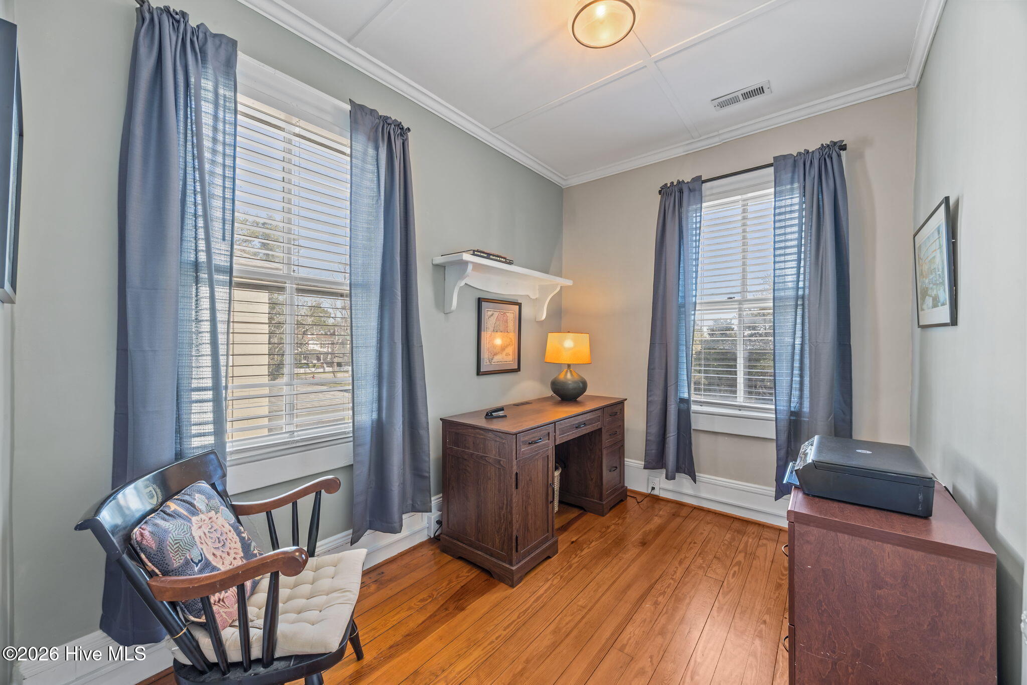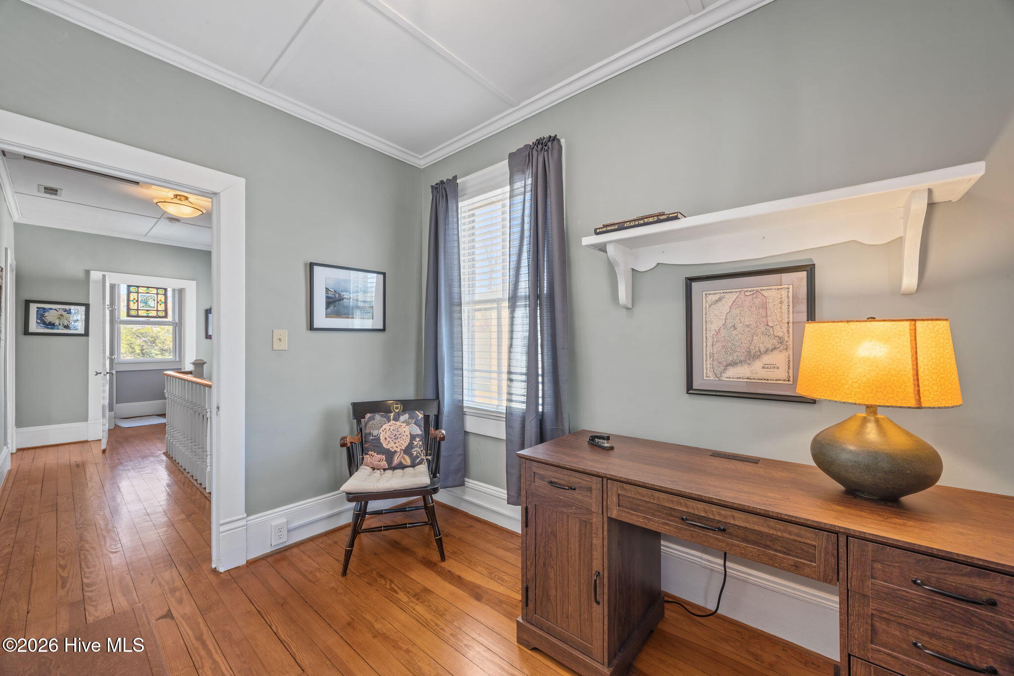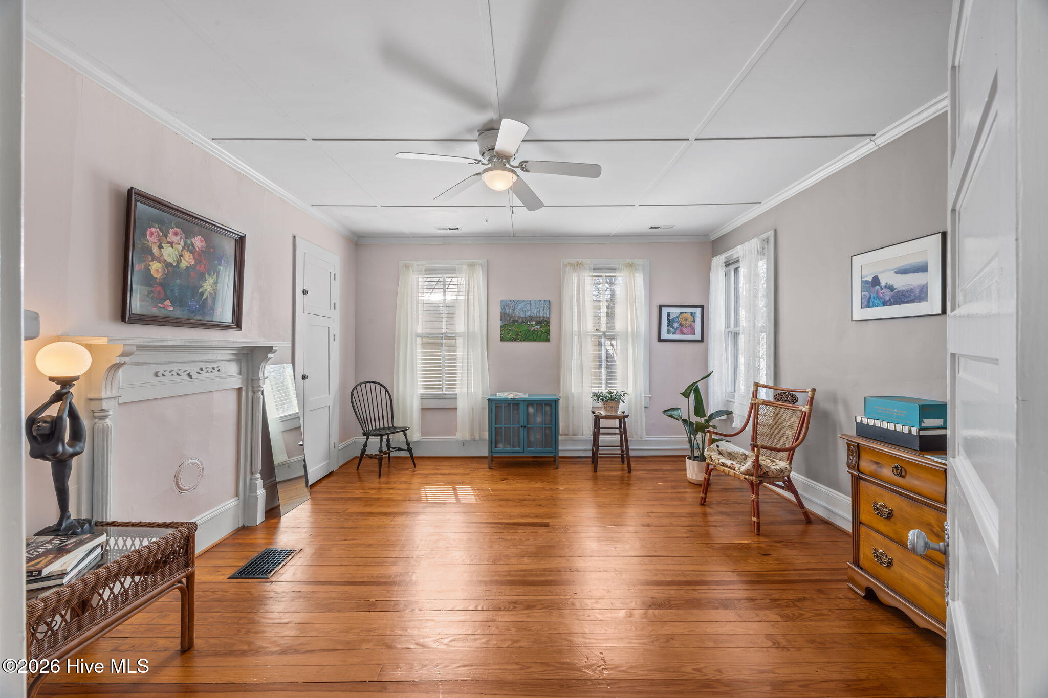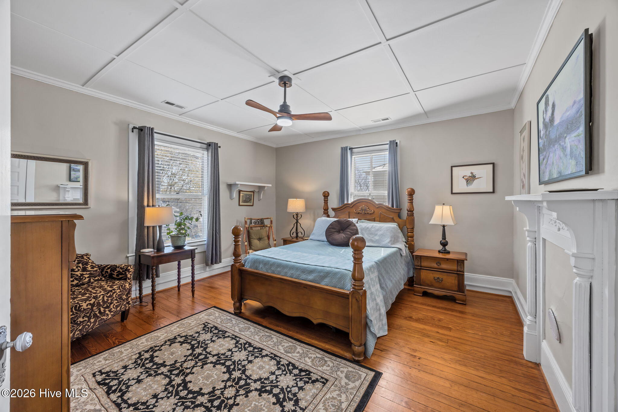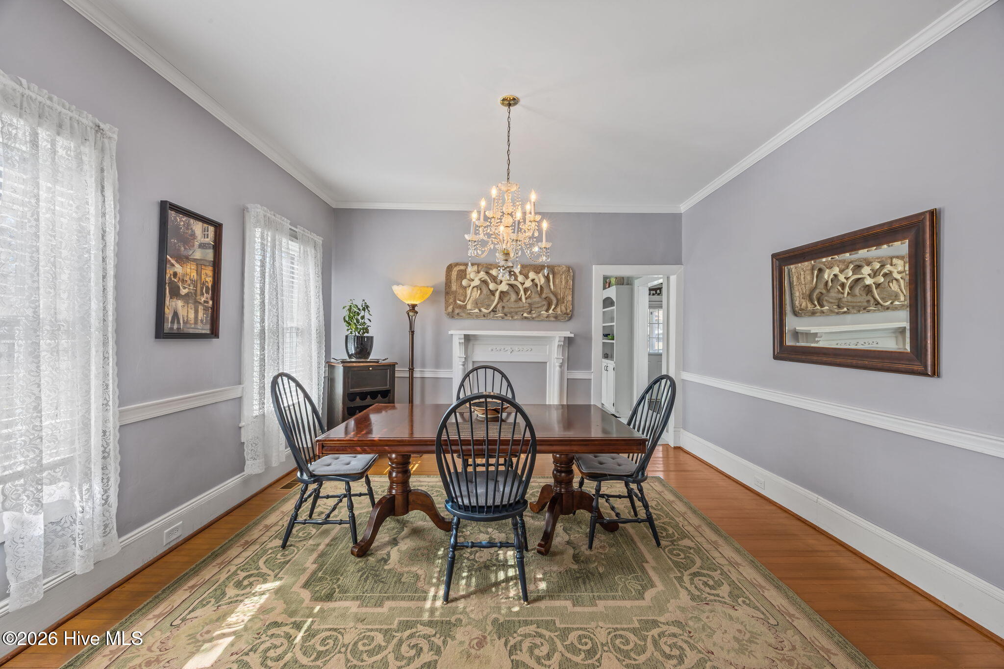Experience the perfect blend of historic charm and modern comfort in the Turner-Pate House, a distinguished residence listed on the National Register of Historic Places. As one of the celebrated ''Three Sisters'' in New Bern's coveted Riverside neighborhood, this home offers a rare opportunity to own a piece of local legacy. A sprawling front porch welcomes you--the perfect perch for morning coffee. Inside, the home shines with original hardwood floors, ornate crown molding, and exquisite period trim. Living Room: Features built-in bookshelves and a decorative fireplace with a stunning period mantle. Dining & Kitchen: An expansive formal dining room flows seamlessly into the kitchen, which boasts new countertops, new appliances, and abundant cabinetry. Flex Space: A sun-drenched room off the kitchen serves as a den or home office, leading directly to the newly screened rear porch. This Beautiful Home has been Restored for Modern Living.Extensive updates ensure peace of mind without sacrificing character: Infrastructure: New gas furnace, all-new ductwork, and updated electrical/lighting throughout (including 12+ new outlets upstairs). Primary Suite: The spacious first-floor primary bedroom now features new custom storage closets. Bathrooms: The main floor bath includes a new linen closet, while the second-floor bath features a brand-new tiled walk-in shower. Flexible Upper Level The second floor offers two large, sunny bedrooms plus a versatile third room--perfect as a nursery, craft room, or additional sleeping quarters. Outdoor Oasis: The deep, lushly landscaped backyard is fully fenced, offering a private retreat. Beyond the off-street driveway, you'll find a 306 sq. ft. workshop/storage building plus an additional garden shed. Located just steps from the riverfront and minutes from the vibrant dining, shopping, and festivals of historic downtown New Bern, the Turner-Pate House is ready for its next chapter.
