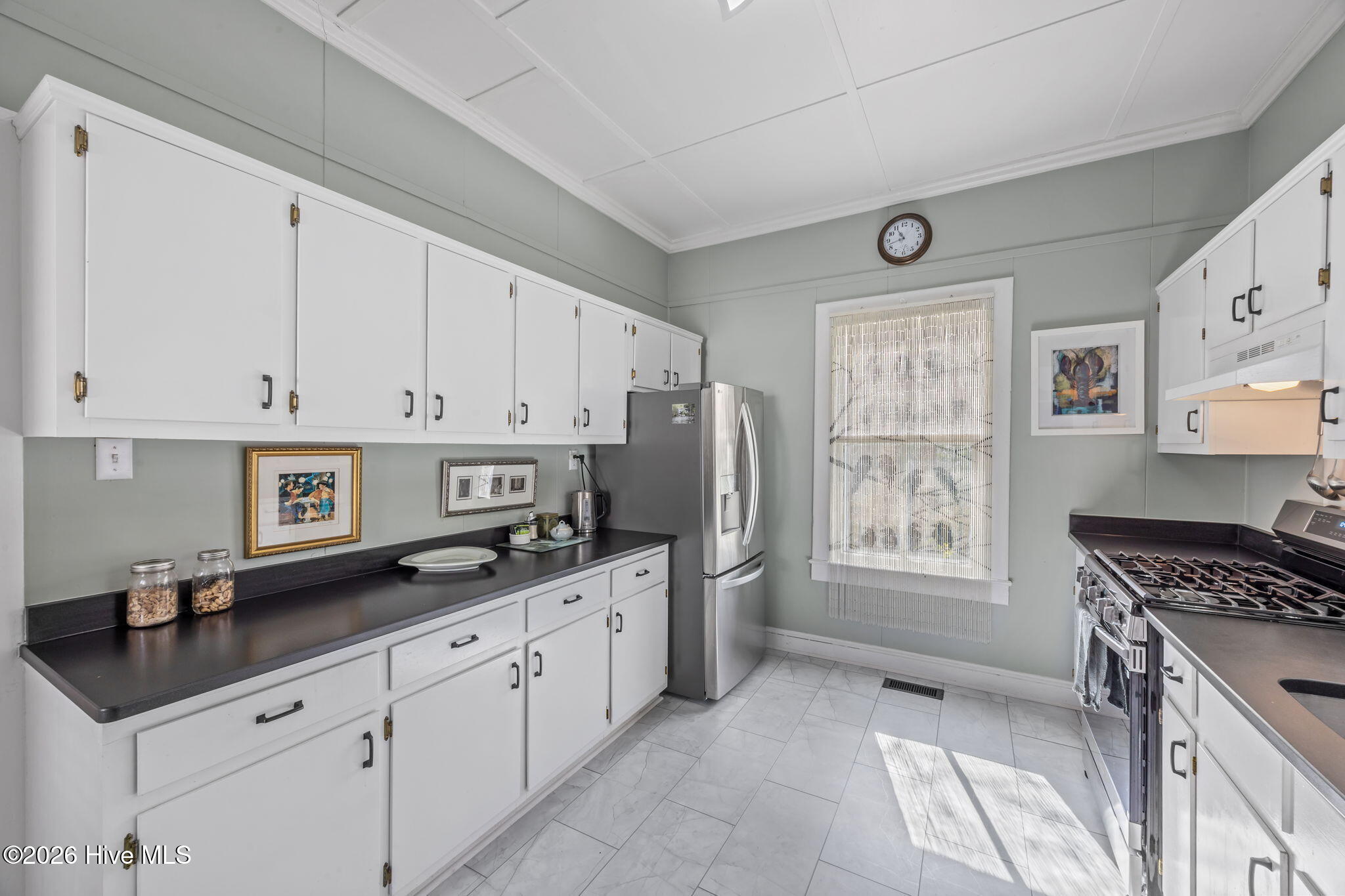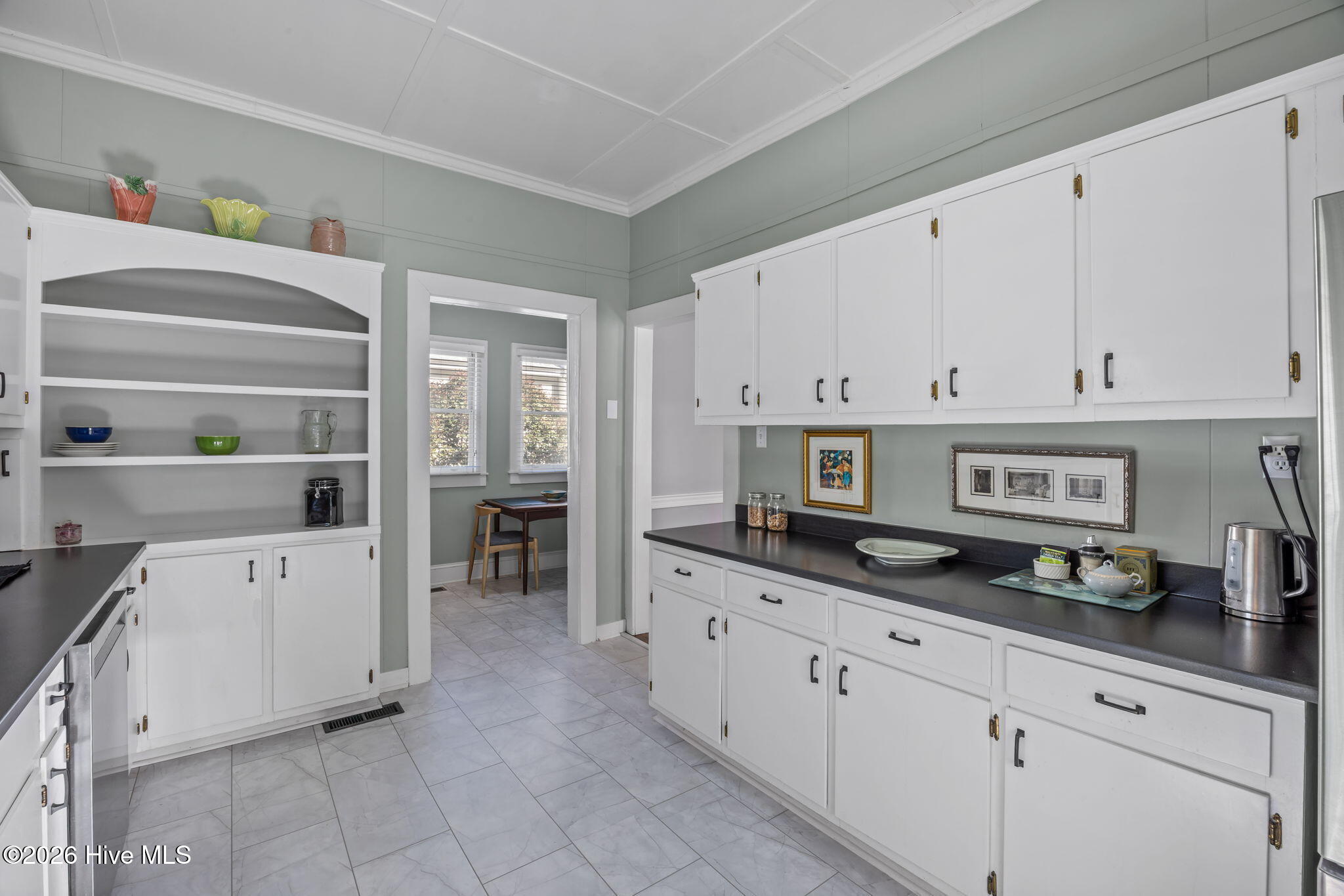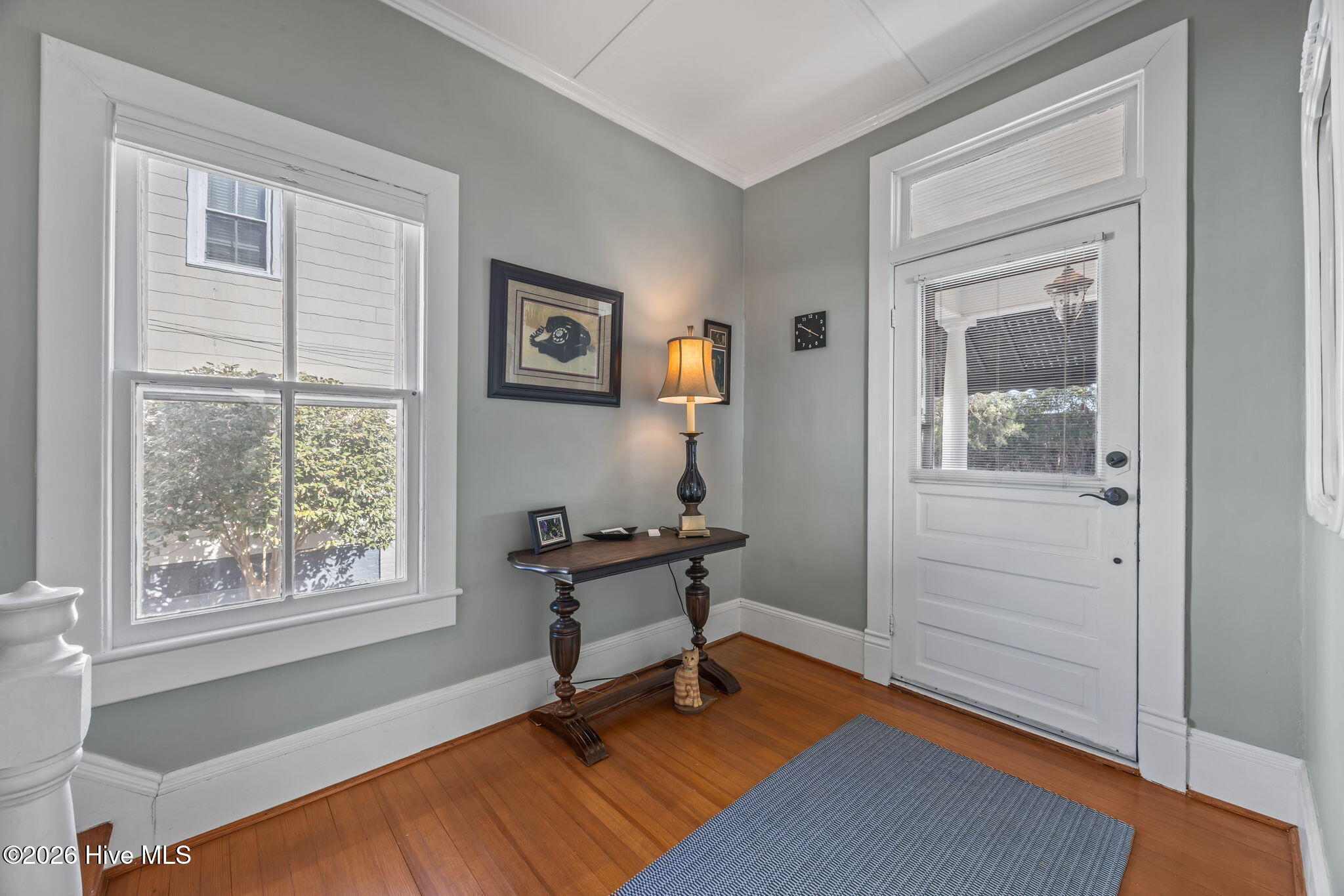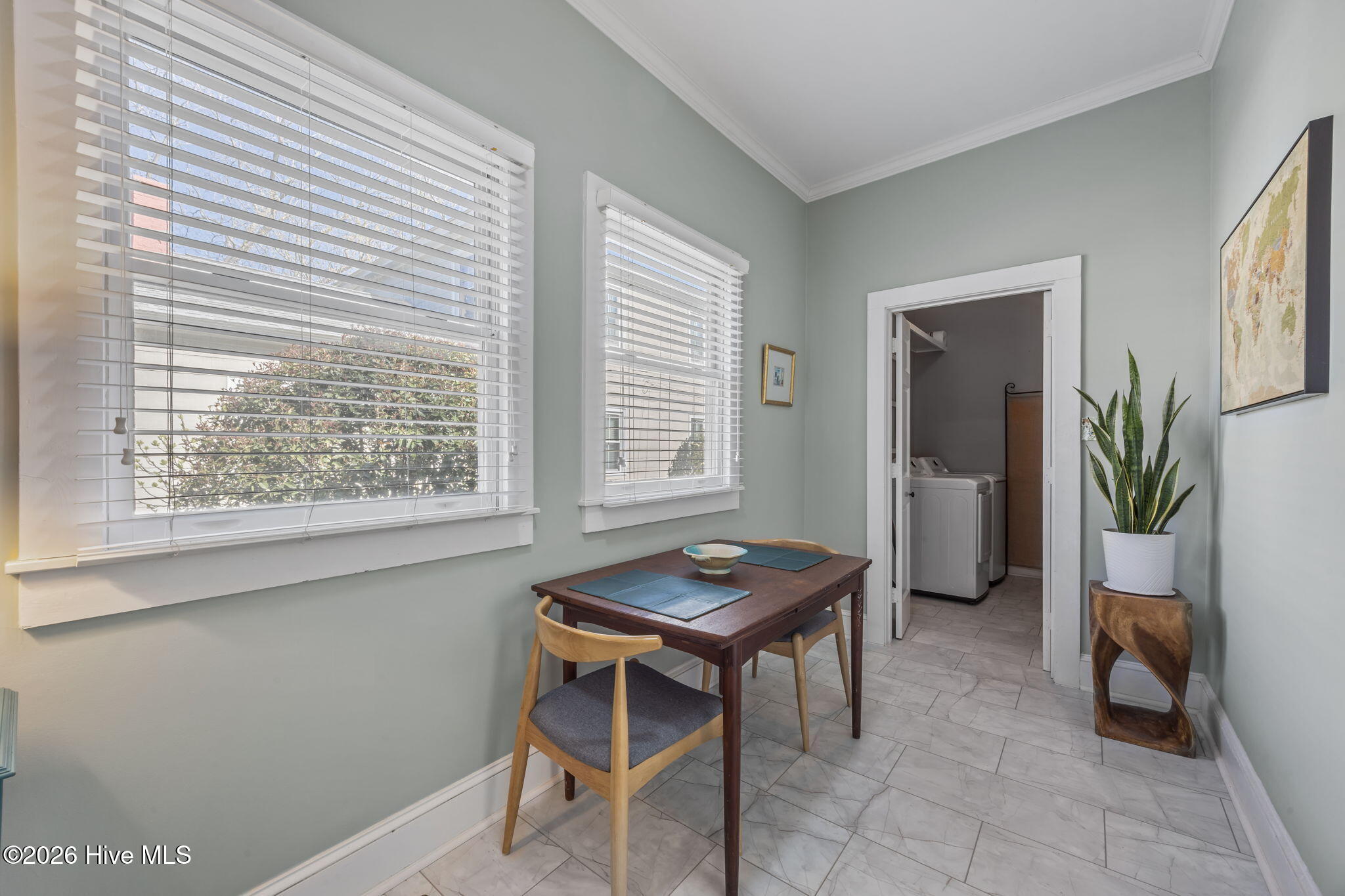 Experience the perfect blend of historic charm and modern comfort in the Turner-Pate House, a distinguished residence listed on the National Register of Historic Places. As one of the celebrated ''Three Sisters'' in New Bern's coveted Riverside neighborhood, this home offers a rare opportunity to own a piece of local legacy. A sprawling front porch welcomes you--the perfect perch for morning coffee. Inside, the home shines with original hardwood floors, ornate crown molding, and exquisite period trim. Living Room: Features built-in bookshelves and a decorative fireplace with a stunning period mantle. Dining & Kitchen: An expansive formal dining room flows seamlessly into the kitchen, which boasts new countertops, new appliances, and abundant cabinetry. Flex Space: A sun-drenched room off the kitchen serves as a den or home office, leading directly to the newly screened rear porch. This Beautiful Home has been Restored for Modern Living.Extensive updates ensure peace of mind without sacrificing character: Infrastructure: New gas furnace, all-new ductwork, and updated electrical/lighting throughout (including 12+ new outlets upstairs). Primary Suite: The spacious first-floor primary bedroom now features new custom storage closets. Bathrooms: The main floor bath includes a new linen closet, while the second-floor bath features a brand-new tiled walk-in shower. Flexible Upper Level The second floor offers two large, sunny bedrooms plus a versatile third room--perfect as a nursery, craft room, or additional sleeping quarters. Outdoor Oasis: The deep, lushly landscaped backyard is fully fenced, offering a private retreat. Beyond the off-street driveway, you'll find a 306 sq. ft. workshop/storage building plus an additional garden shed. Located just steps from the riverfront and minutes from the vibrant dining, shopping, and festivals of historic downtown New Bern, the Turner-Pate House is ready for its next chapter.