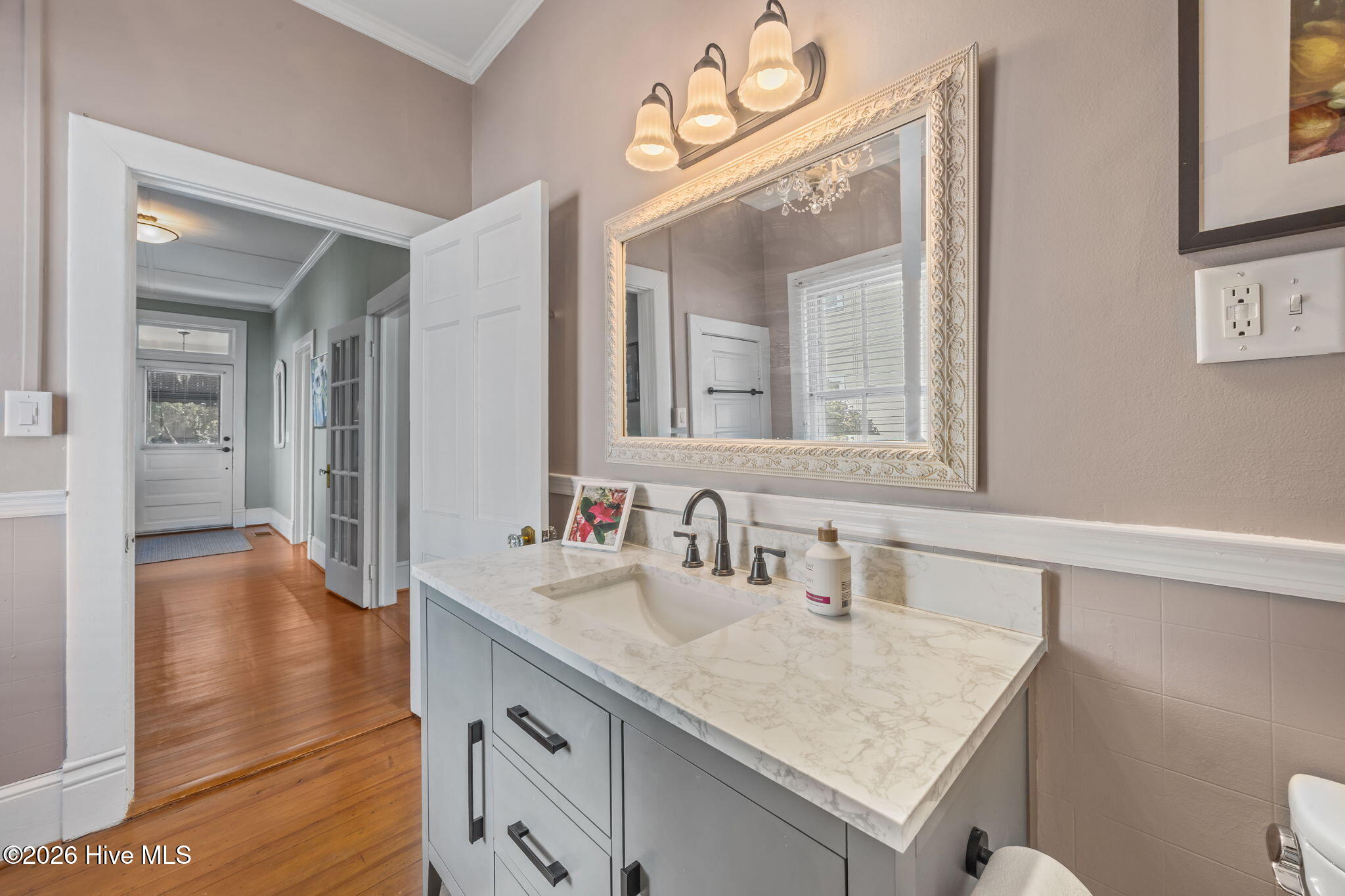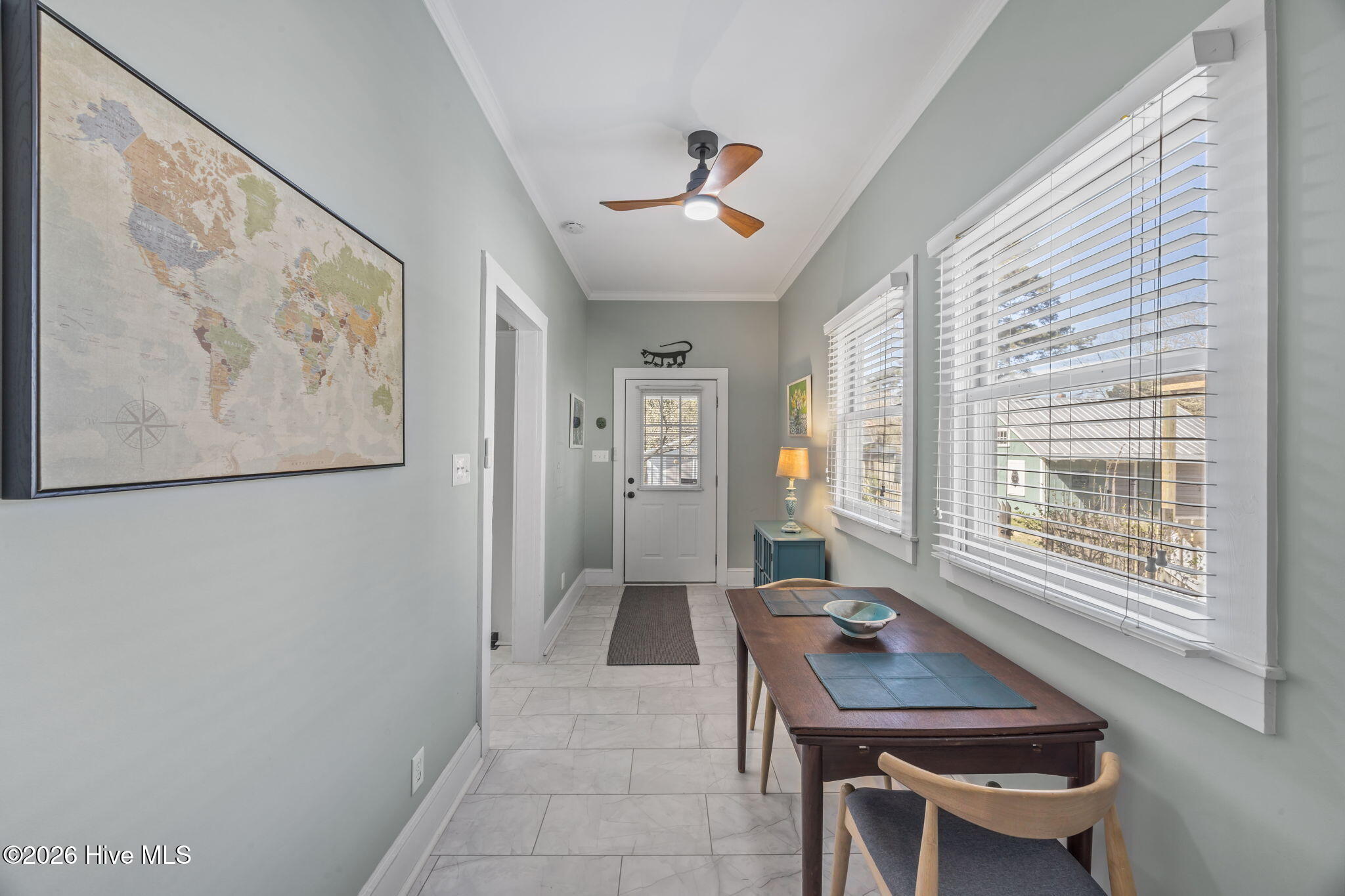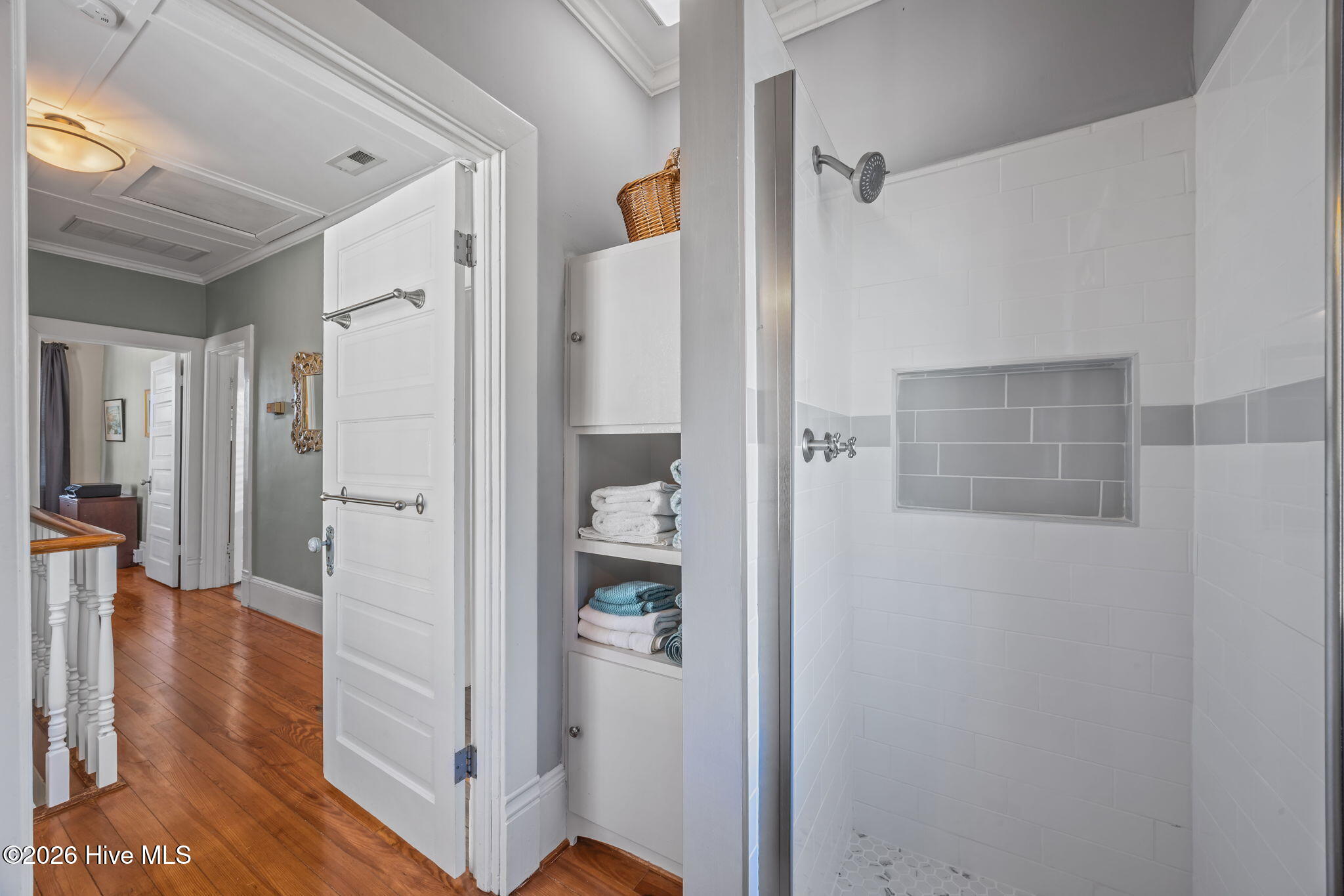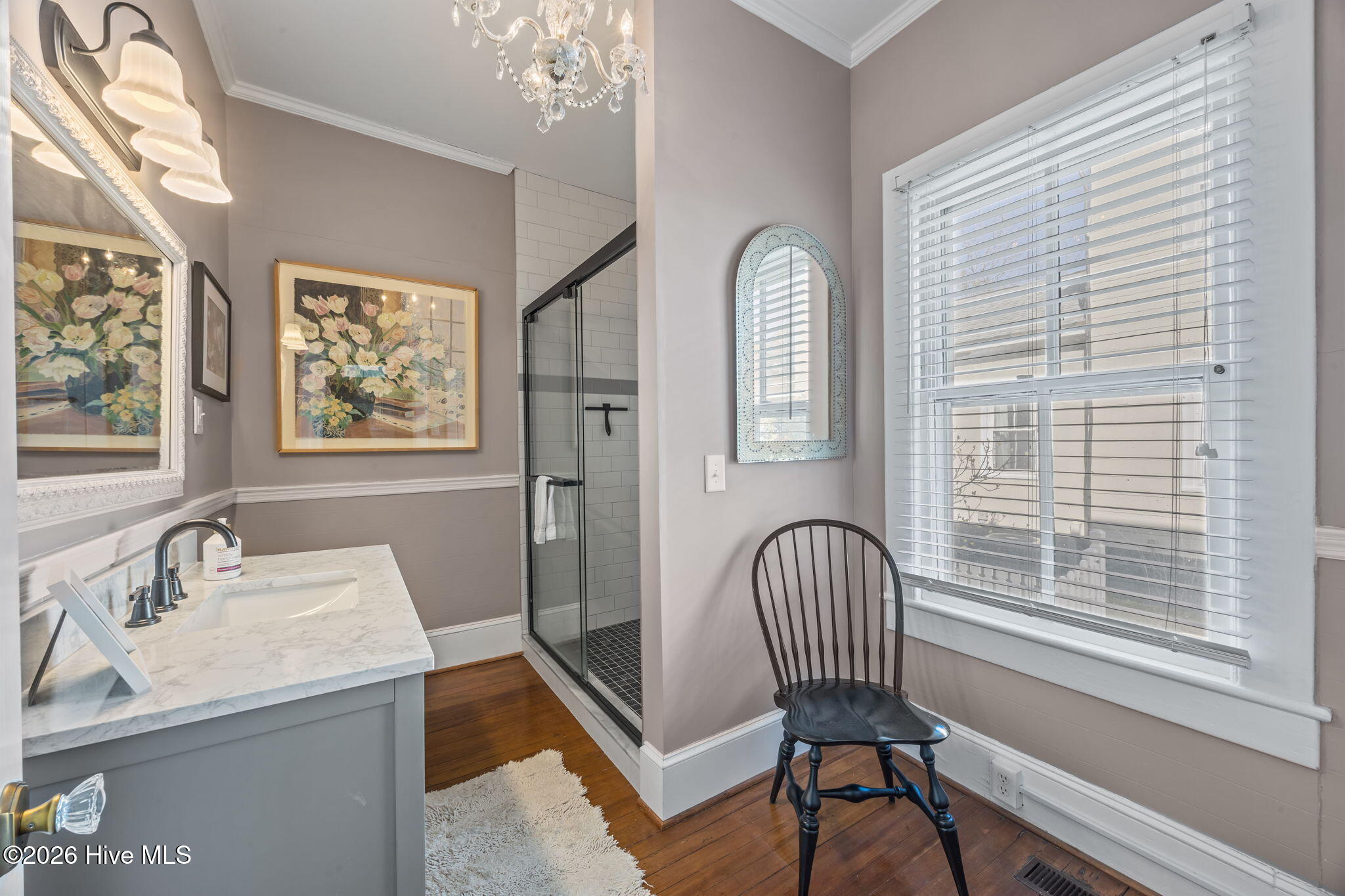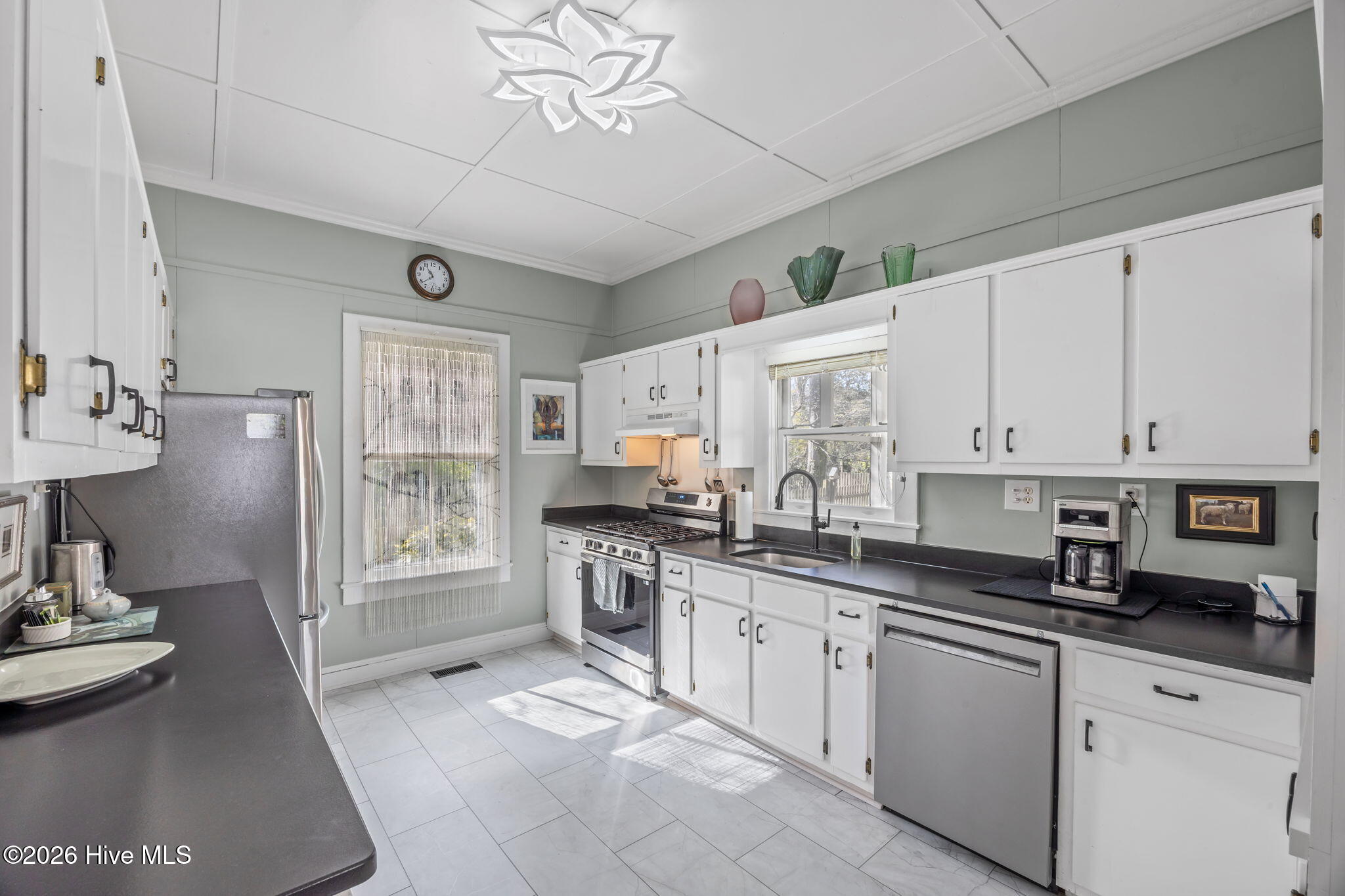 Experience the perfect blend of historic charm and modern comfort in the Turner-Pate House, a distinguished residence listed on the National Register of Historic Places. As one of the celebrated ''Three Sisters'' in New Bern's coveted Riverside neighborhood, this home offers a rare opportunity to own a piece of local legacy. A sprawling front porch welcomes you--the perfect perch for morning coffee. Inside, the home shines with original hardwood floors, ornate crown molding, and exquisite period trim. Living Room: Features built-in bookshelves and a decorative fireplace with a stunning period mantle. Dining & Kitchen: An expansive formal dining room flows seamlessly into the kitchen, which boasts new countertops, new appliances, and abundant cabinetry. Flex Space: A sun-drenched room off the kitchen serves as a den or home office, leading directly to the newly screened rear porch. This Beautiful Home has been Restored for Modern Living.Extensive updates ensure peace of mind without sacrificing character: Infrastructure: New gas furnace, all-new ductwork, and updated electrical/lighting throughout (including 12+ new outlets upstairs). Primary Suite: The spacious first-floor primary bedroom now features new custom storage closets. Bathrooms: The main floor bath includes a new linen closet, while the second-floor bath features a brand-new tiled walk-in shower. Flexible Upper Level The second floor offers two large, sunny bedrooms plus a versatile third room--perfect as a nursery, craft room, or additional sleeping quarters. Outdoor Oasis: The deep, lushly landscaped backyard is fully fenced, offering a private retreat. Beyond the off-street driveway, you'll find a 306 sq. ft. workshop/storage building plus an additional garden shed. Located just steps from the riverfront and minutes from the vibrant dining, shopping, and festivals of historic downtown New Bern, the Turner-Pate House is ready for its next chapter.