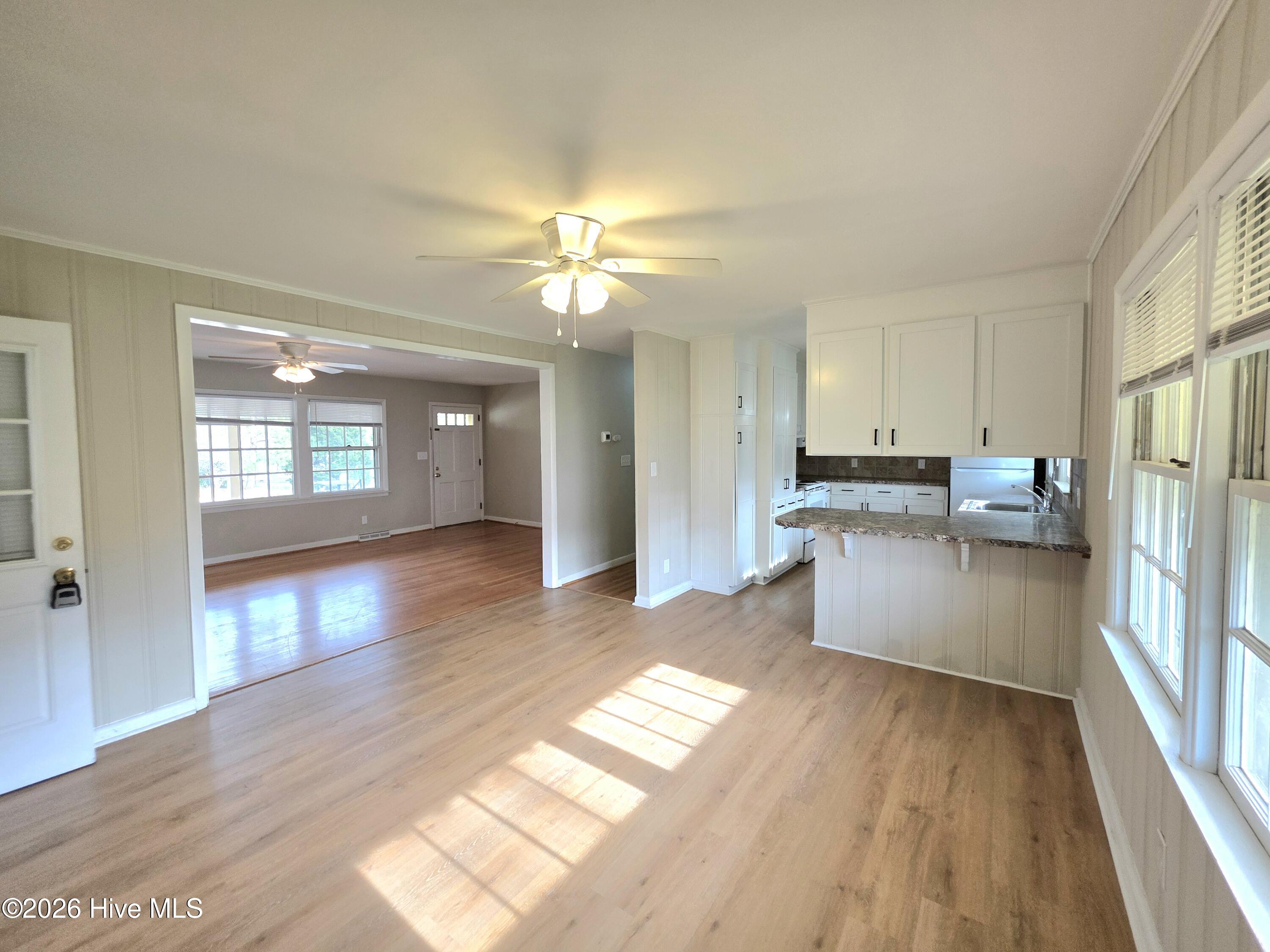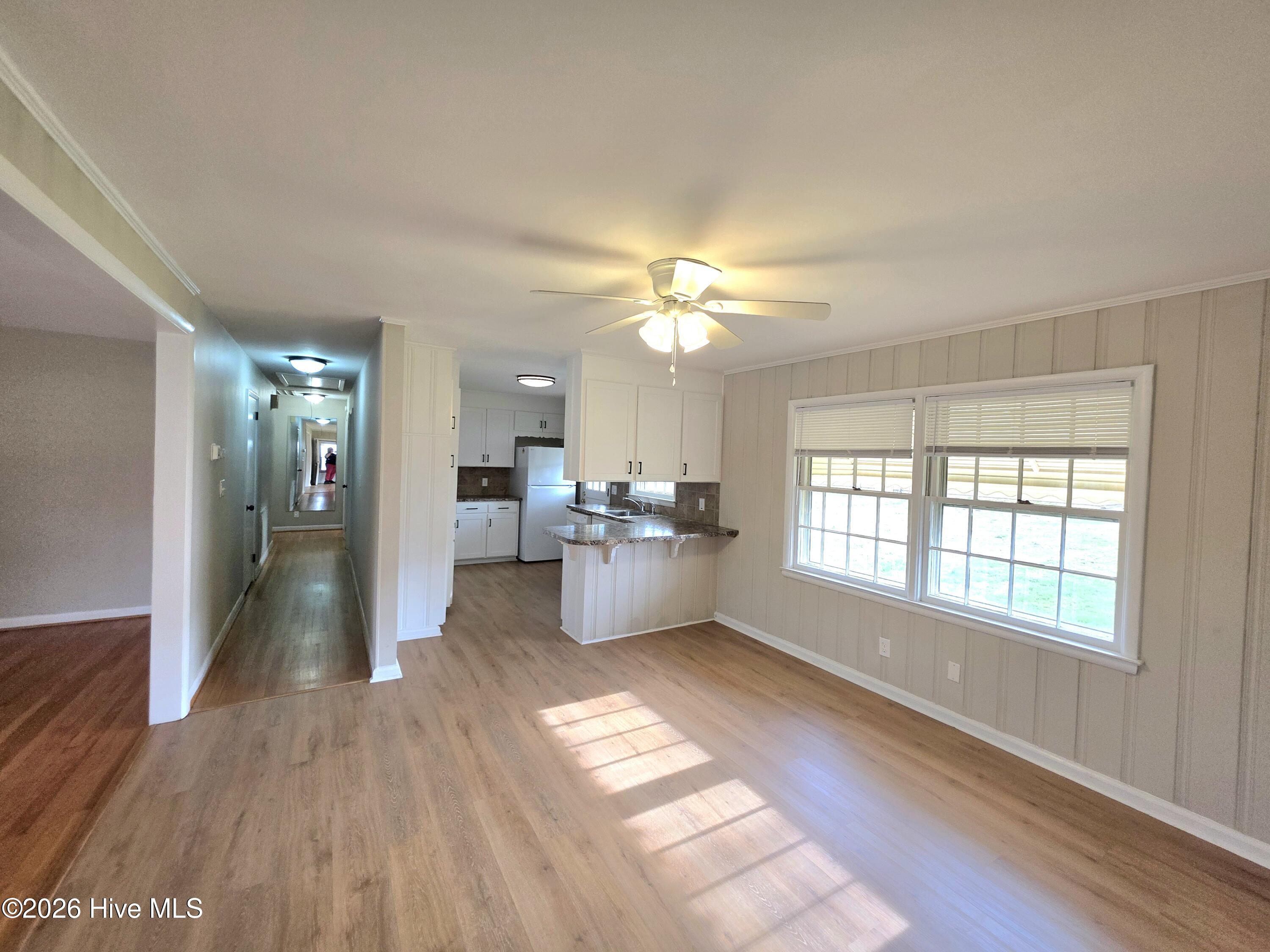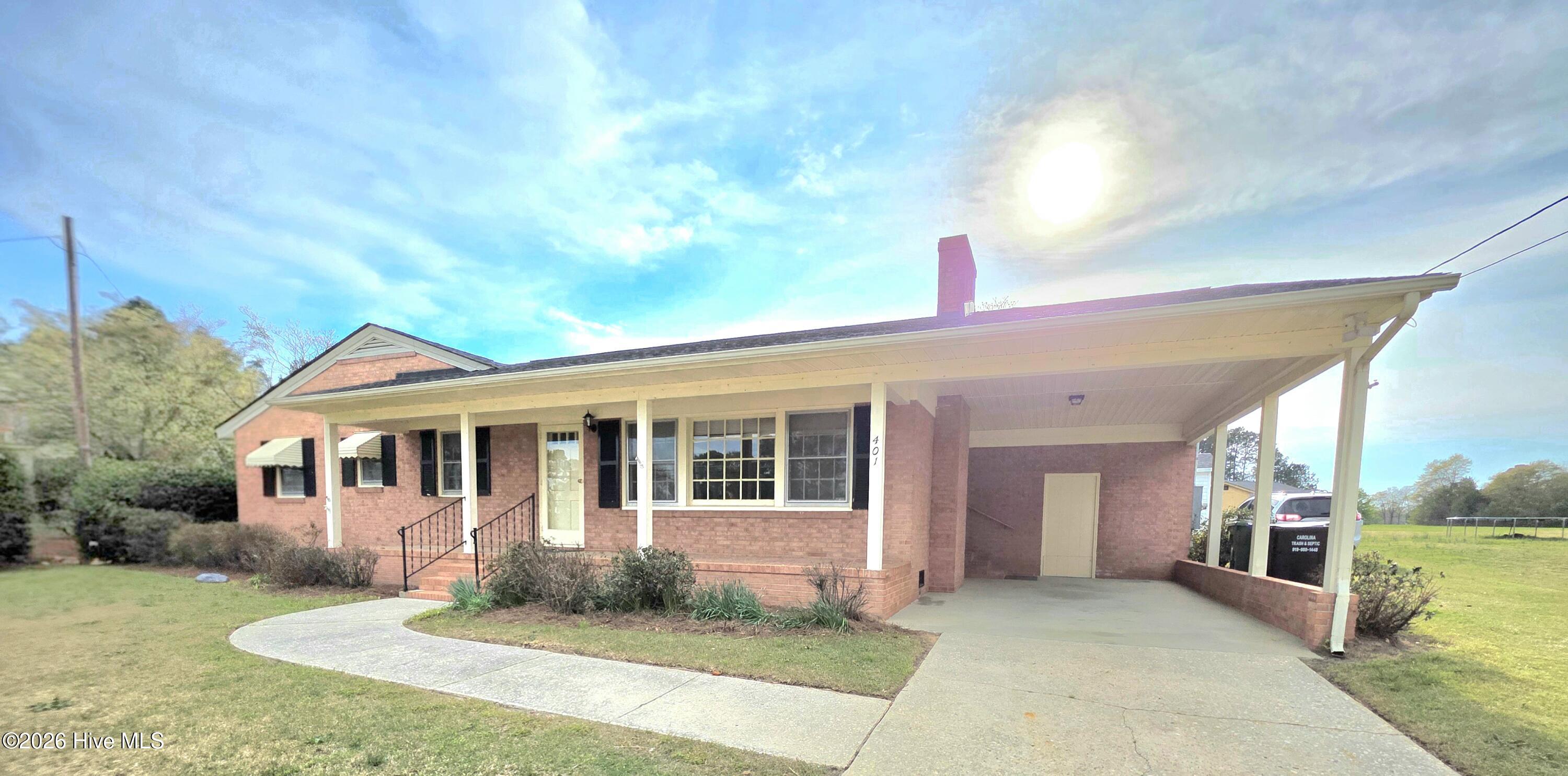 Welcome home to this charming 3-bedroom, 2-bath ranch built, nestled on a generous 0.33-acre lot just steps from downtown Benson. Step inside to discover a spacious floorplan featuring approximately 1428 sq ft of comfortable living space. Beautiful hardwood floors throughout most of house. LVP in kitchen and dining. The heart of the home includes a welcoming living area that flows into the kitchen and dining space -- ideal for everyday living and entertaining alike. Additional highlights: All kitchen appliances (brand new refrigerator) and the workshop convey with the home. Attic fan, storm windows, covered front porch, brand new hvac and duct work, almost new water heater, new plumbing connection has been done from house to street, large workshop, Roof 2022, brick veneer for easy maintenance, huge utility room with sink, shelving and cabinets, new cabinet door fronts in kitchen and laundry, charming tiled bathrooms with spacious vanities. Walk-in shower, Combo tub-shower, floored attic with lots of storage, fireplace with propane line hookup. No HOA -- giving you the freedom and flexibility of home-ownership without extra restrictions. The home sits in the well-loved town of Benson, NC -- known for its friendly community and easy access to major routes for commuting or day trips. This home blends practical modern comfort with a backyard setup that's built for fun. Whether you're seeking your next chapter, downsizing, or looking for a stylish first home, 401 N Lincoln St offers both space and ease of living. Come see it today!