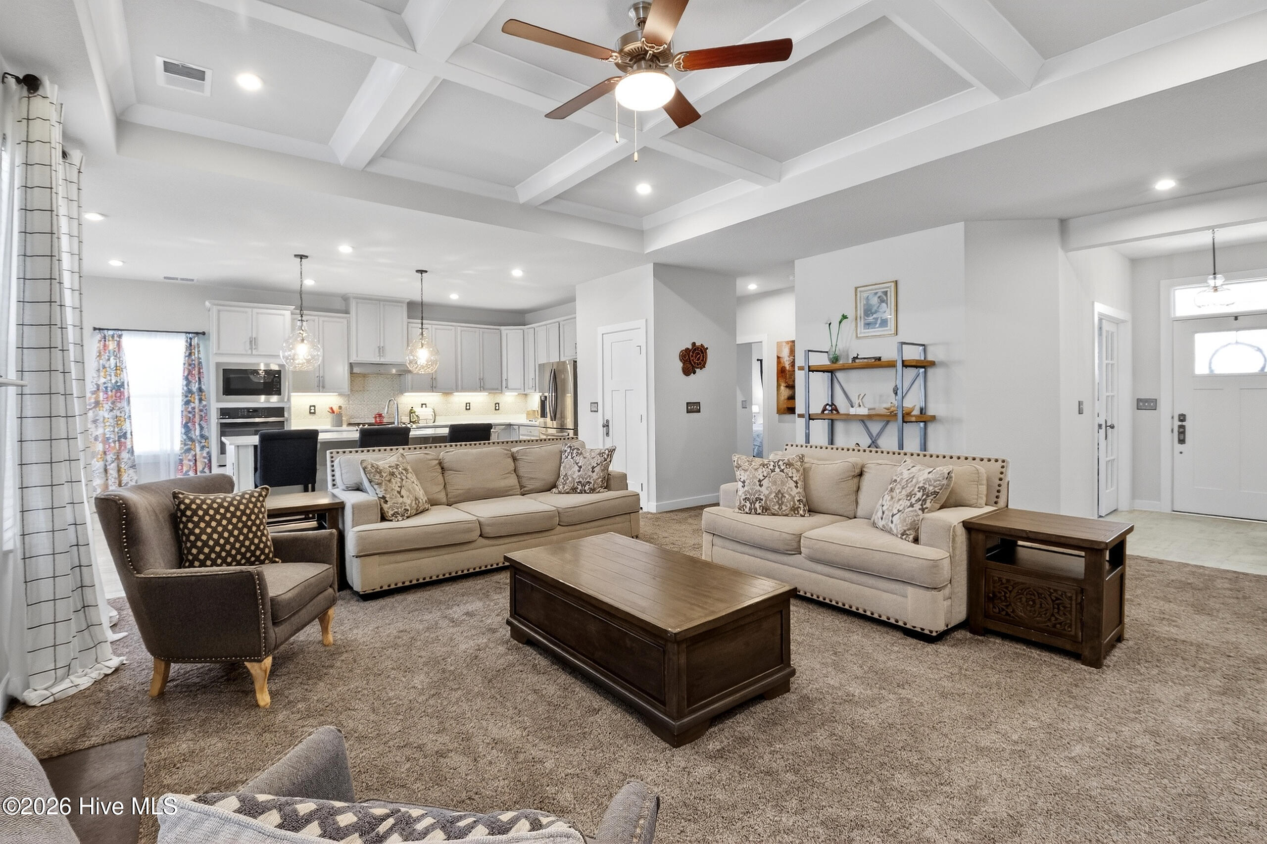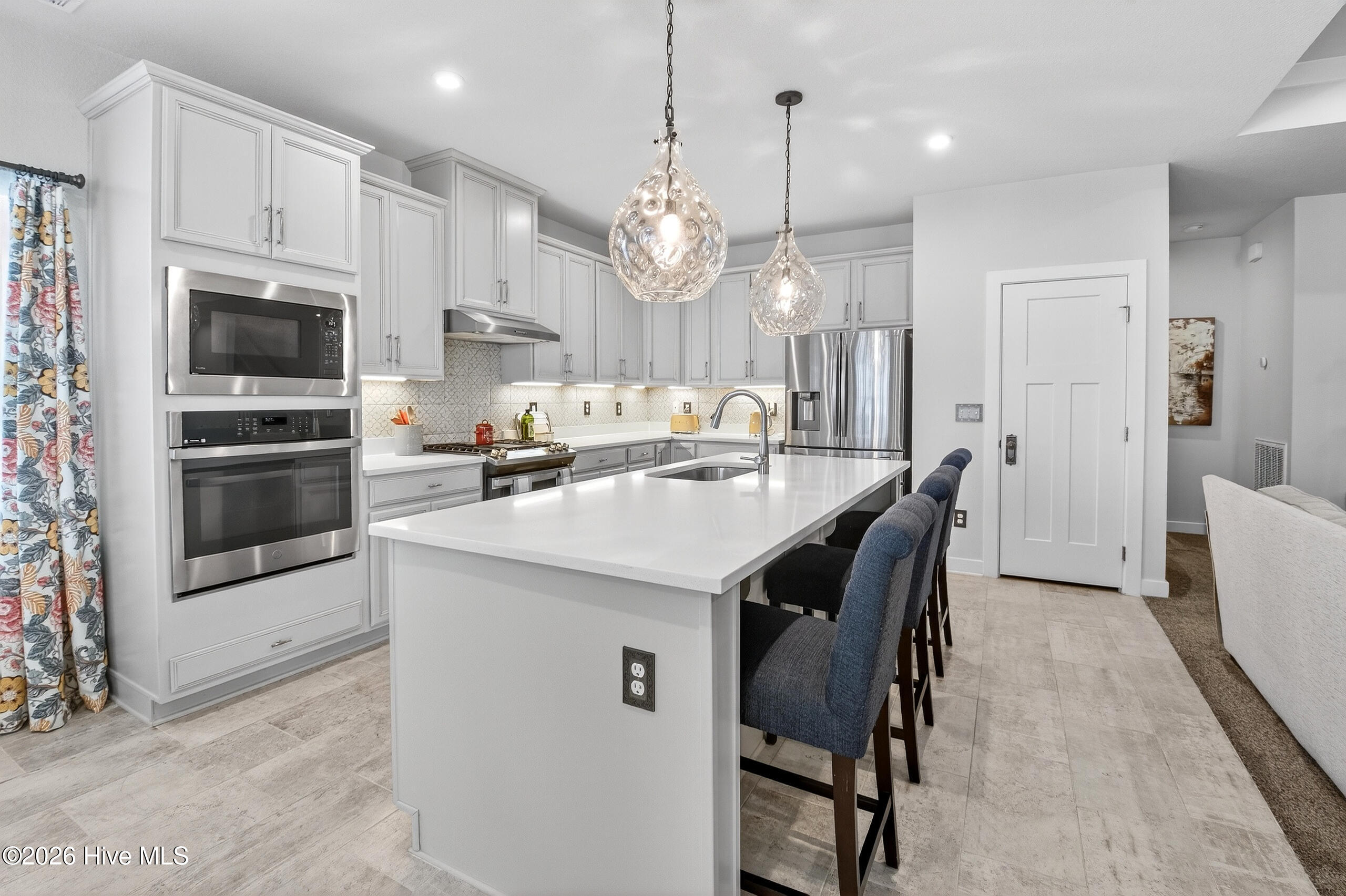 Why wait for new construction when this like-new home in Glenmoor is move-in ready? Situated on a spacious ½-acre lot just minutes from the VA/NC line, this home offers the perfect blend of convenience and room to spread out. Designed for comfort and flexibility, the main level features an expansive primary suite with two large walk-in closets, along with two additional bedrooms. The finished room over the garage provides the ideal space for a guest suite, in-law setup, or game room. A welcoming foyer opens into an impressive great room with tray ceilings and a gas fireplace, creating a bright and inviting living space. The eat-in kitchen is a standout, featuring an oversized upgraded island, quartz countertops, solid wood cabinetry, pantry, double oven, gas cooktop, and stainless appliances. Just off the kitchen, the dining area leads to a covered tiled porch overlooking the large fenced backyard--perfect for entertaining or relaxing outdoors. Thoughtfully upgraded throughout, this home includes a 30A generator hookup, expanded 6-person island, new carpet, and new ceramic tile in the kitchen and dining area. Conveniently located within walking distance to the Moyock Public Library and the new Tulls Creek Elementary School (scheduled to open August 2026), this home offers modern living in one of the area's most desirable and growing communities.