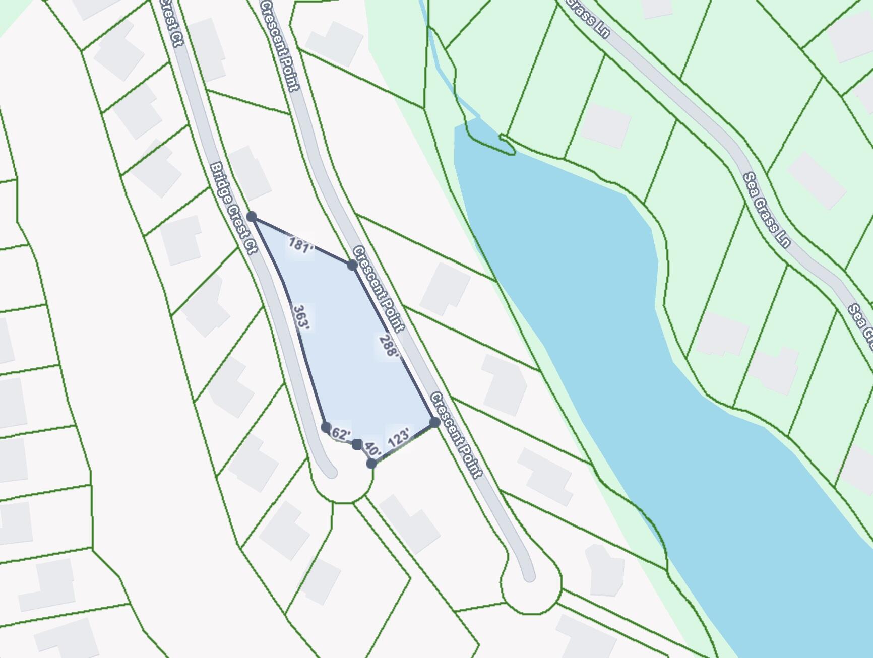 Magnificent Woodside Reserve large lot on quiet cul-de-sac. The hilltop offers beautiful views of Spaulding Lake and the surrounding community. The topography offers an excellent opportunity for home design with street-level entrance in front and a dynamic walk-out sunlight basement level. Wooded. Frontage on two cul-de-sac streets (including Crescent Point SW).