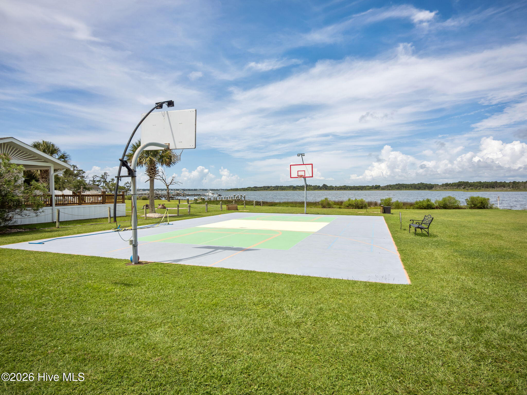 Discover the charm of the Waterfront Community of Goose Creek Landing on the Bogue Sound in Newport, NC, with this beautifully maintained 2 bedroom, 2 bath home. Residents enjoy an impressive list of HOA amenities including a fishing pier with cleaning station, private boat ramp, saltwater pool, bathhouse, picnic area, playground, horseshoe pit, and both basketball and pickleball courts, creating an environment perfect for relaxation and recreation. Water and trash service are also included in the HOA dues, adding to the ease of living. Inside, the home is designed for comfort and convenience with a well-thought-out floor plan, generous living space, and a heated and cooled sunroom that can be enjoyed year-round. Unpermitted Sunroom addition not counted in heated square footage. Step outside to your own private retreat featuring a covered outdoor kitchen ideal for entertaining, along with low-maintenance poly decking perfect for relaxing evenings. An outdoor shower adds to the coastal lifestyle, while a powered outdoor storage building provides added functionality for hobbies, storage, or workspace. Offered fully furnished, this home is truly move-in ready and well-suited as a primary residence or second home. Ideally located near the Crystal Coast, you will enjoy quick access to boating, beaches, dining, and shopping while still having a peaceful place to call home.