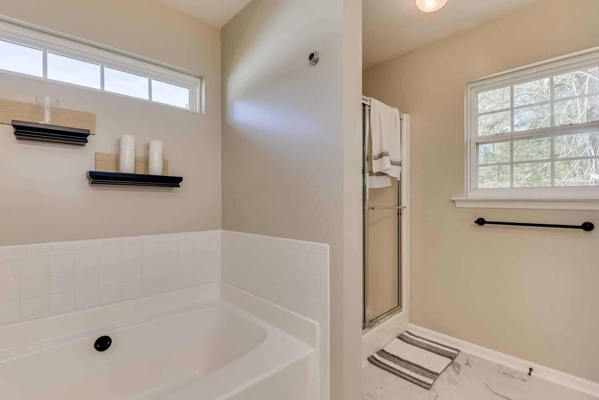 Pristine 4-Bedroom Brick Home on a Spacious, Private Lot! Welcome home to this move-in ready brick beauty offering the perfect blend of comfort, updates, and outdoor living. From the moment you walk in, you'll notice the gleaming hardwood floors and soaring cathedral ceiling in the living room with a cozy fireplace that immediately feels like home. The kitchen impresses with upgraded countertops and backsplash, every kitchen appliance is brand new and included! The Owner's Suite is a true retreat, featuring a garden tub, separate shower, and double vanity. Fresh paint, new flooring, and new ceiling fans throughout give the entire home a crisp, updated feel. Peace of mind comes built-in: brand new water heater (March 2026), new main water line from the street, roof and HVAC only 5 years old, and HVAC recently serviced with drain lines cleaned. The garage is EV-ready -- just install the plug and charge your vehicle. Storage? You'll have more than you need -- floored walk-in crawl space, spacious attic, and a side parking pad with electrical hookup for your RV or boat. Step outside to a large fenced backyard that backs up to peaceful wooded areas -- no rear neighbors, no neighbors to the left, nothing but trees and privacy. The trail system is right out your back door, with scenic walking and biking paths and a neighborhood playground just steps away. This one checks every box. Come see it before it's gone.