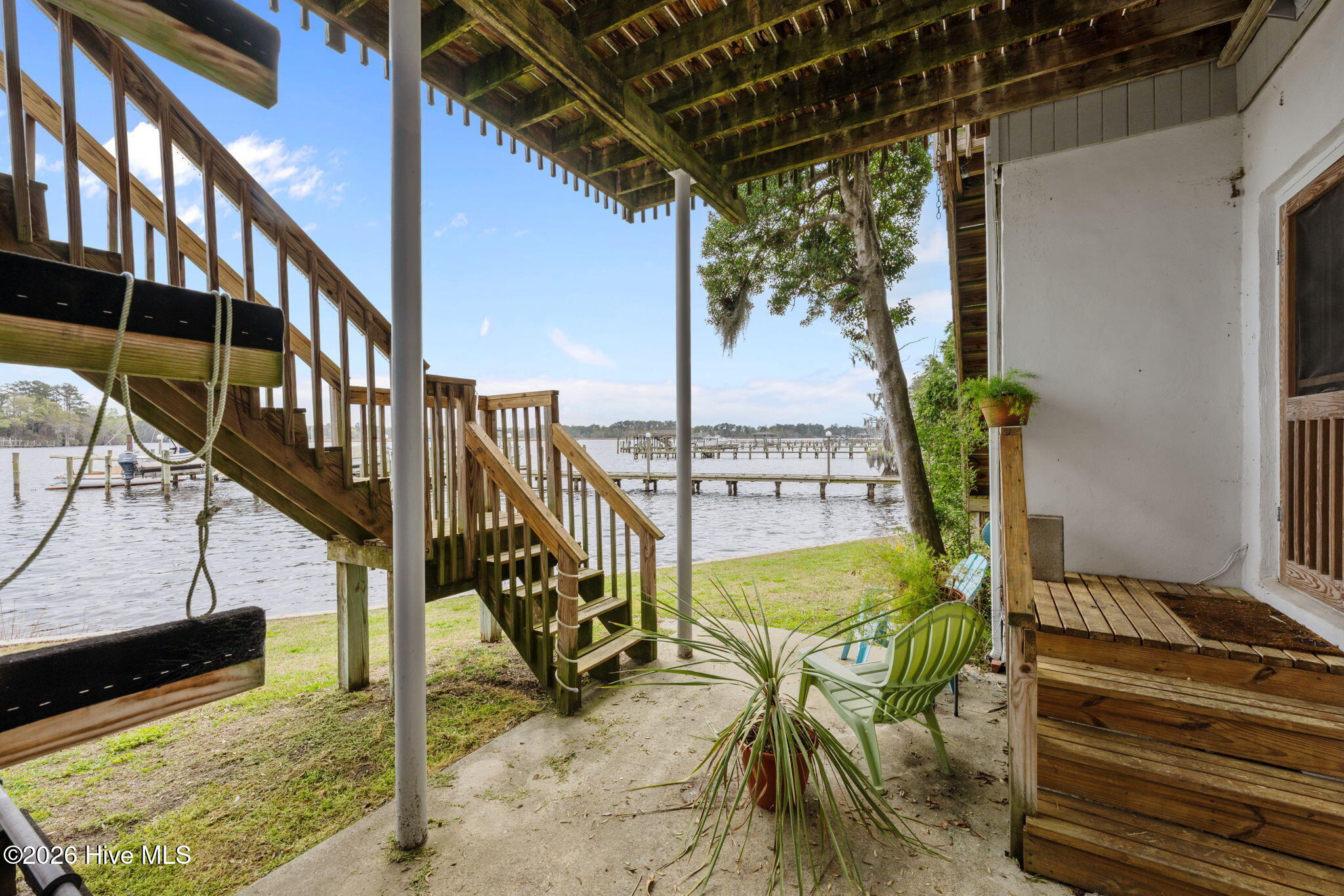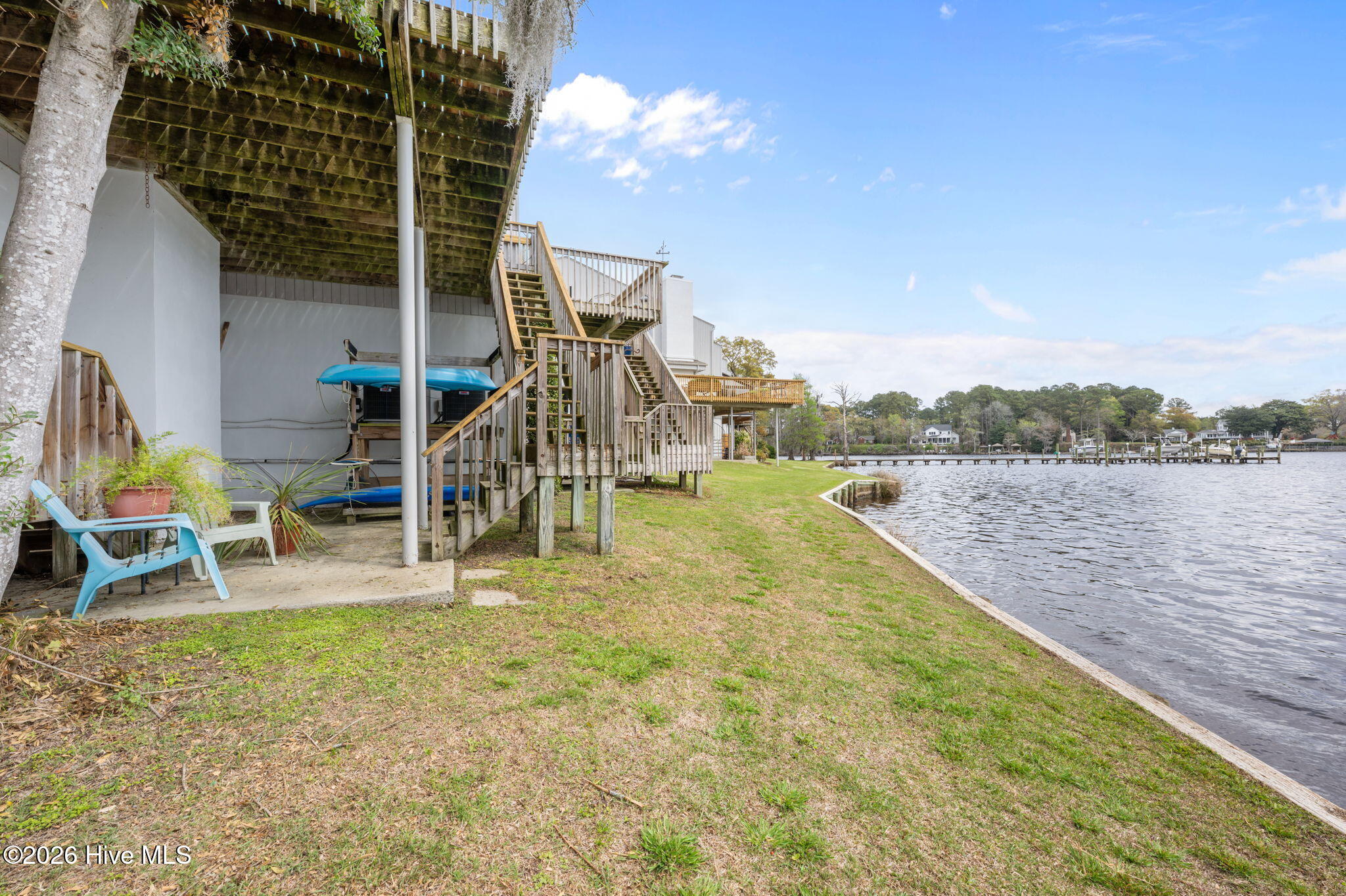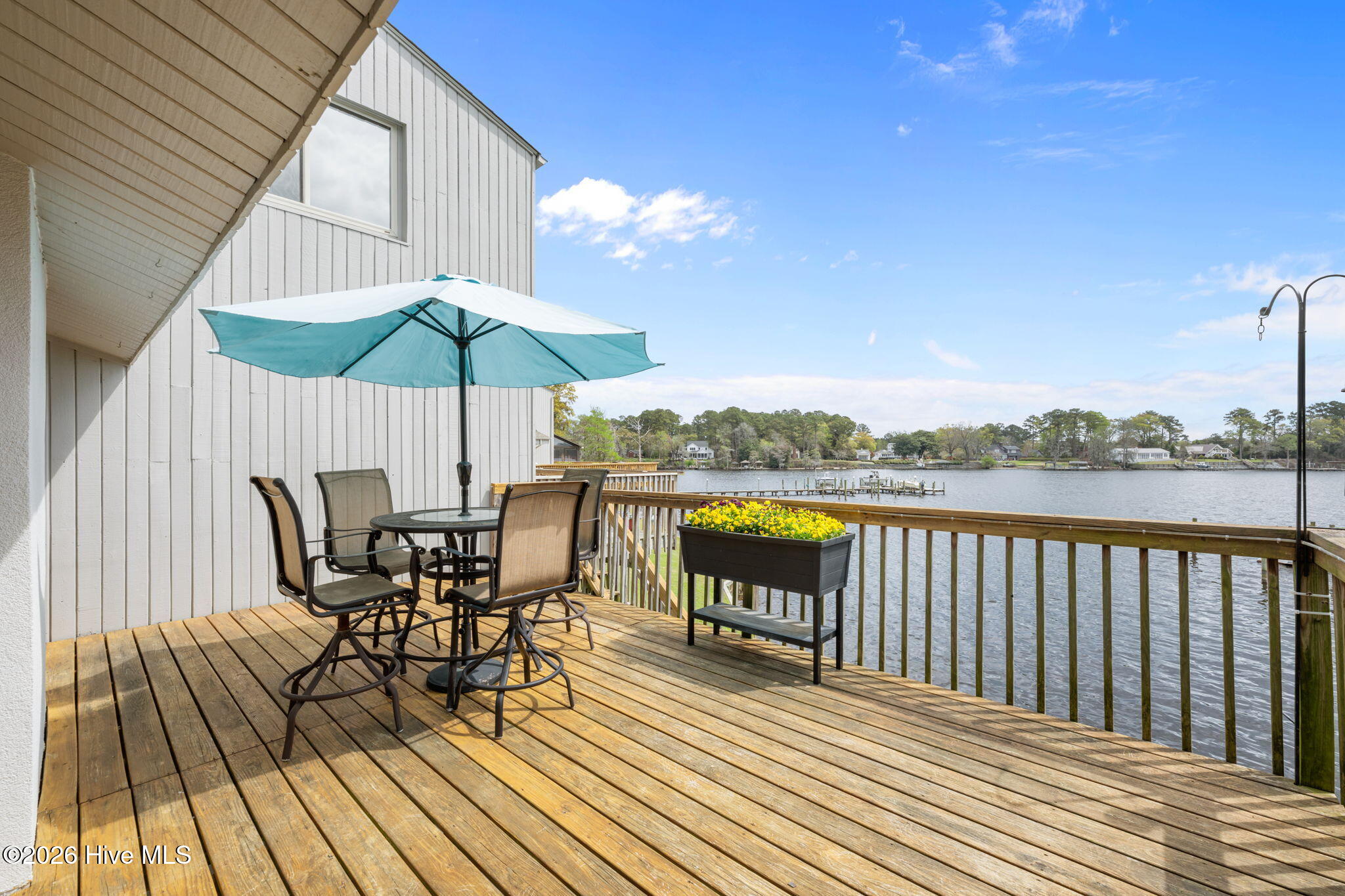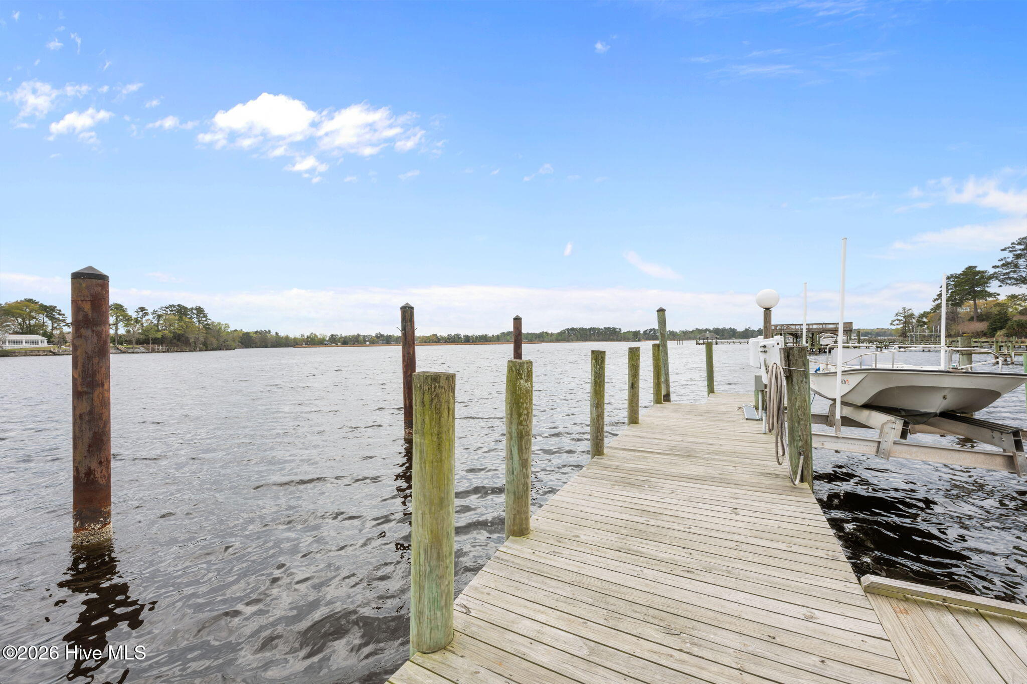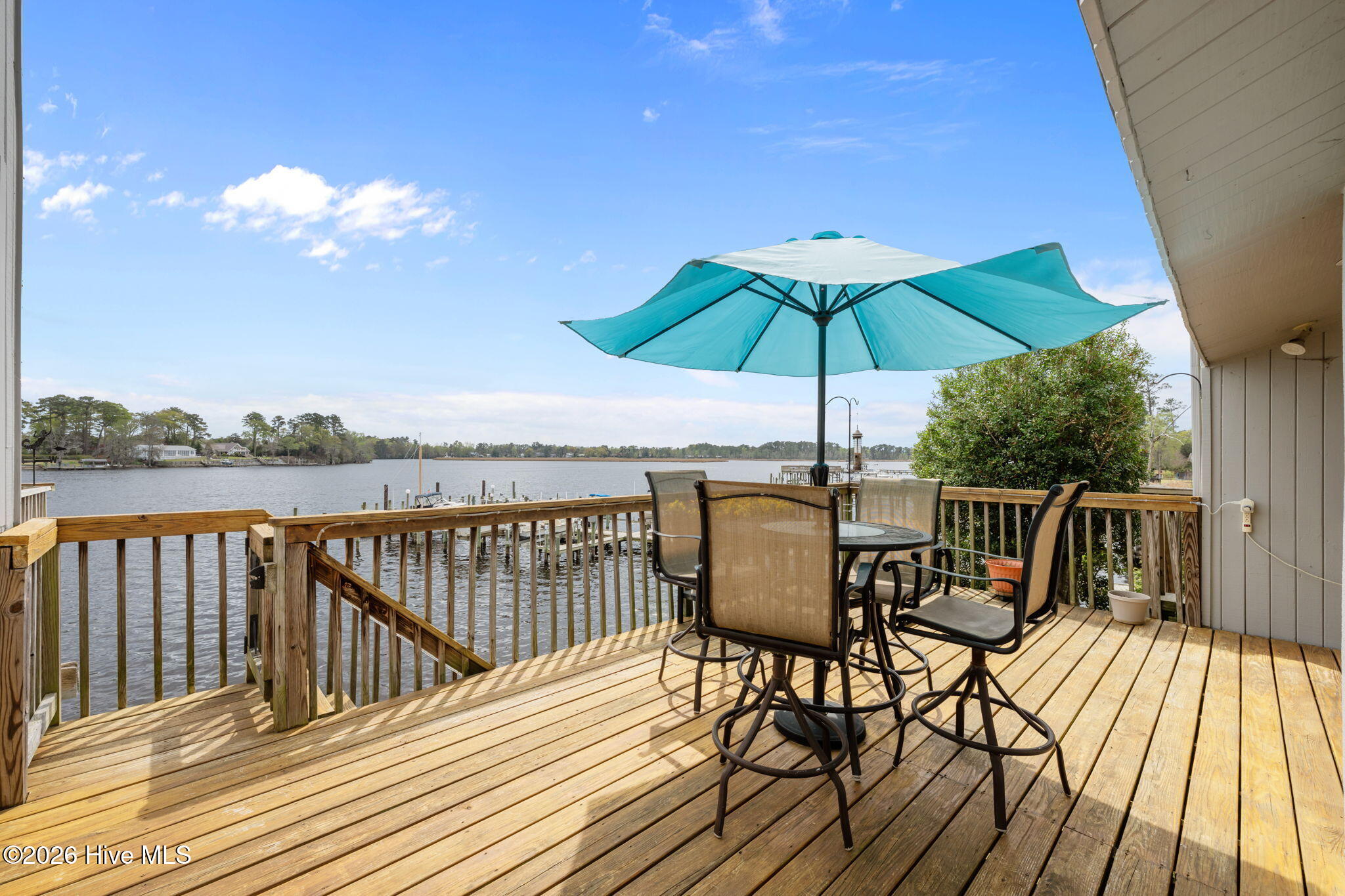 Waterfront Townhouse! Amazing Trent River views. Located in the upscale community of Olde Towne in New Bern, NC. Open floor plan with hardwood floors. Living room opens to a large deck overlooking the river. Updated kitchen with granite countertops, tile backsplash and top end appliances. Upstairs is the primary bedroom with great river views. Two additional bedrooms and bath on that floor. Guest bedroom/Den on level 2 with full bath. Oversized garage with work station. Floored attic for lots of storage. Boat dock with slip and lift! Enjoy the New Bern Waterfront lifestyle.
