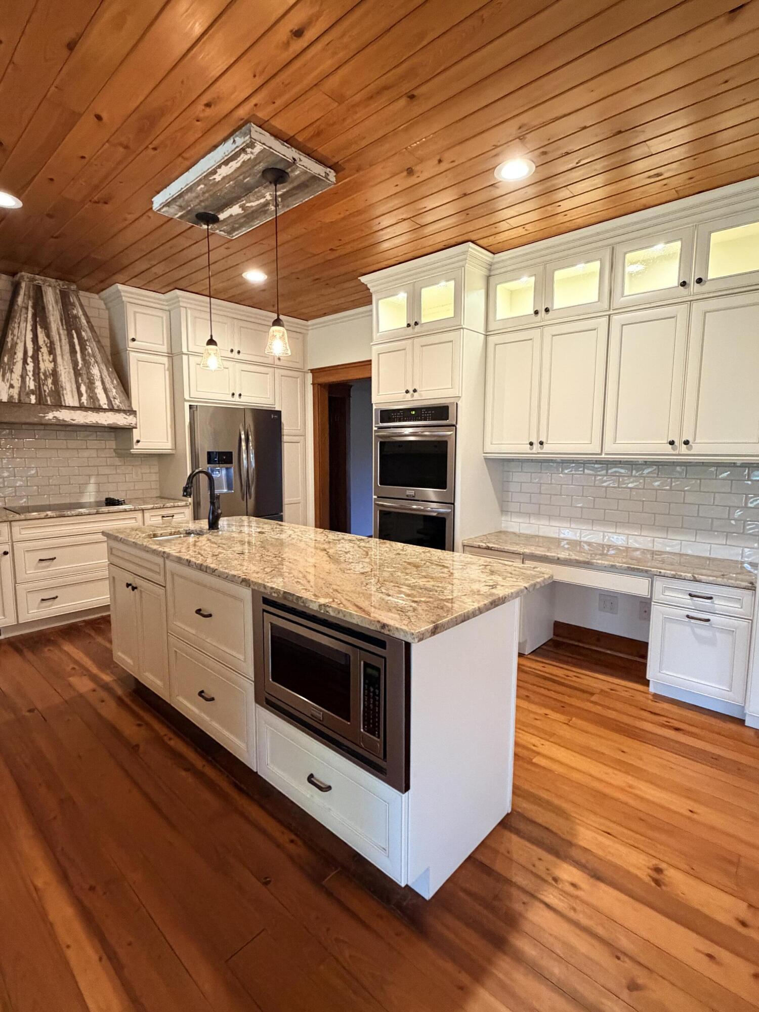 Truly a one of a kind property in Columbia County. 5.01 acres in Appling in a cul-de-sac w/a barn. 4 Bedrooms, 2.5 Baths, All brick ranch. Totally re-done chef's kitchen! Cabinets w/soft close and pull out drawers. Custom re-claimed wood vent hood, double wall ovens, granite counters, large island w/built in microwave & prep sink and ss appliances (refrigerator remains). Spectacular cypress floors throughout (except wet areas)! Front and back porches w/pine tongue & groove ceilings. Tongue and groove ceilings also in foyer, great room and kitchen. Great room with masonry fireplace (w/Vermont insert). Very large barn (20x30 w/wide covered porches front and back) is insulated and has a full kitchen and 1/2 bath. There is also a phone/cable, pot belly stove and 2-10x10 sliding doors in barn. If you are looking for peace and quiet this is the property for you! Will sell fast...Easy to show!