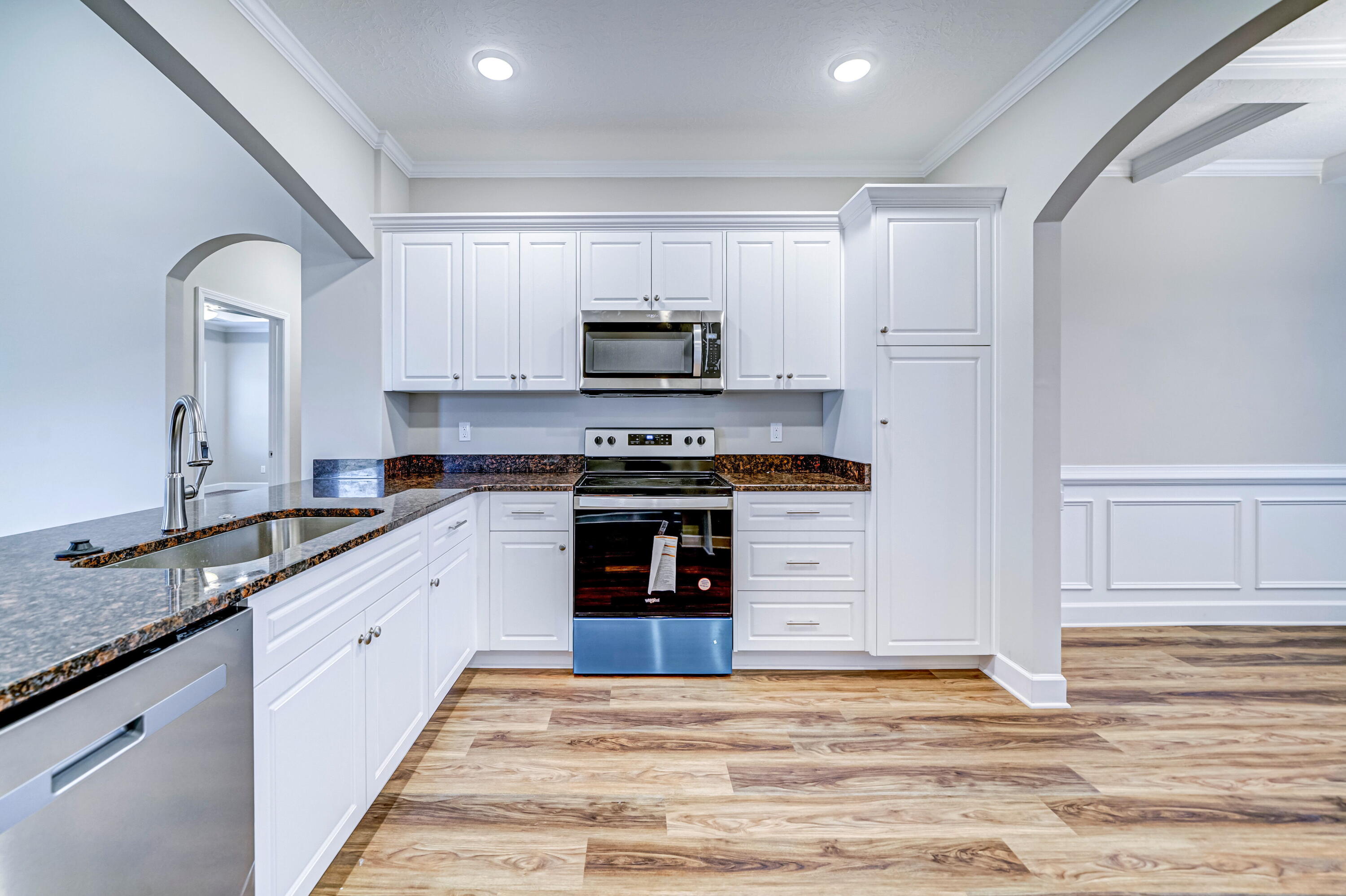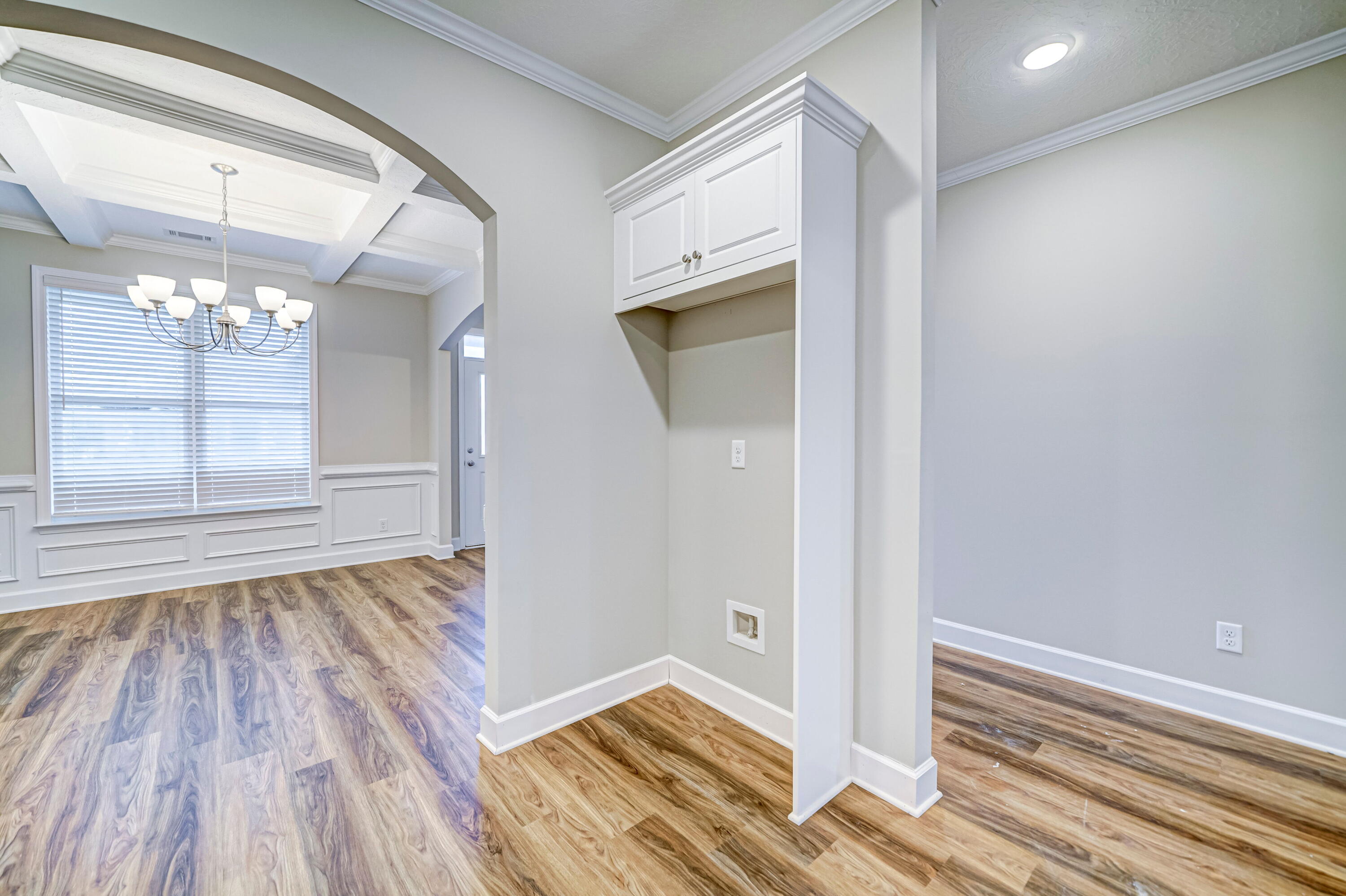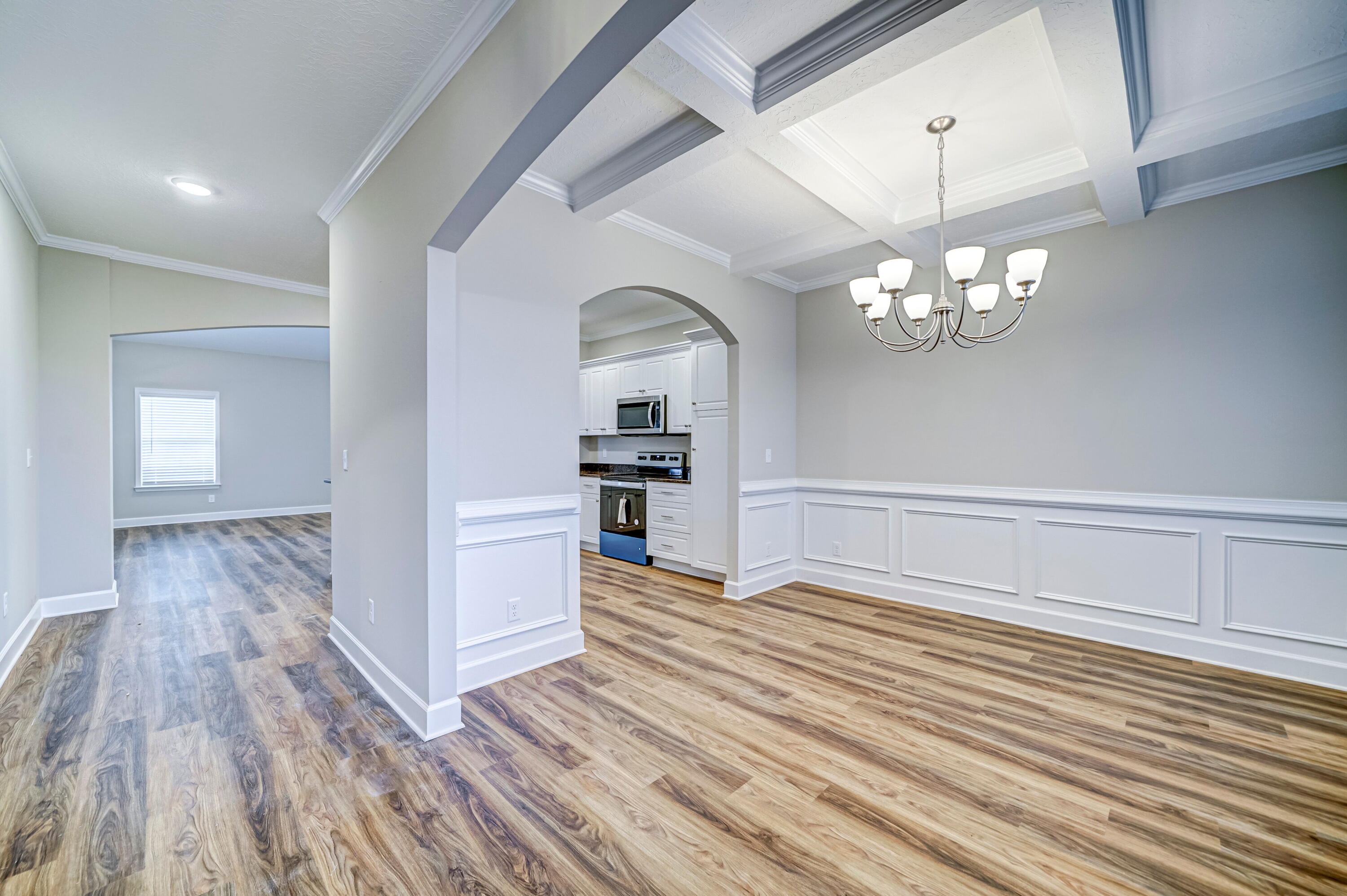 #CarbonConstruction ''The Adele'' stands out as the company's most sought-after 3-bedroom, 2-bathroom floor plan. Designed with privacy and comfort in mind, the master suite is thoughtfully separated from the other bedrooms. The kitchen features a striking bold arch, complemented by stainless steel appliances, including a microwave, dishwasher, range, and garbage disposal. Homeowners on the move will appreciate the spacious, flat-top breakfast bar. The master bedroom is a serene retreat with a tray ceiling and dual walk-in closets, while the master bathroom inspires relaxation with its garden tub, walk-in shower, private toilet room, and elegant design. The spare bedrooms are generously sized, accompanied by a guest bathroom conveniently located in the hall. An inviting dining room boasts a coffered ceiling and chandelier, perfect for hosting dinners. The large, covered back porch adds a touch of charm and provides ample space for entertaining.